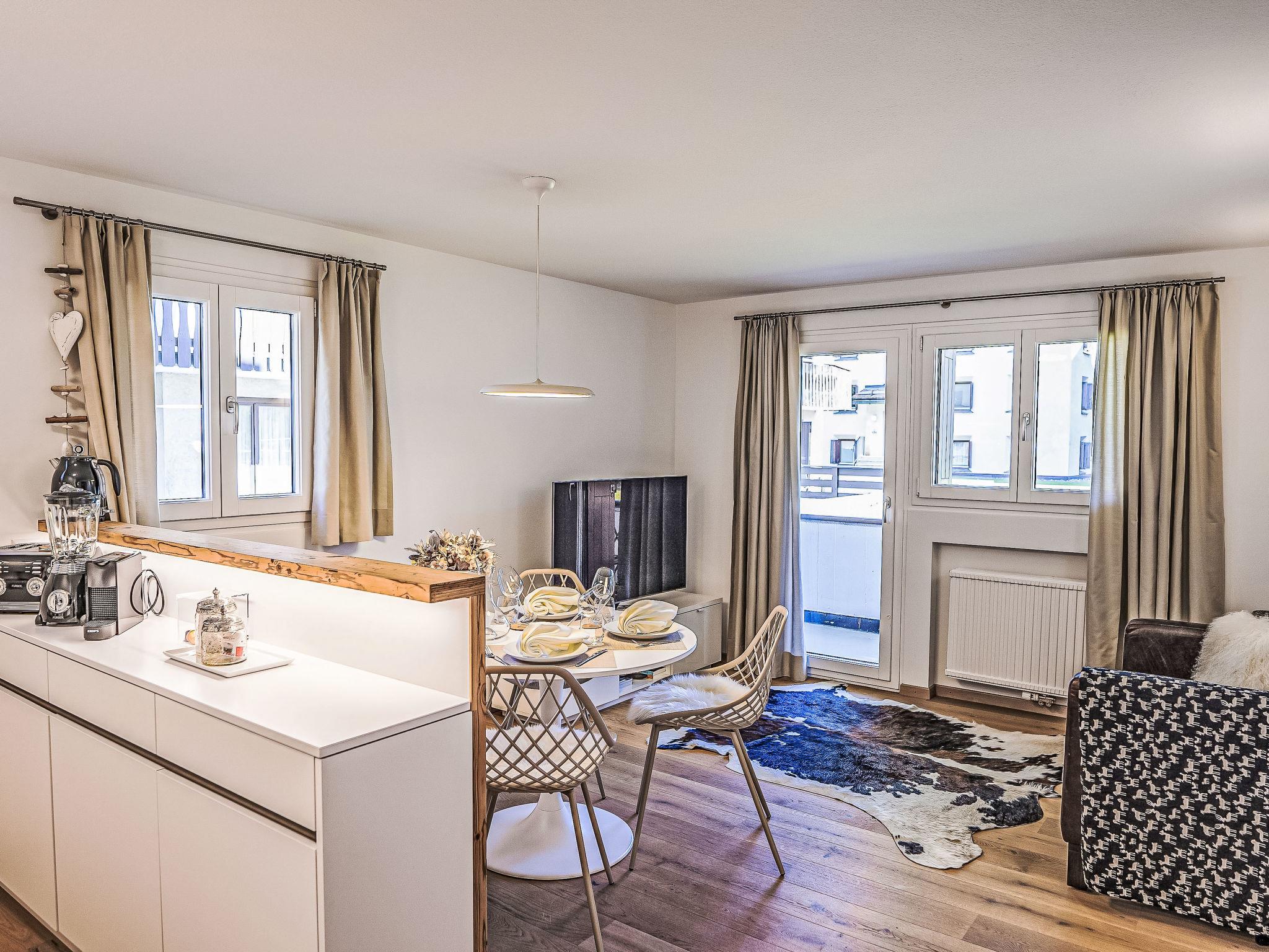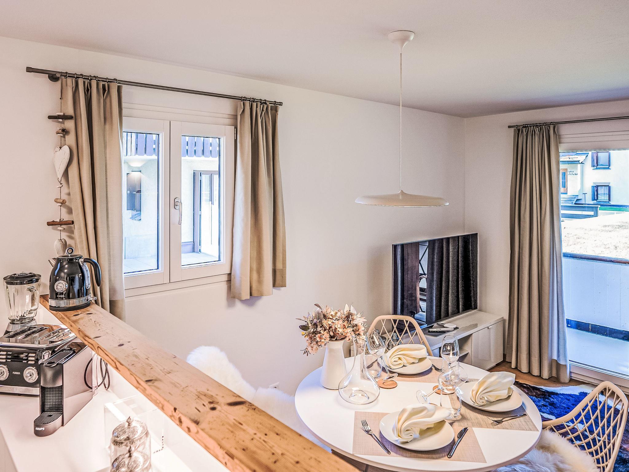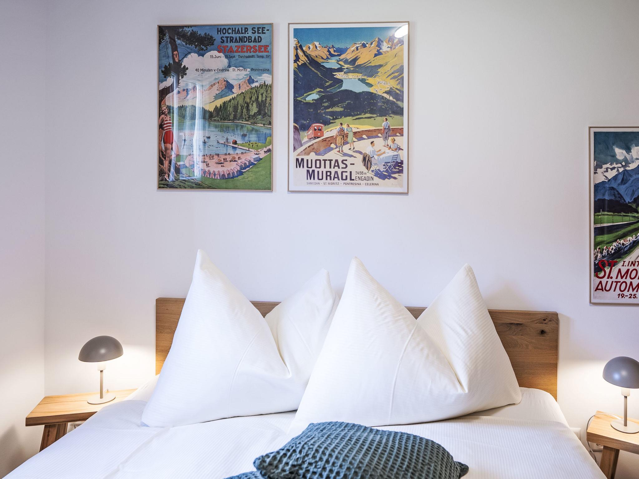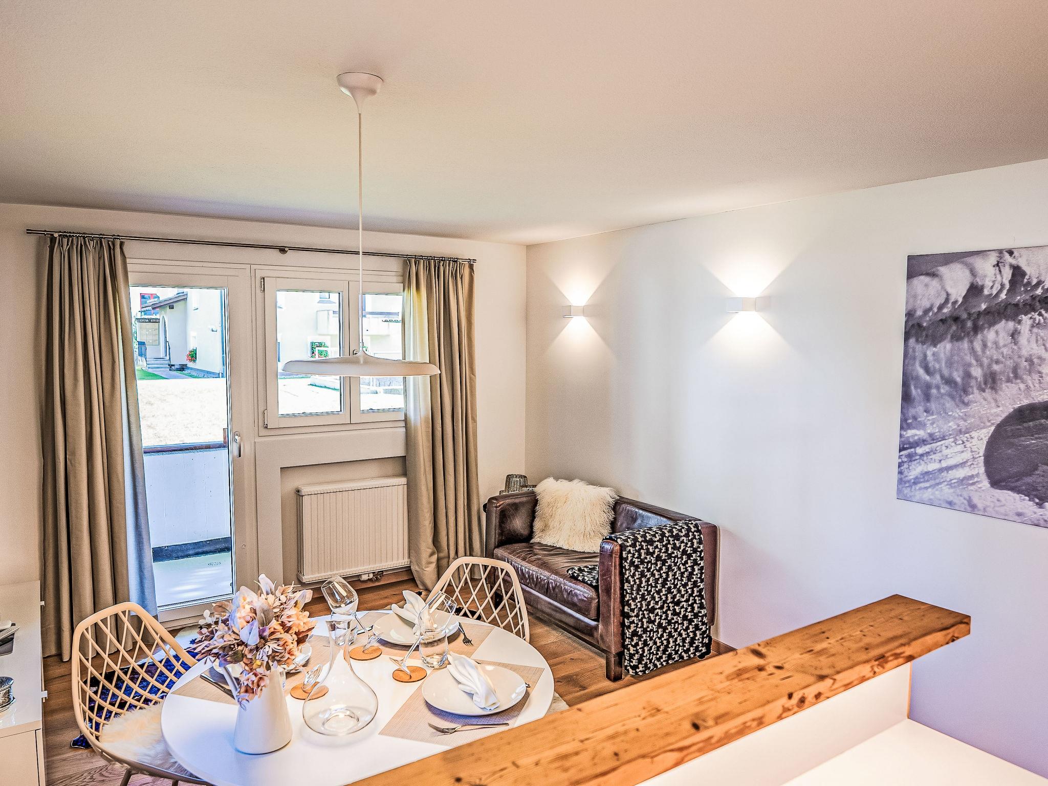 "Chesa Palüdin 1 - Celerina", 3-room apartment 55 m2, on the ground floor. Fully renovated in 2023, beautiful and modern furnishings: open living/dining room with dining table and TV (flat screen). Exit to the balcony. 1 small room with 1 bed (120 cm, length 200 cm). 1 double bedroom with 1 double bed (1 x 160 cm, length 200 cm). Open kitchen (oven, dishwasher, 4 induction hot plates, toaster, kettle, microwave, electric coffee machine, Capsules for coffee machine (Nespresso) extra, steamer, raclette grill, fondue Set (chinoise, cheese)). Shower/WC. Heating. Parquet floors. Small balcony. Balcony furniture. Very beautiful view of the mountains and the countryside. Facilities: washing machine, dryer, iron, hair dryer. Internet (WiFi, free). Garage space n 1 on the property (1 car), height 195 cm, width 225 cm. Please note: non-smokers only, non-smoking house. Maximum 1 pet/ dog allowed. No lift.