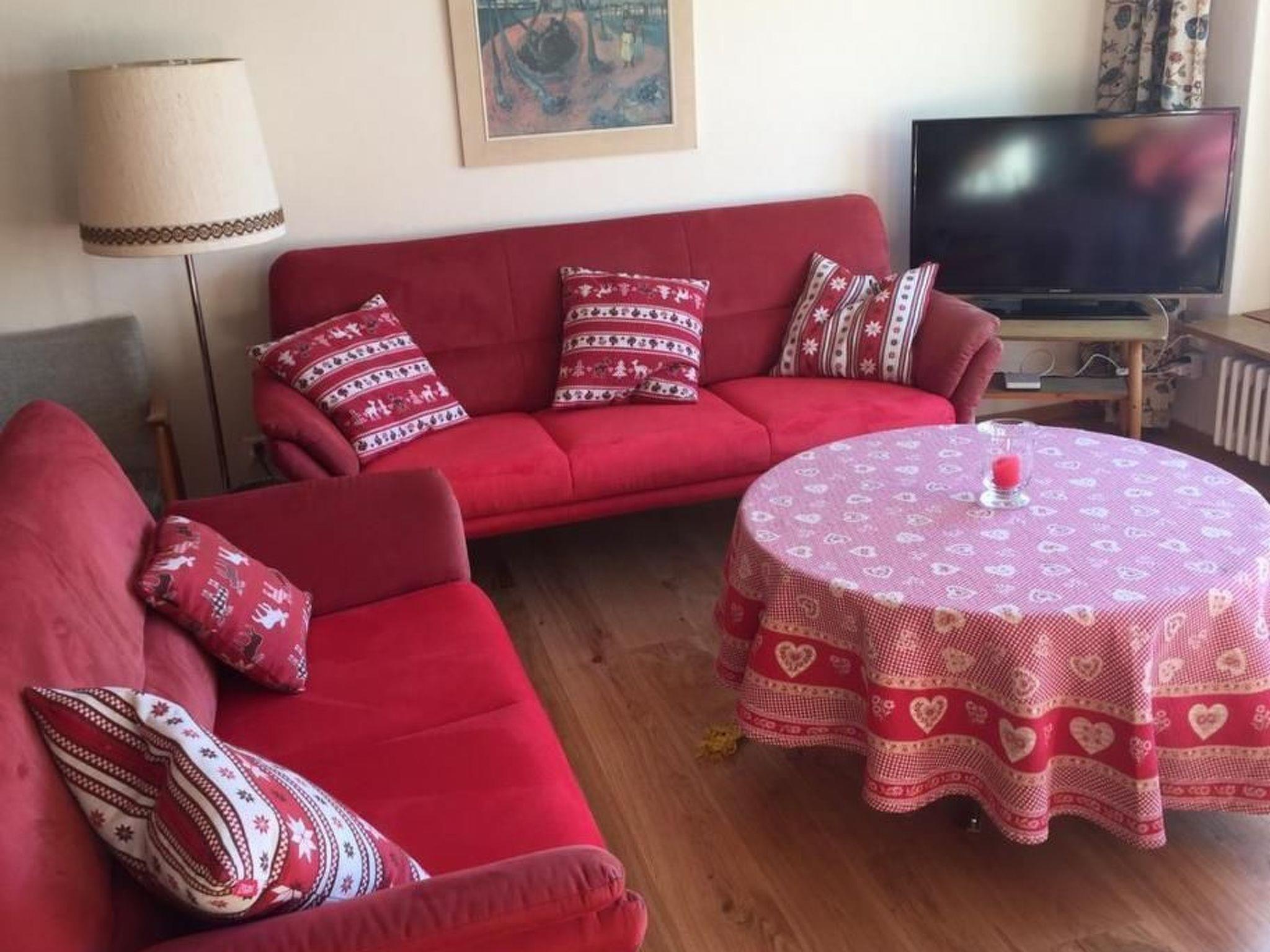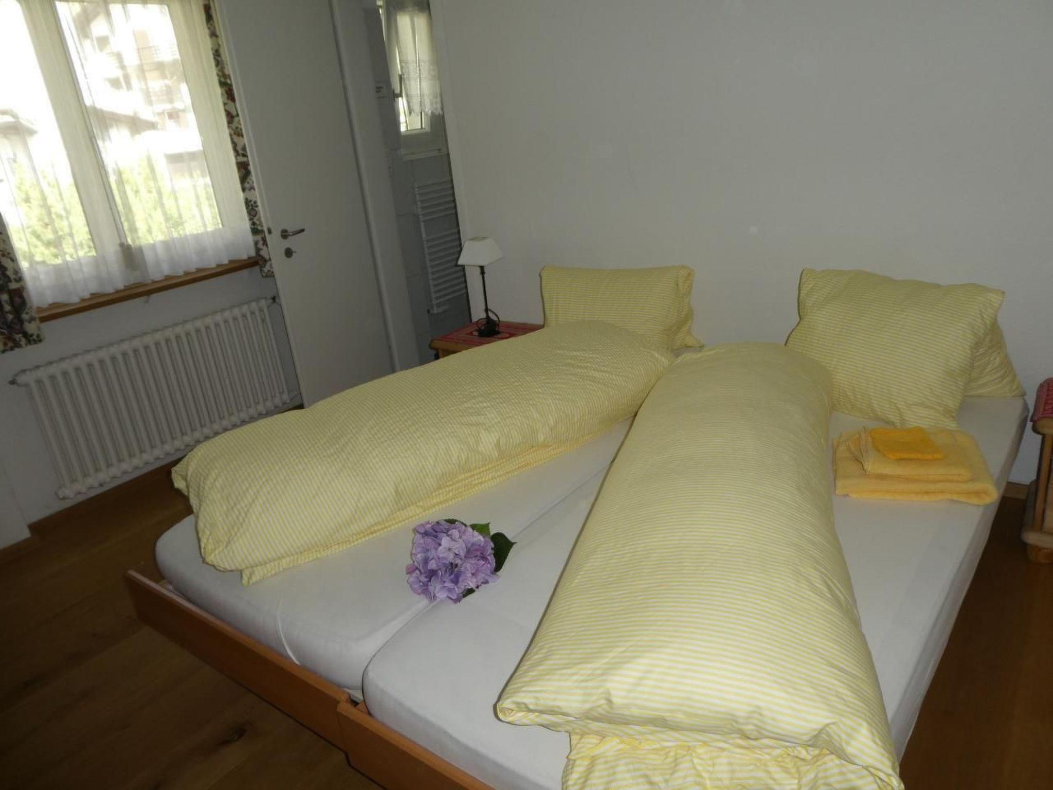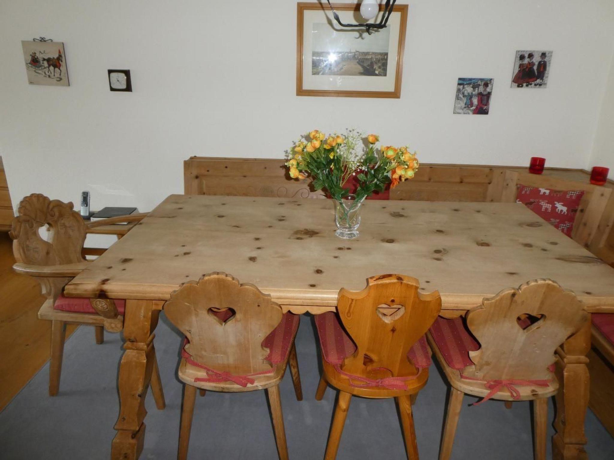 4-room apartment on the 1st floor 3 x 2 beds in 3 bedrooms. In 2 rooms 2 beds put together as a double bed, in one room 2 single beds. All Nordic equipment. A travel cot can also be provided on request. The living room has a balcony with beautiful views, over the village of Celerina. Likewise, in the apartment it has telephone Wi-Fi, satellite TV and radio. The seating-dining area invites you to a cozy get-together.It has a bathroom with toilet, 2 washbasins and a bathtub, a small bathroom with toilet and washbasin, and a bathroom with shower and washbasin. The apartment has a wooden floor as well as laminate flooring. In the entrance area it has a stone floor. The kitchen is equipped with steam extractor and dishwasher, Nespresso coffee machine and kettle are available.