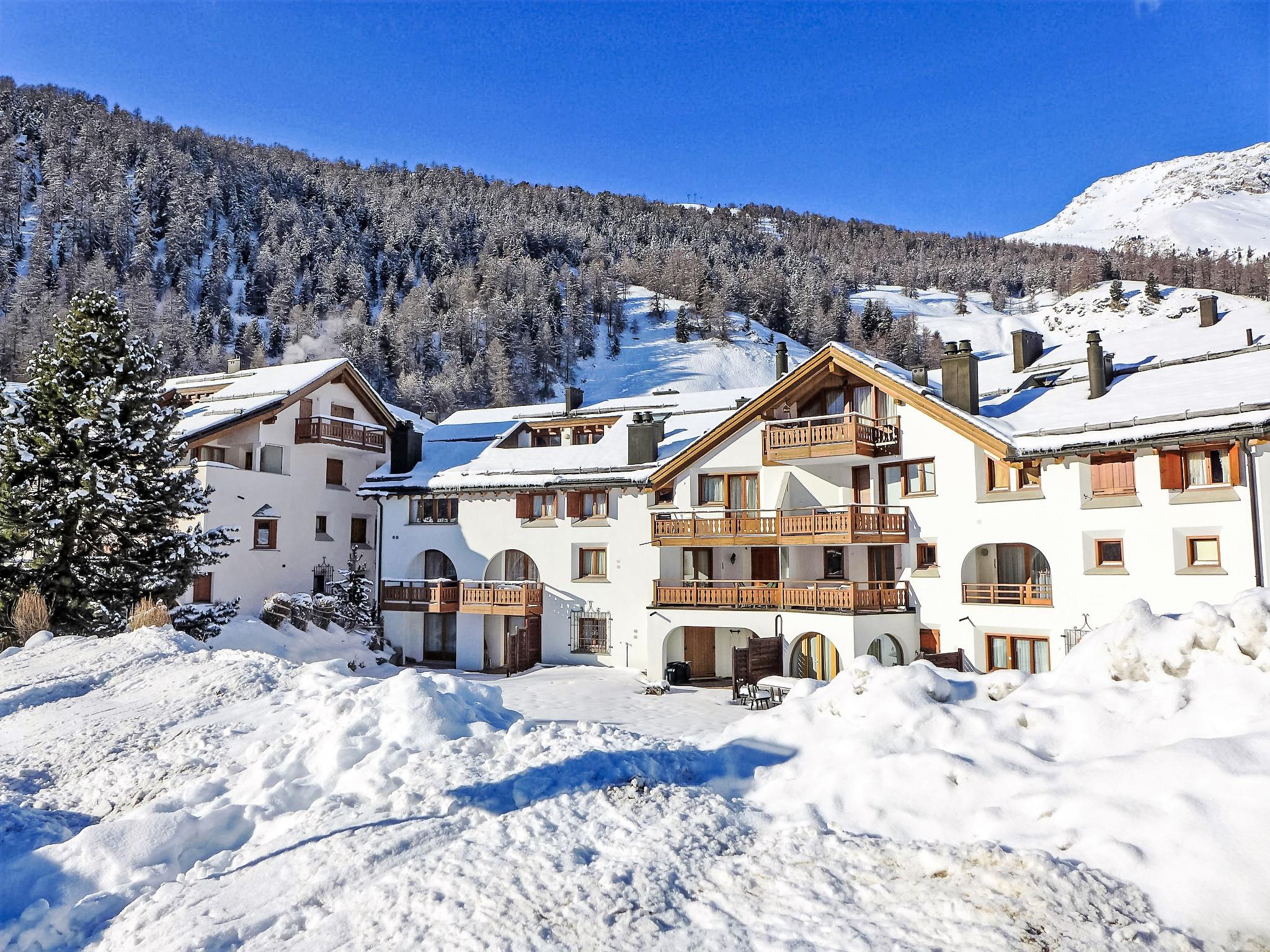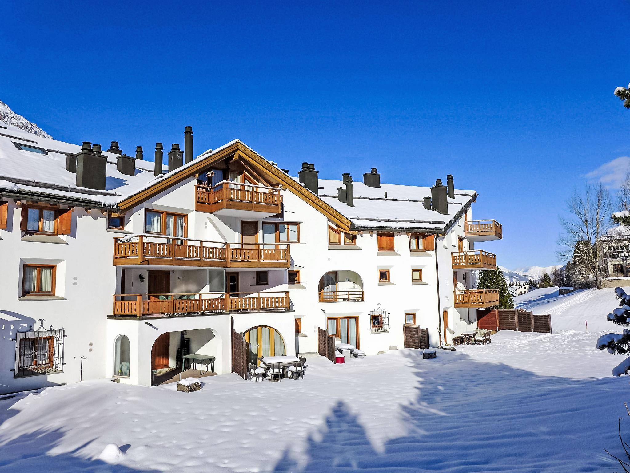 Celerina 4 km from St. Moritz: Beautiful apartment house "Chesa Fuolla Verda", 3 storeys. On the outskirts, 3.2 km from the lake, 1 km from the skiing area. In the house: lift, storage room for skis, central heating system, washing machine, tumble dryer (for shared use, extra). Communal covered parking space n 13/A8 at the house. Shop 500 m, supermarket, restaurant 200 m, bakery 800 m, café 800 m, bicycle rental 550 m, bus stop "Celerina, Cresta Kulm" 130 m, railway station "Celerina" 1 km, indoor swimming pool 5.2 km, lake St. Moritzer See 3.2 km. Golf course (18 hole) 3.8 km, surf school 9 km, tennis 800 m, indoor tennis centre 5.5 km, minigolf 5 km, riding stable 5.7 km, walking paths from the house 300 m, cycle lane 1 km, cable car 1 km, ski lift 1 km, slopes 1 km, ski rental 500 m, ski bus stop 130 m, ski school 1 km, children's ski school 1 km, sled run 2.9 km, cross country ski track 1.8 km, ice rink 750 m, children's playground 900 m. Nearby attractions: Olympia Bob Run mit Bobmuseum 1.7 km, Kirche San Gian 1.8 km, Segantini Museum in St. Moritz 3.1 km, Museum Alpin in Pontresina 6.2 km, Bernina Express UNESCO Welterbe. Well-known ski regions can easily be reached: Corviglia Piz Nair 1 km, Corvatsch - Furtschellas 11 km, Diavolezza - Lagalb 17 km. Well-known lakes can easily be reached: St. Moritzer See 3.2 km, Silvaplaner See 8.7 km, Silser See 12.5 km. Hiking paths: Stazerwald & Stazersee, Corviglia Piz Nair, Muottas Muragl. Please note: ski bus (free of charge). Free ski bus service to the ski region Parkplatz Talstation Marguns (Corviglia).