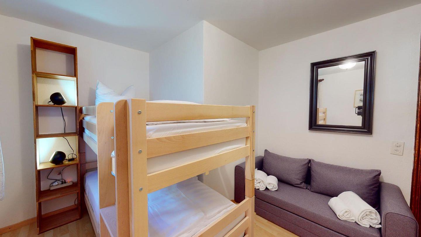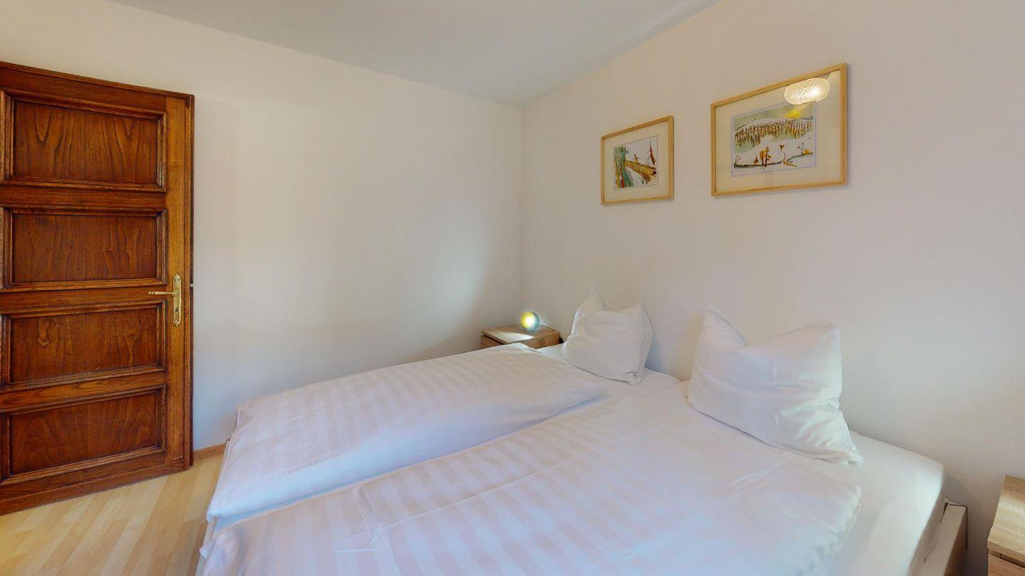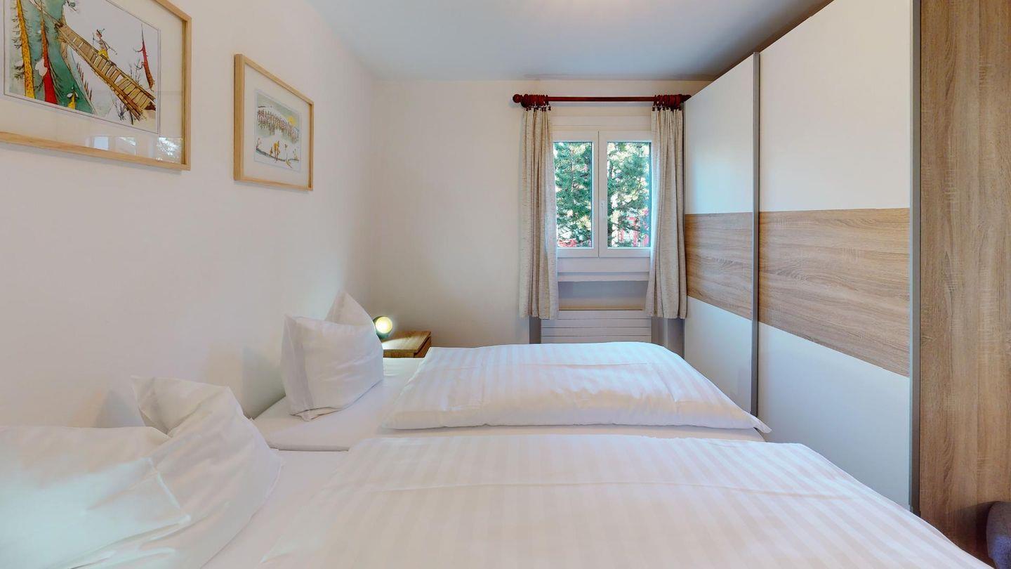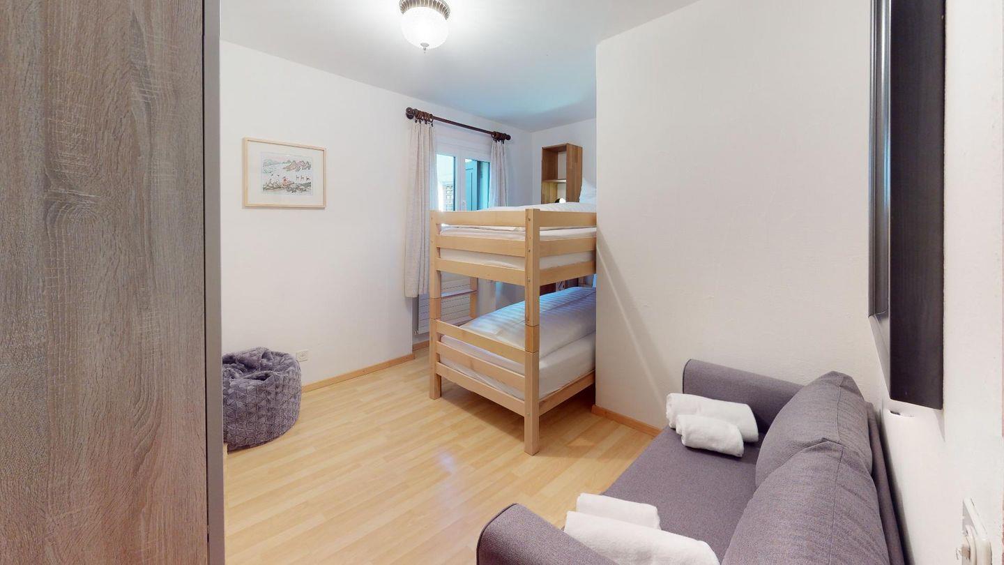 Gemütliche, zweckmässiges 3-Zimmer-Appartement im Parterre. Wohn- /Esszimmer mit Terrasse. Offene Küche. 1 Doppelschlafzimmer mit Grandlit. 1 Zimmer mit Kajüttenbetten. Bad/Dusche. Garagenplatz.