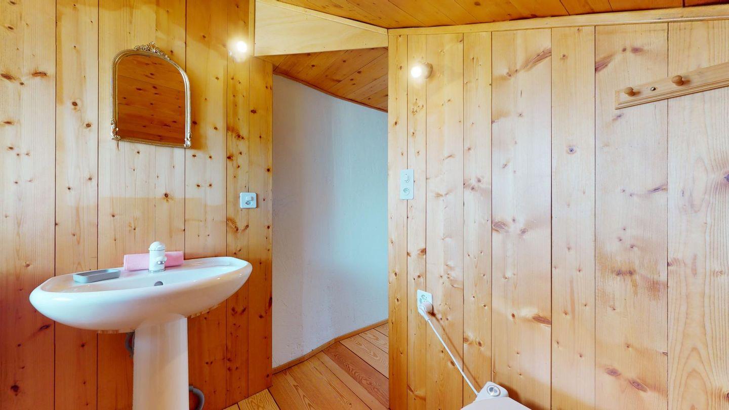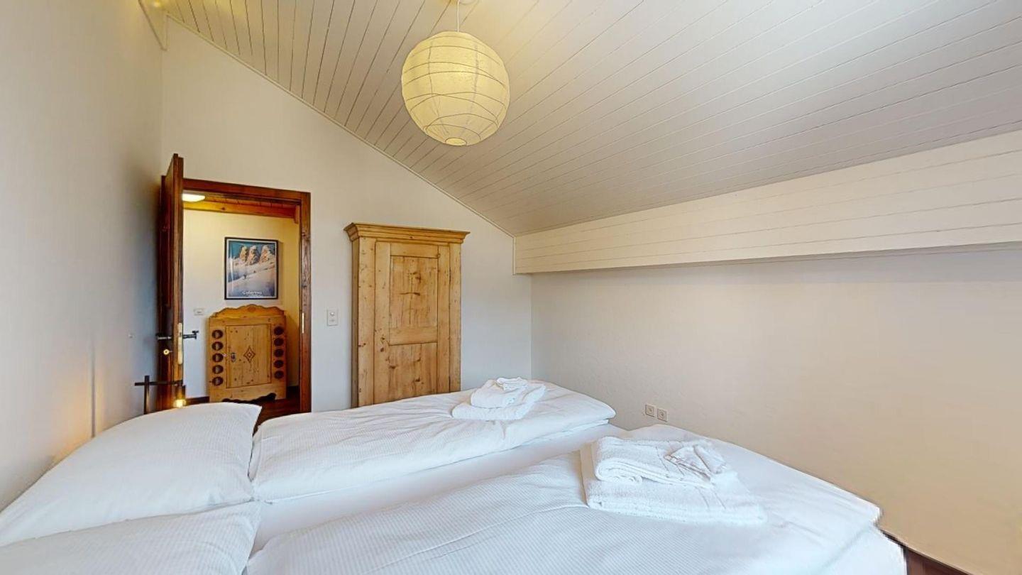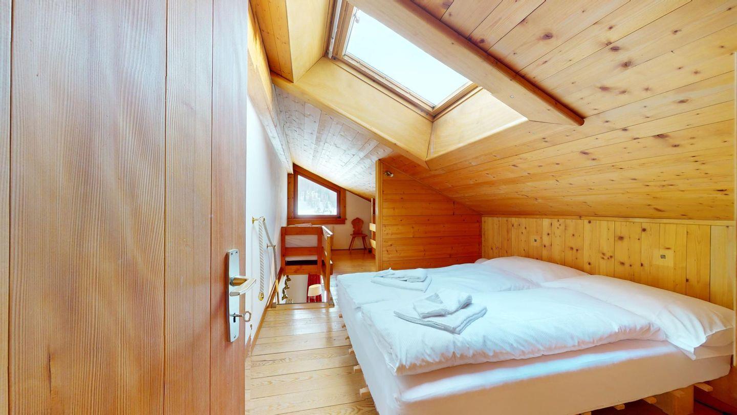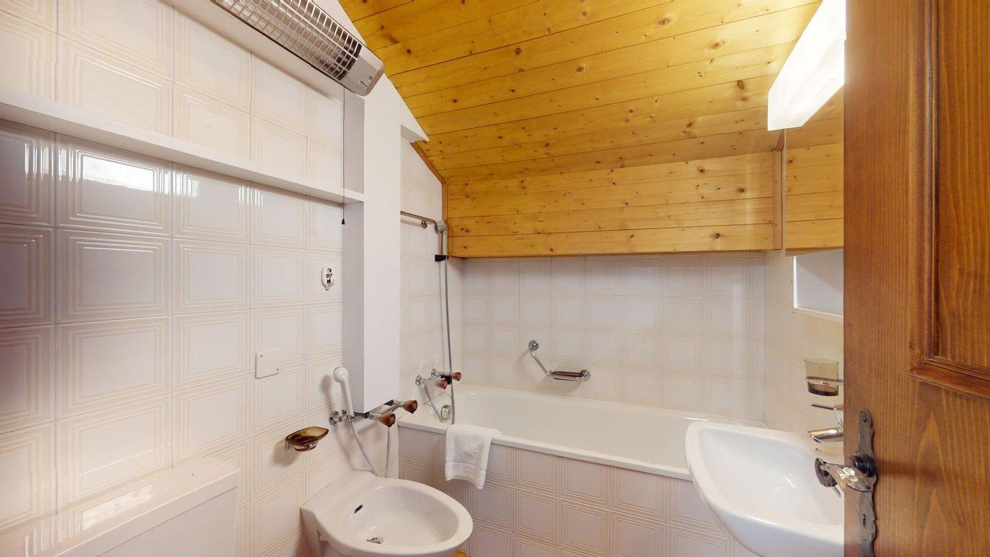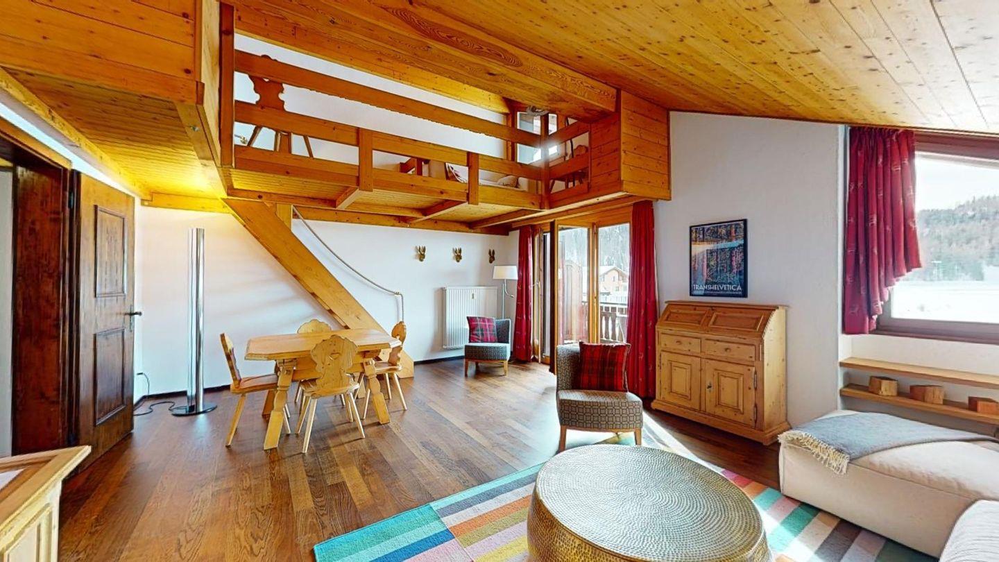 2½ -Zimmerwohnung im 3. Stock. Eingang mit Garderobenständer und Fenster. Grosses Wohn-/ Esszimmer mit Südbalkon, grossem Sofa und TV. Separate Küche mit Backofen, Geschirrspülmaschine, Chicco d'Oro Kaffeemaschine, Toaster, Mikrowelle und Kühlschrank. Ein Schlafzimmer mit Boxspringbett (180x200). Bad mit Badewanne/Bidet/Lavabo/WC. Vom Wohnzimmer führt eine Treppe zur offenen Galerie, wo sich ein Doppelbett (180x200), ein kleineres Sofa sowie ein Bad mit Badewanne/WC/Lavabo/Waschmaschine befinden. Garagenplatz. Gemeinschaftliche Waschküche vorhanden. Haustiere sind erlaubt. Nichtraucherwohnung.