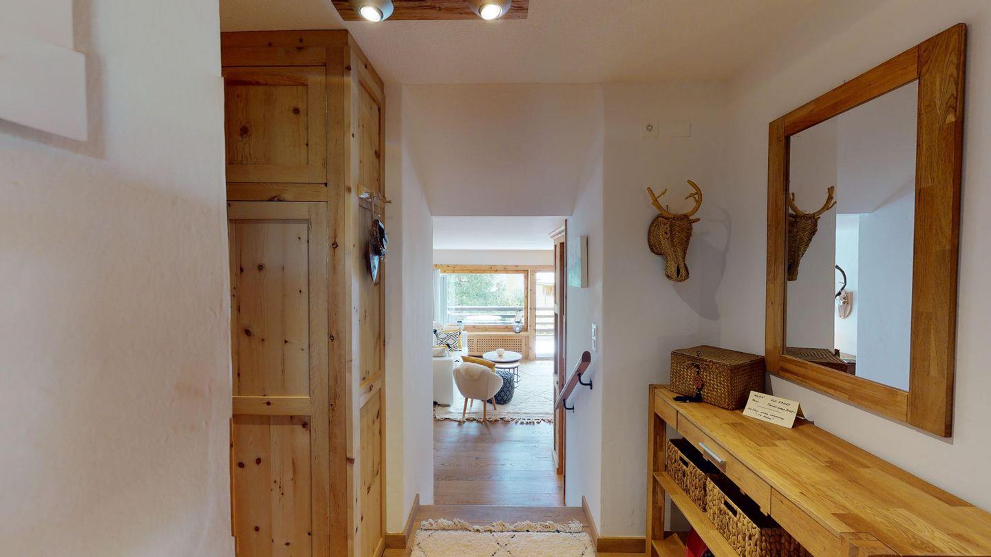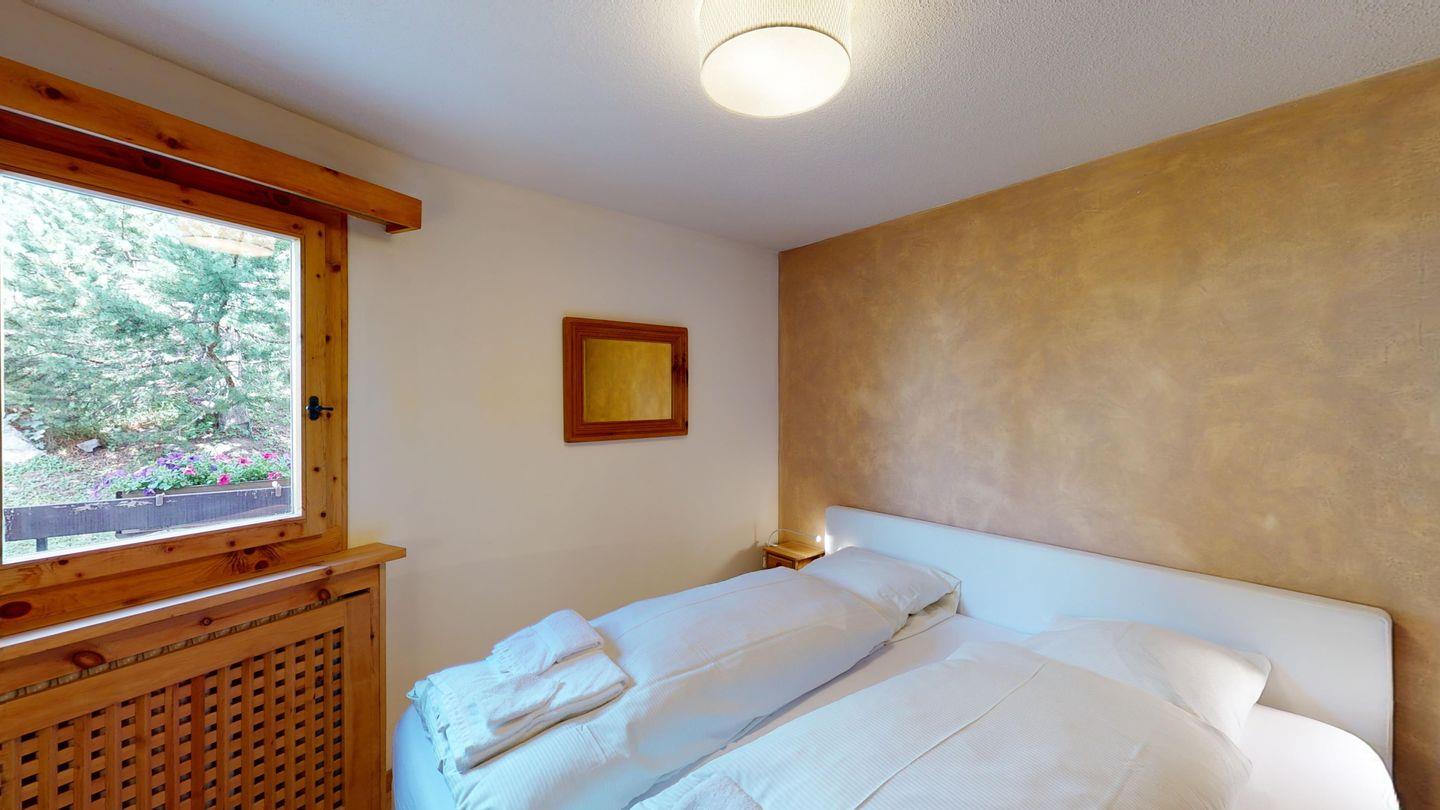 2.5-Zimmerwohnung mit Doppelbett, Bad mit Wanne, halboffene Küche, Wohnzimmer mit Esstisch und Sofa. Süd-Balkon mit Bergblick, abschliessbares Kellerabteil, keine Waschküche. Bushaltestelle und Dorfzentrum Celerina in der Nähe.