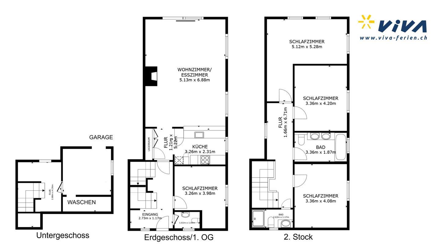 In diesem seltenen Objekt in Celerina, wo Mietmöglichkeiten in Häusern rar sind, erwartet Sie die perfekte Kulisse für unabhängige und erholsame Familienferien. Sie fahren mit dem Auto direkt ins Untergeschoss zu Ihrer Garageneinfahrt (250cm breit x 210cm hoch | Achtung: Gemeinschaftsgarage) . Von dort erreichen Sie einen grossen Disponibel Raum mit Garderobe, Schuhablagen und Waschküche. Eine Treppe führt ins Erdgeschoss, wo der Haupteingangsbereich mit zusätzlicher Garderobe und Gäste-WC aufwartet. 1 Doppelschlafzimmer. Grosses Wohn- /Esszimmer mit Kamin. Schöner Garten mit Grill, der im Sommer zum Verweilen einlädt. Abgetrennt mit Durchreiche befindet sich die gut eingerichtete Küche. 1. Obergeschoss: 3 Doppelschlafzimmer mit grossem Bad/DU/WC sowie 1 separate DU/WC.