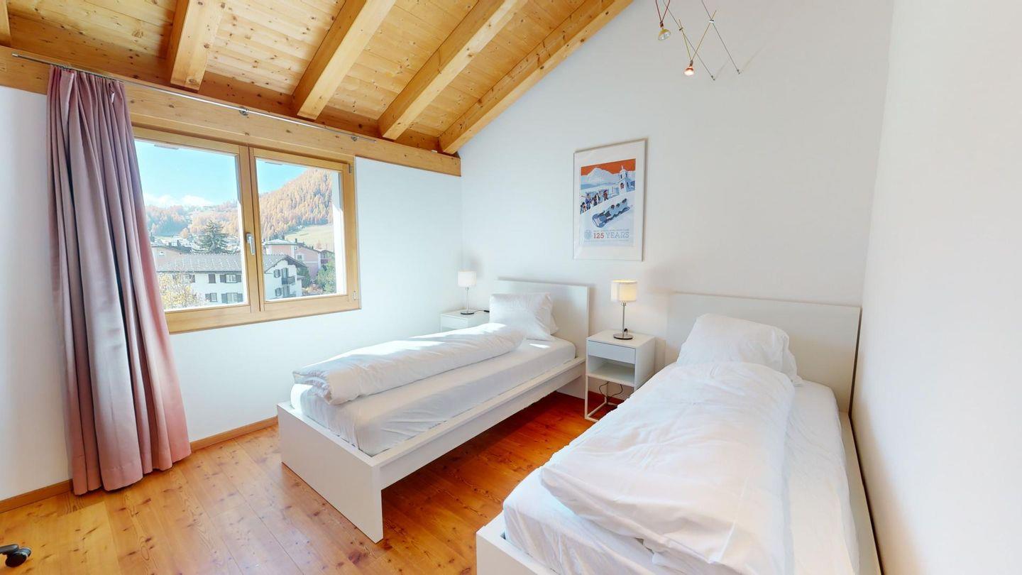 In diesem charmanten Ferienhaus fühlen sich auch Familien sehr wohl. Die ausgezeichnete Lage etwas erhöht vom Dorf bietet viel Privatraum und eine schöne Aussicht auf die Engadiner Berge. Zur Marguns Gondelbahn, die Sie ins Corviglia Skigebiet bringt, sind Sie nur bequeme 7 Gehminuten entfernt. Ebenfalls befindet sich dort der bekannte Kinderskihort. Auch Ihre Einkäufe können Sie zu Fuss erledigen. Die wohl sonnigsten Langlaufloipen des Engadins inklusive Langlaufschule befinden sich in 12 Gehminuten Entfernung.