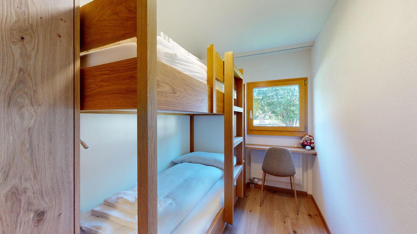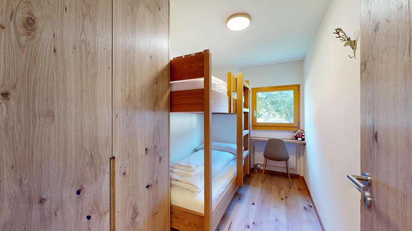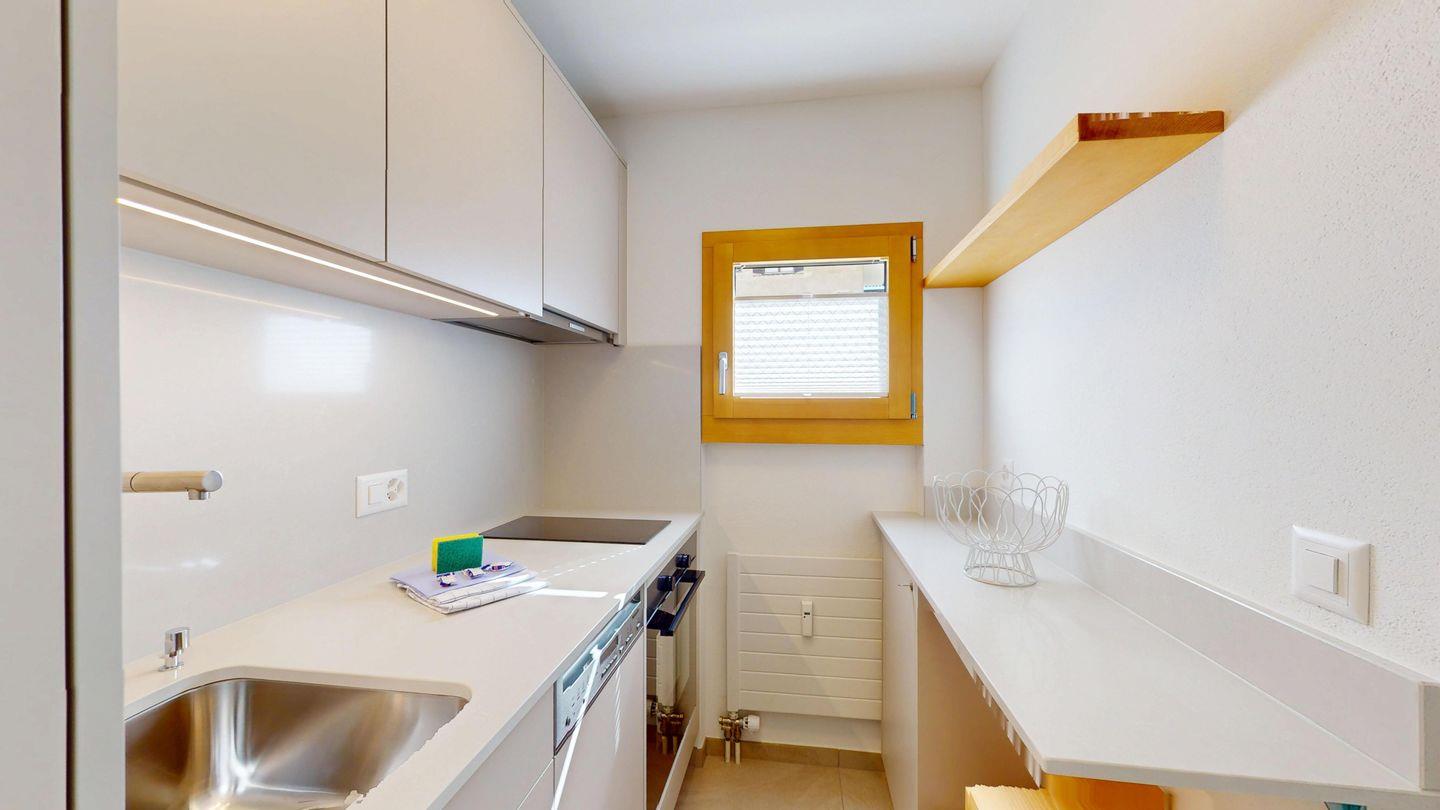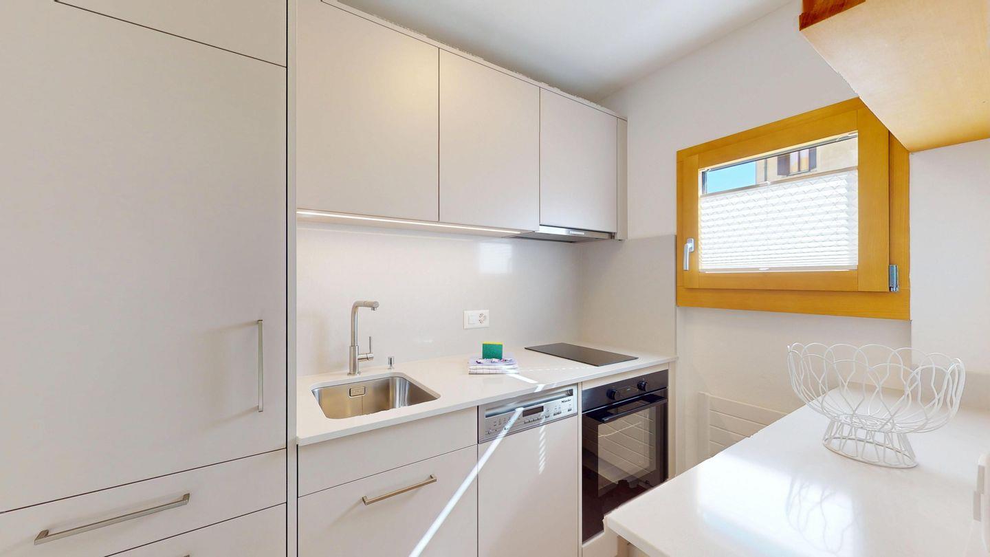 Die neu und aufwendig renovierte 3½-Zimmerwohnung im Hochparterre, bietet modernen Komfort an ruhigen Lage. Sie eignet sich hervorragend für Familien oder Paare. Eingang mit Garderobe, helles Wohnzimmer mit Sitzecke, Sofa, TV, Zugang zur Terrasse mit schönem Gartensitzplatz. Moderne kleine Küche, mit hochwertigen Geräten ausgestattet: Kühlschrank mit Gefrierfach, Geschirrspüler, Induktionskochfeld mit 2 Herdplatten, Backofen, Toaster, Wasserkocher und Nespresso Kaffeemaschine. Ein Doppelschlafzimmer mit Blick auf die Gartenanlage. Ein 2. Schlafzimmer mit Kajütenbett. Badezimmer mit Dusche/WC, hochwertigen Fliesen und einem eleganten Waschbecken ausgestattet. Zusätzliches Gäste-WC. Garagenplatz