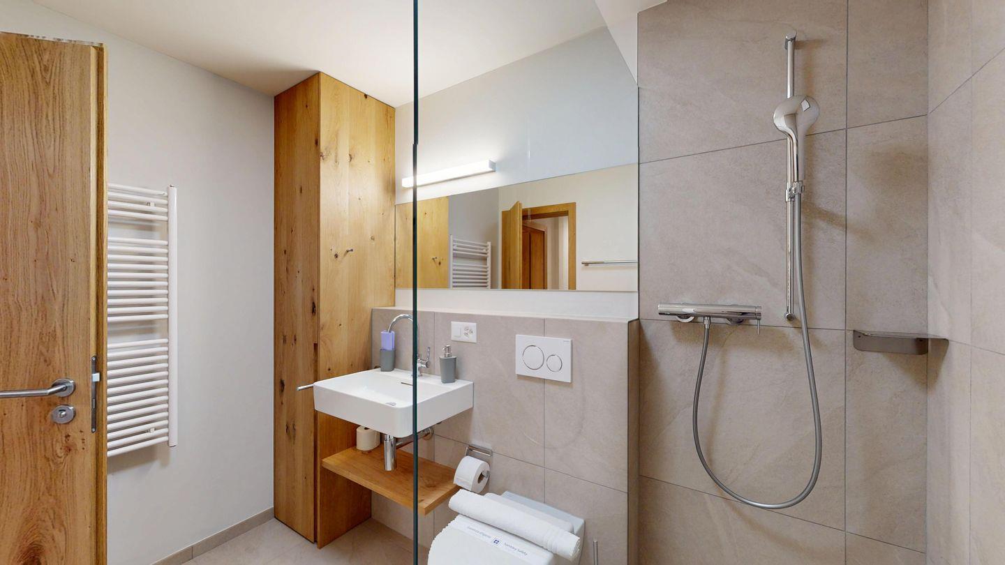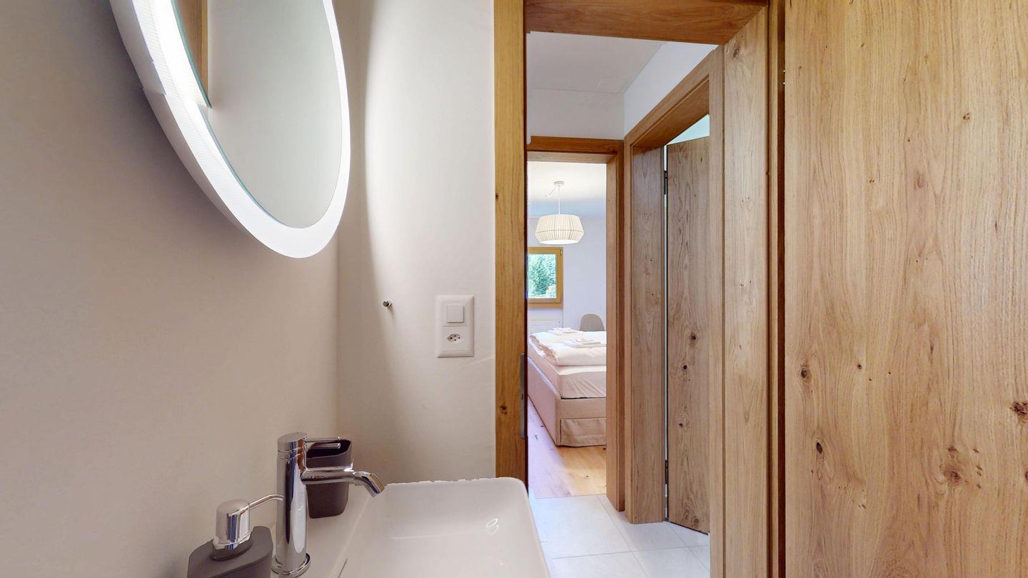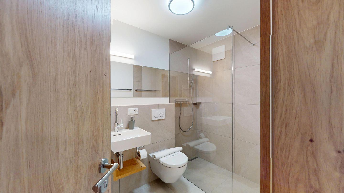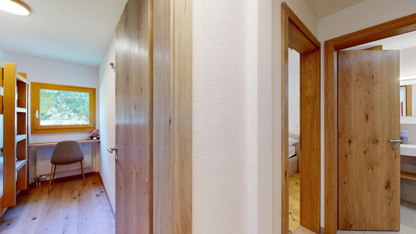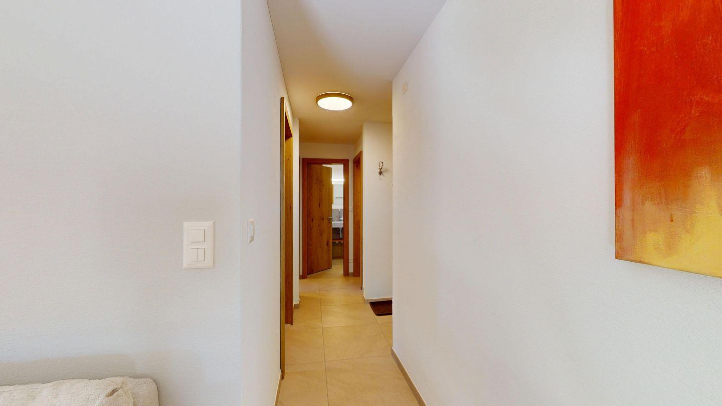 Die neu und aufwendig renovierte 3½-Zimmerwohnung im Hochparterre, bietet modernen Komfort an ruhigen Lage. Sie eignet sich hervorragend für Familien oder Paare. Eingang mit Garderobe, helles Wohnzimmer mit Sitzecke, Sofa, TV, Zugang zur Terrasse mit schönem Gartensitzplatz. Moderne kleine Küche, mit hochwertigen Geräten ausgestattet: Kühlschrank mit Gefrierfach, Geschirrspüler, Induktionskochfeld mit 2 Herdplatten, Backofen, Toaster, Wasserkocher und Nespresso Kaffeemaschine. Ein Doppelschlafzimmer mit Blick auf die Gartenanlage. Ein 2. Schlafzimmer mit Kajütenbett. Badezimmer mit Dusche/WC, hochwertigen Fliesen und einem eleganten Waschbecken ausgestattet. Zusätzliches Gäste-WC. Garagenplatz