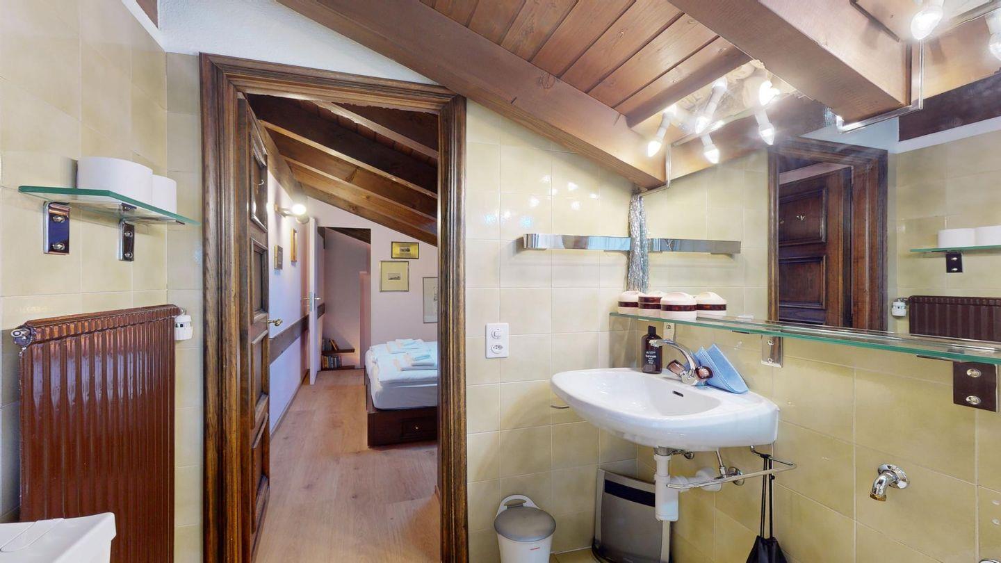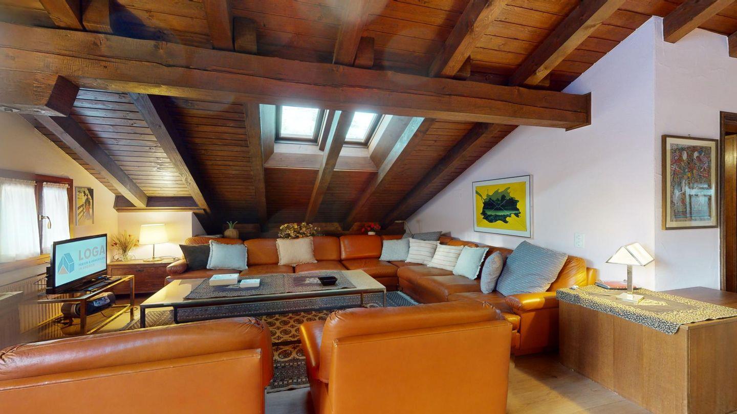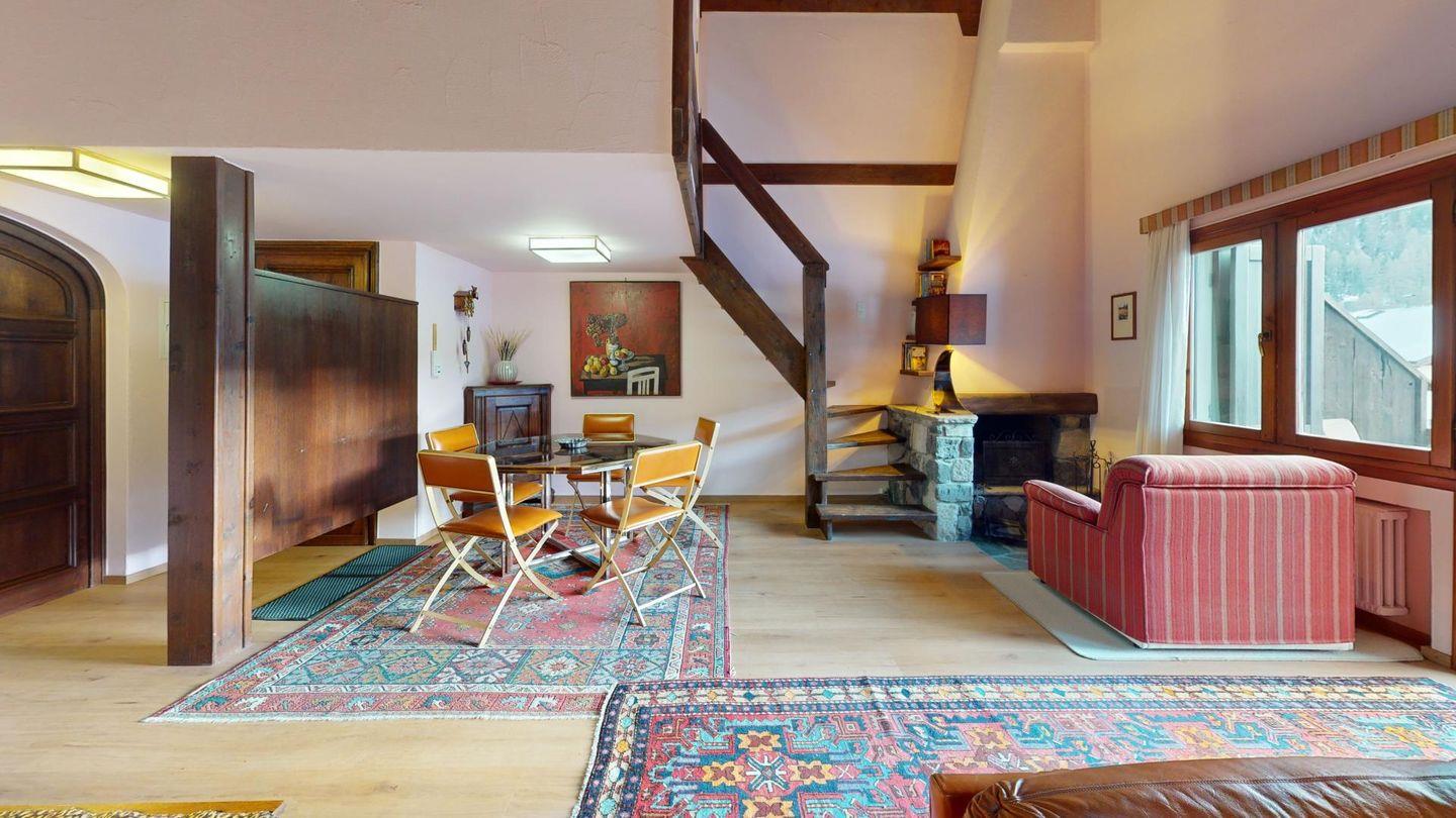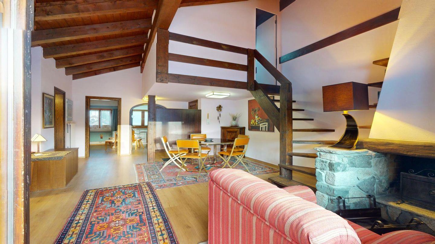 3-Zimmerwohnung im 3. Stock, ca. 80 m2. Eingang mit Garderobe. Grosses Wohn-/ Esszimmer mit Kamin und Südbalkon. TV, Radio und CD. Separate Küche mit Fenster, Backofen, Geschirrspülmaschine, Chicco d'Oro Kaffeemaschine, Toaster und Kühlschrank. Ein Doppelzimmer (160x190). Bad mit Badewanne/Bidet/Lavabo/WC. Vom Wohnzimmer führt eine Treppe zur geschlossenen Galerie, wo sich zwei Einzelbetten (2X80x190) sowie ein Bad mit Badewanne/WC/Lavabo befinden. Bügeleisen und Bügelbrett. Sehr komfortable Möblierung. Garagenplatz. Waschküche zur gemeinsamen Benützung. Haustiere sind nicht erlaubt. Anreise Samstag