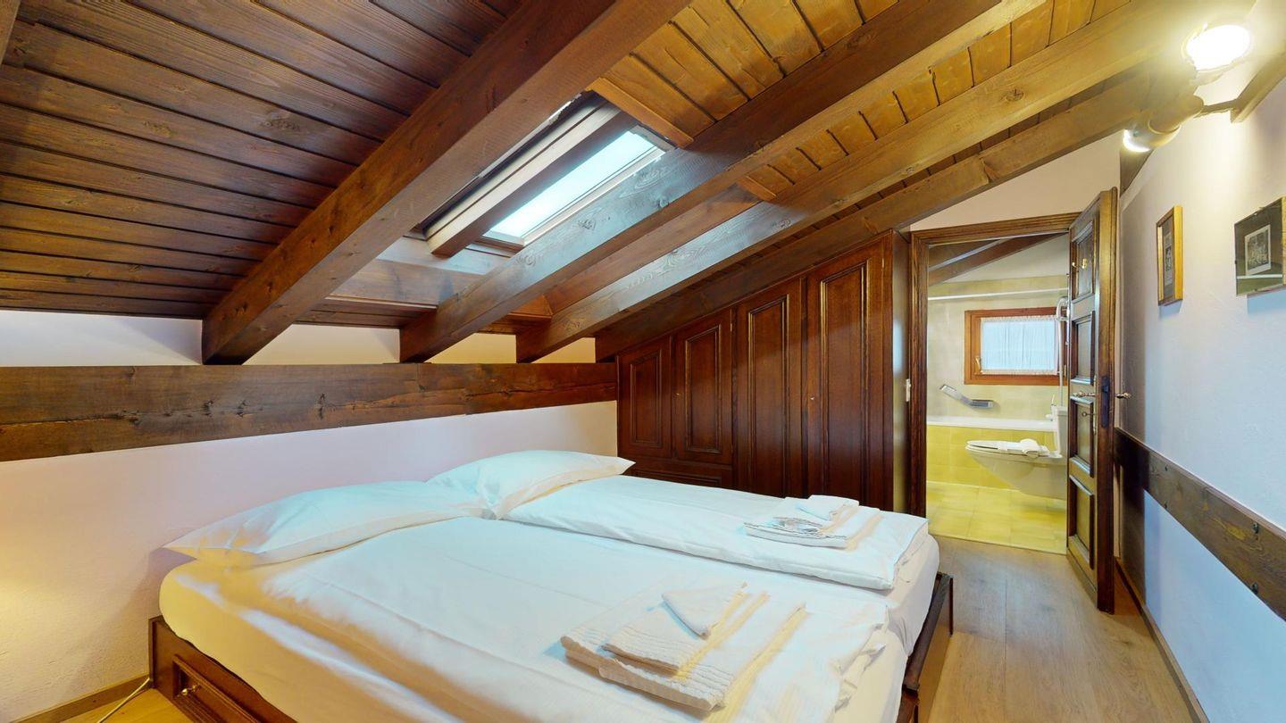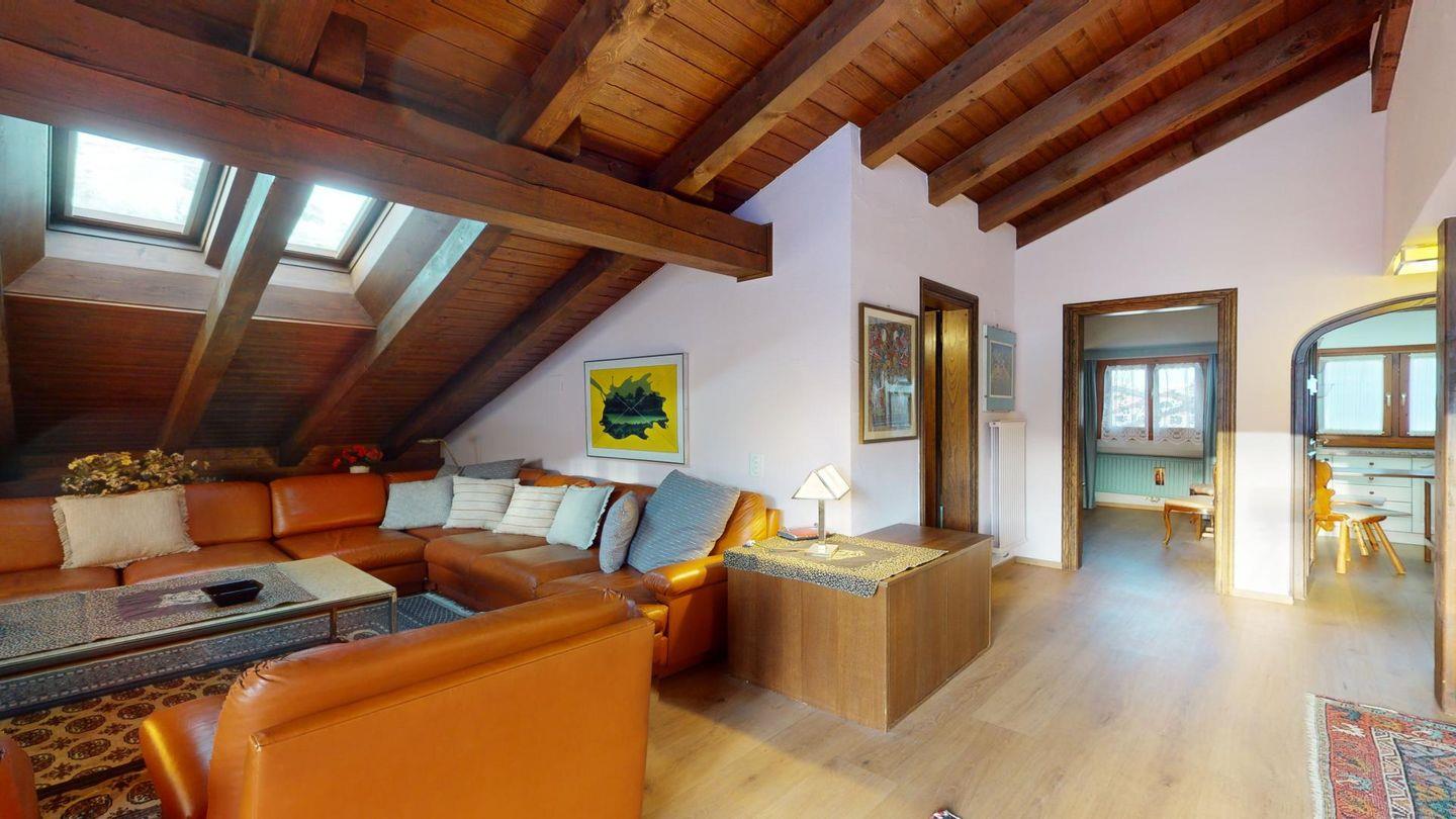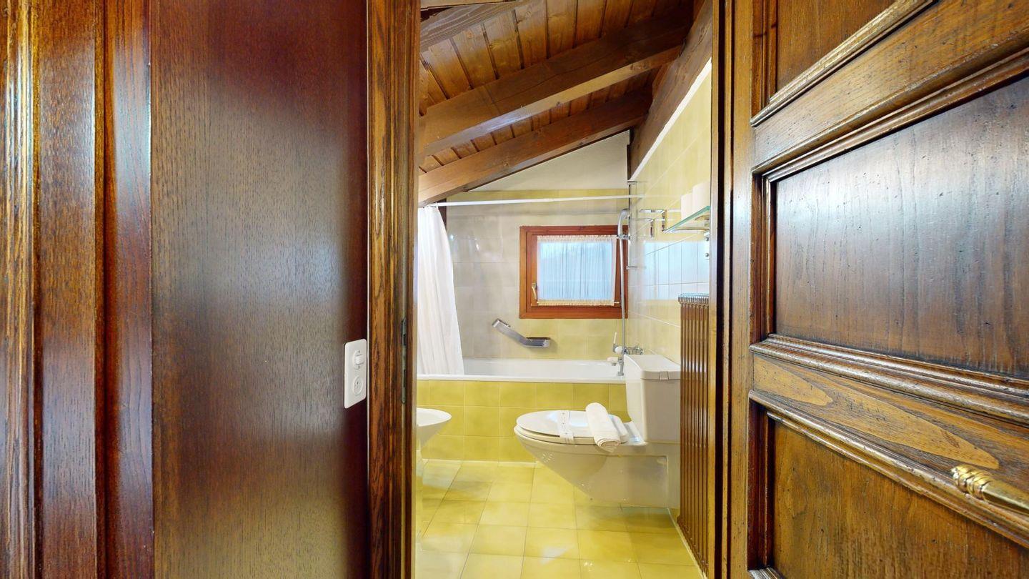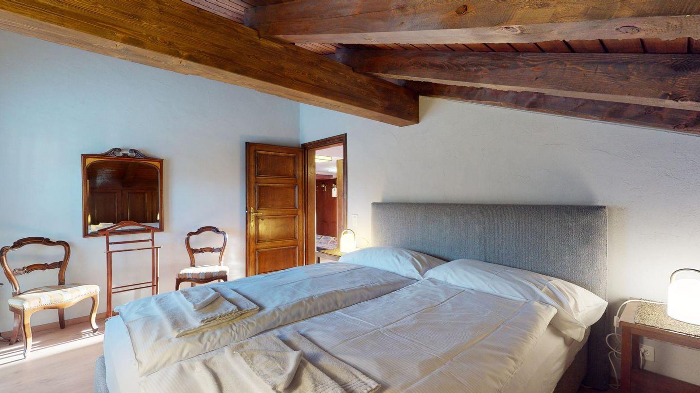 3-Zimmerwohnung im 3. Stock, ca. 80 m2. Eingang mit Garderobe. Grosses Wohn-/ Esszimmer mit Kamin und Südbalkon. TV, Radio und CD. Separate Küche mit Fenster, Backofen, Geschirrspülmaschine, Chicco d'Oro Kaffeemaschine, Toaster und Kühlschrank. Ein Doppelzimmer (160x190). Bad mit Badewanne/Bidet/Lavabo/WC. Vom Wohnzimmer führt eine Treppe zur geschlossenen Galerie, wo sich zwei Einzelbetten (2X80x190) sowie ein Bad mit Badewanne/WC/Lavabo befinden. Bügeleisen und Bügelbrett. Sehr komfortable Möblierung. Garagenplatz. Waschküche zur gemeinsamen Benützung. Haustiere sind nicht erlaubt. Anreise Samstag