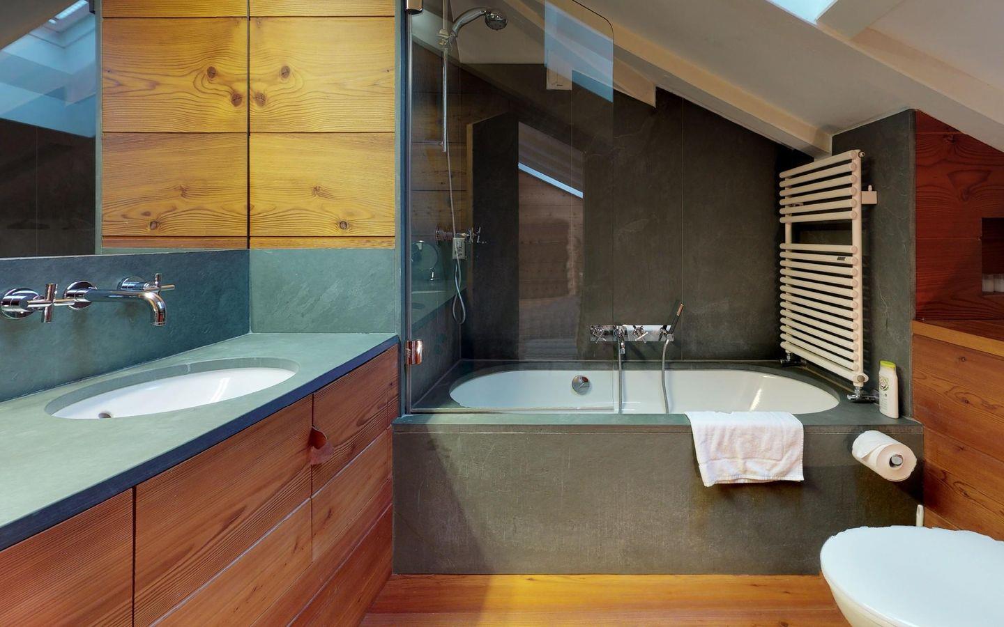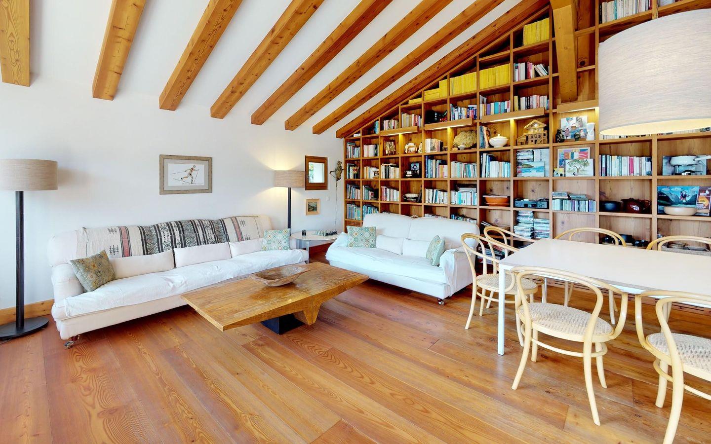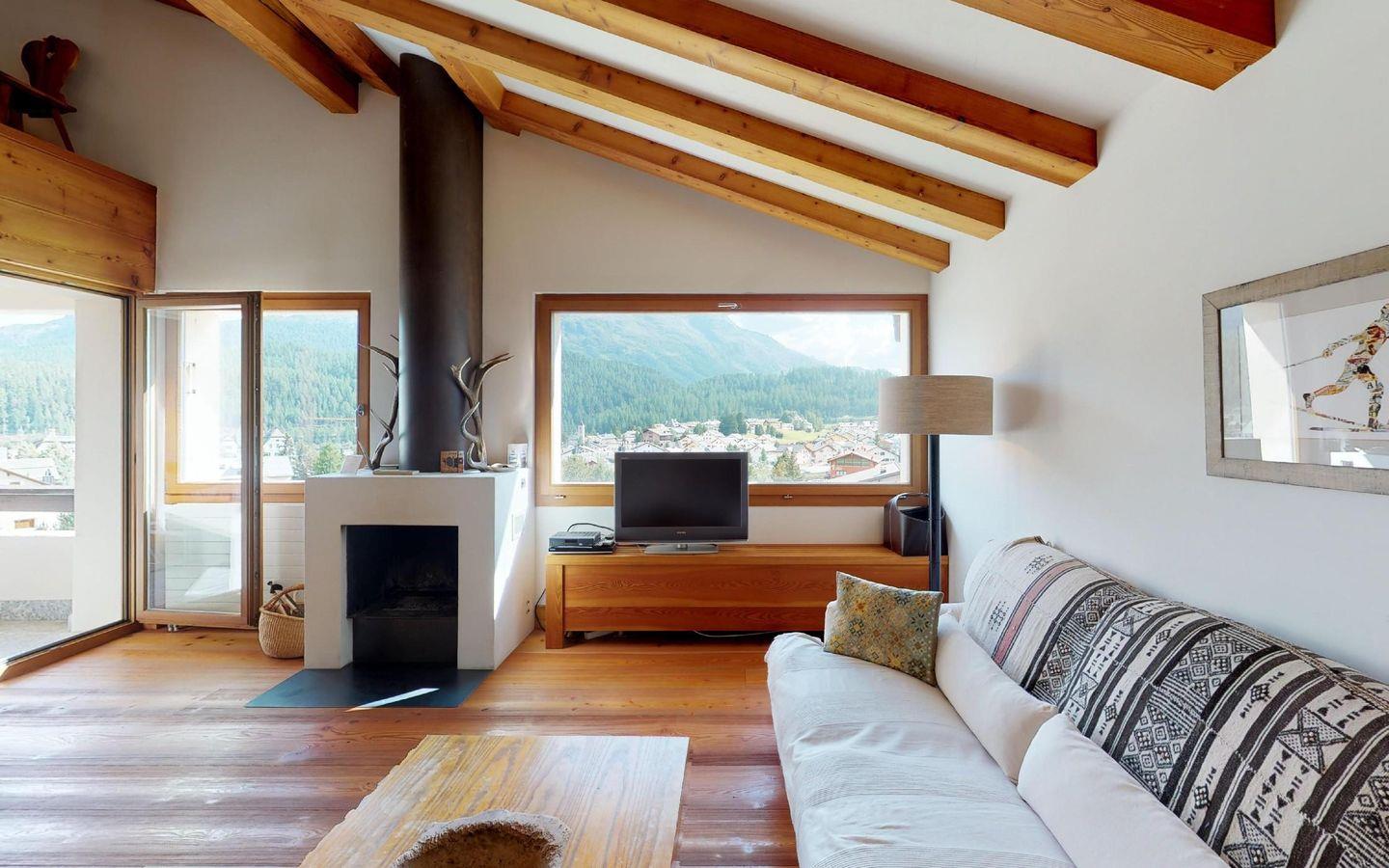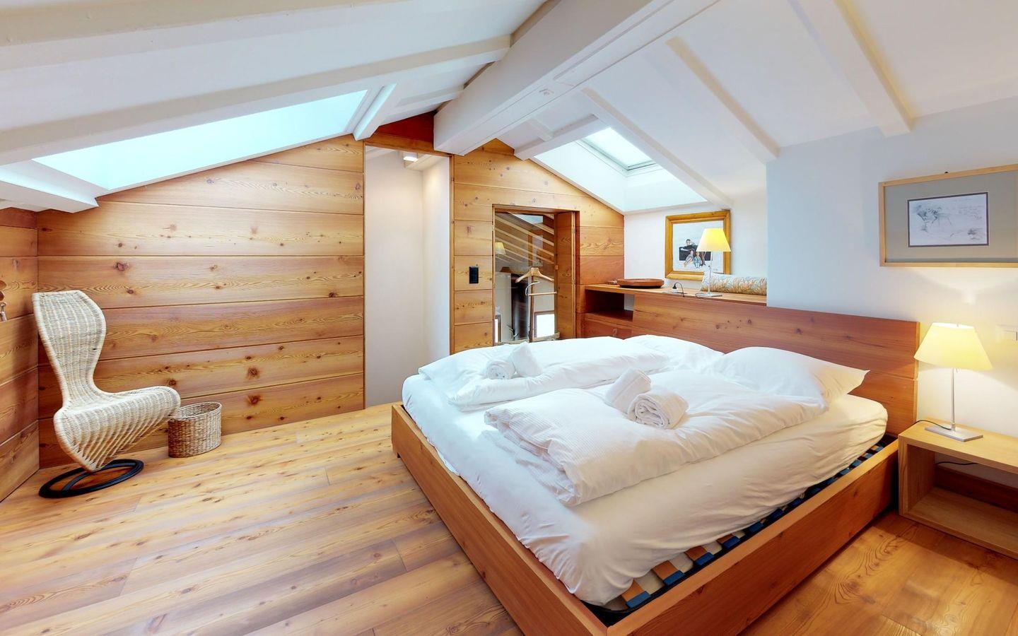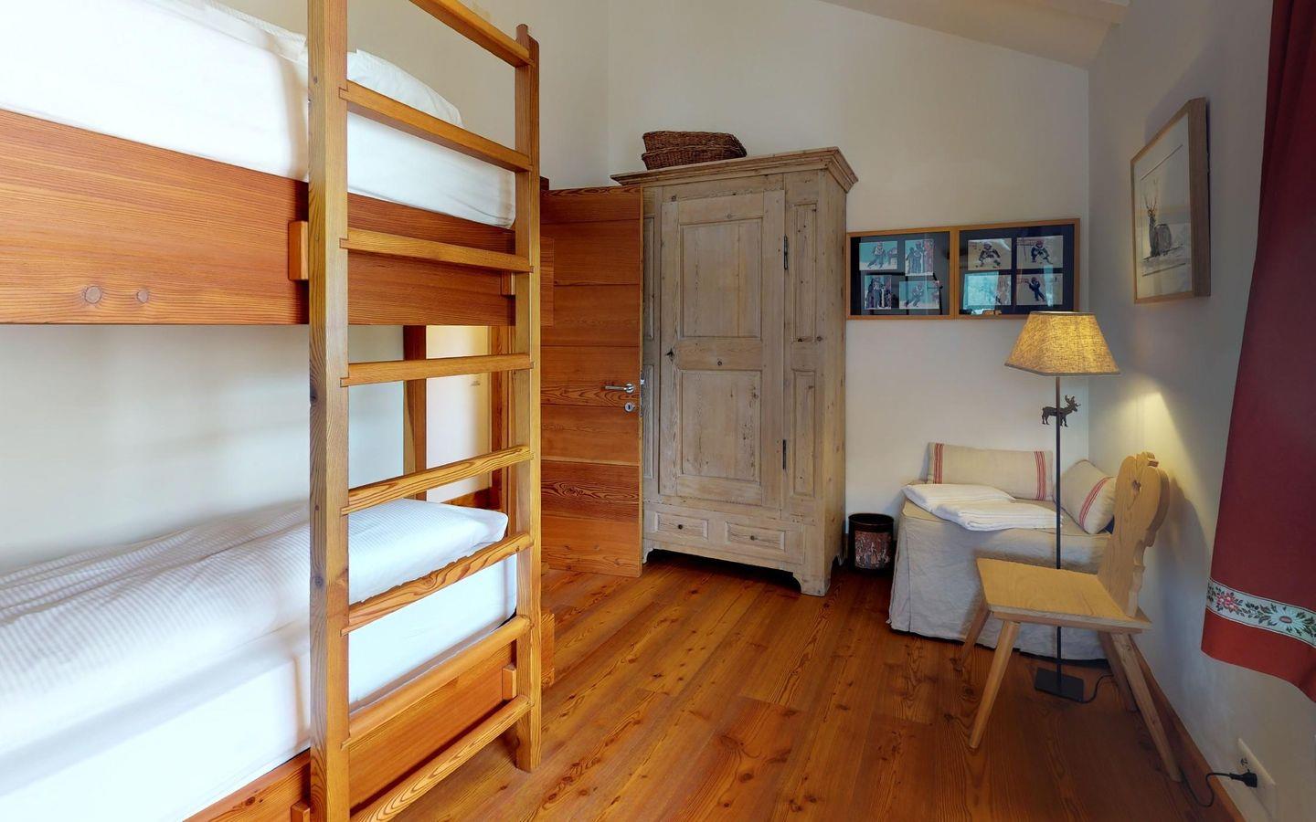 Erstklassige, rustikale und helle Ferienwohnung im Dachgeschoss mit fantastischer Aussicht über Celerina. Wohngeschoss: Wohn- /Esszimmer mit Kamin. Balkon. Separate Küche. 1 Schlafzimmer mit 2 Einzelbetten, 1 Schlafzimmer mit Kajüttenbetten. 1 Bad/Dusche. Oberer Stock: Doppelschlafzimmer mit Bad. 2 Garagen-Parkplätze. Eigener Skiraum. Bitte beachten Sie, dass dieses Wohnhaus über keinen Aufzug verfügt.