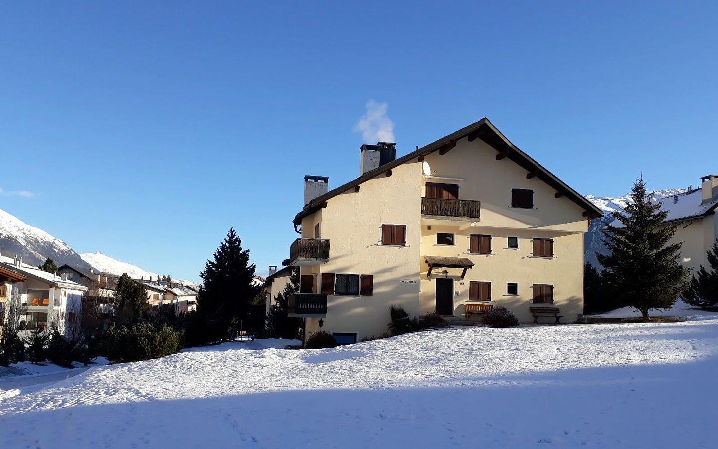 Das Appartementhaus "Mulin" liegt an praktischer, sonniger Lage in Celerina. Nur 10 Minuten Gehdistanz zu der Gondelbahn nach Marguns, Kinderskilift sowie zur Skischule. Bequemer Busservice nach St. Moritz in nächster Nähe. Einkaufsmöglichkeiten sowie Langlaufzentrum Celerina erreichen Sie in 12 Gehminuten.