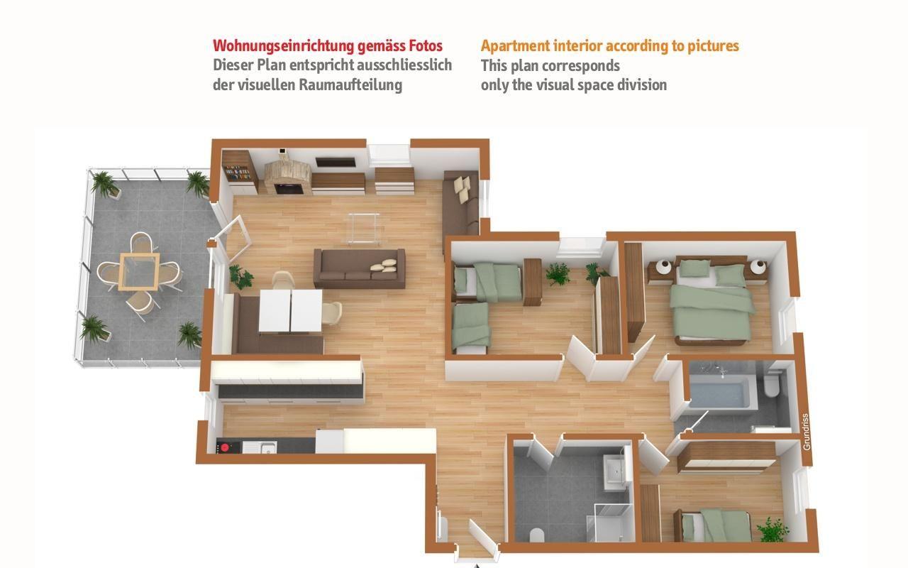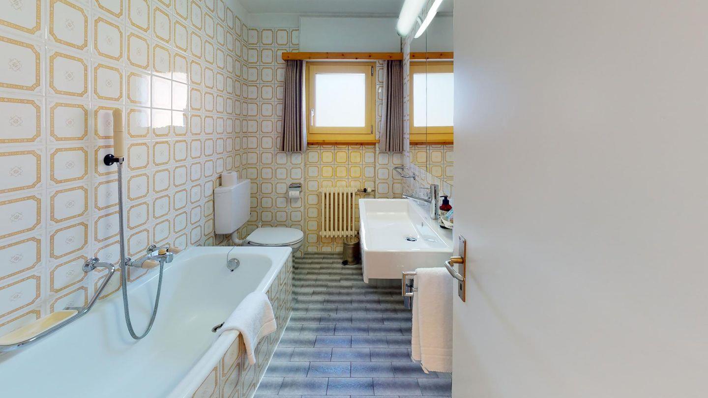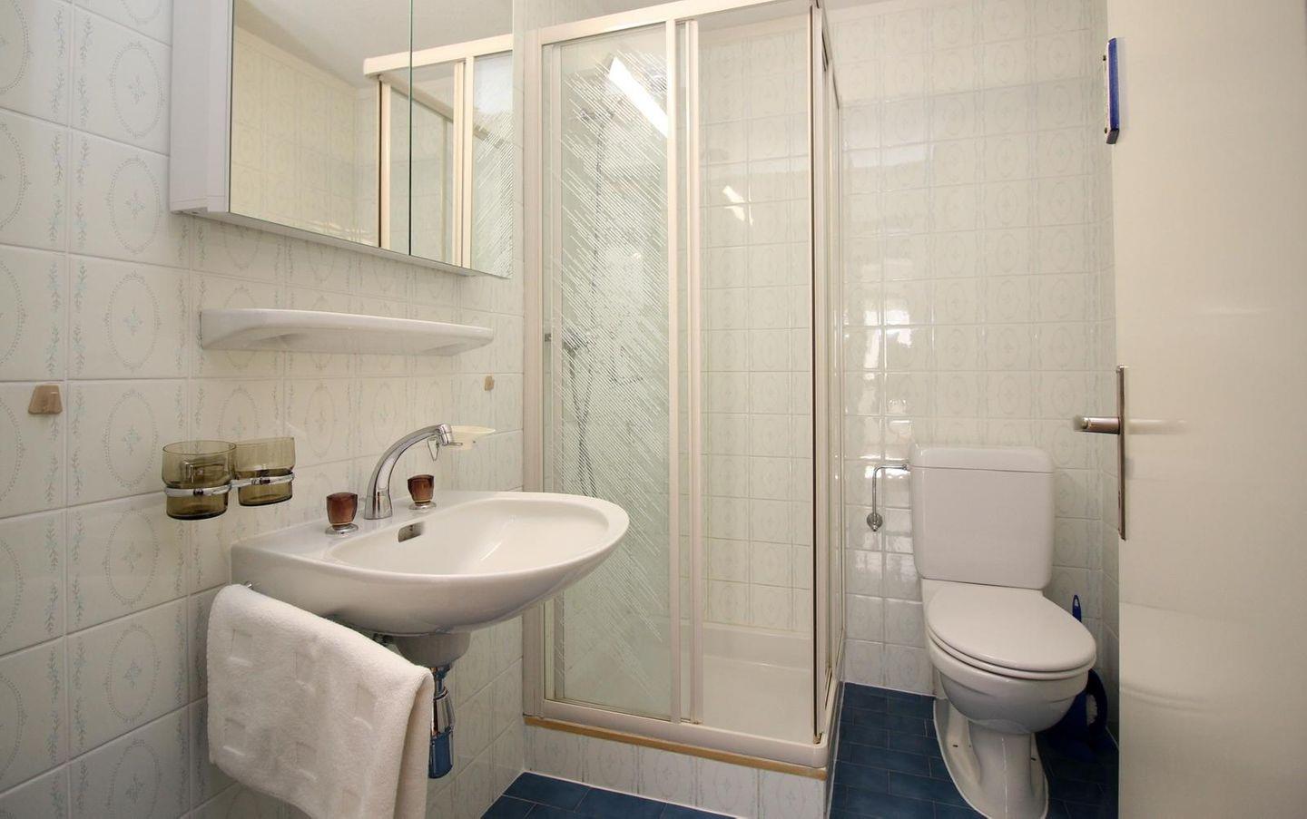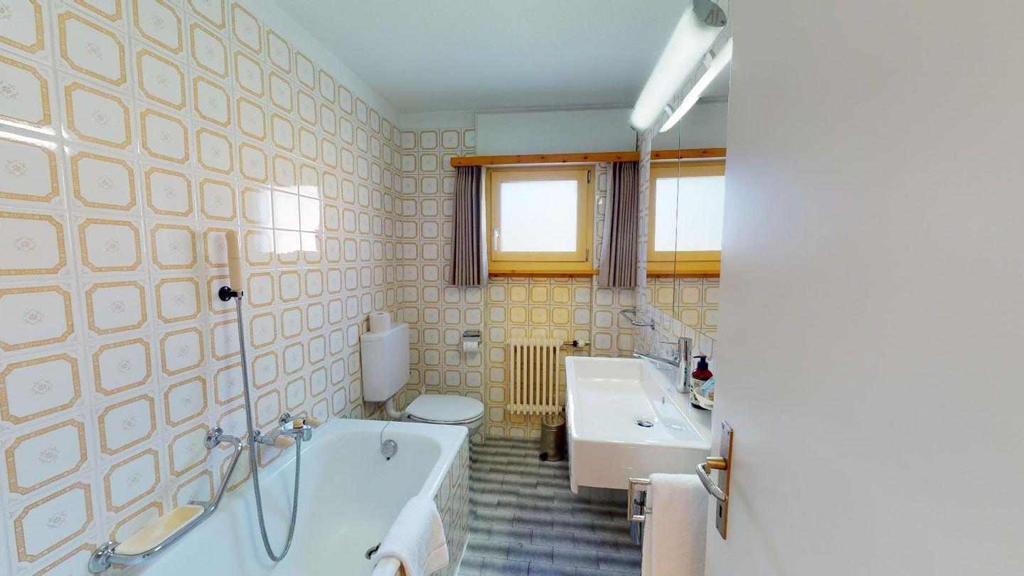 Praktische 4- Zimmer - Familienwohnung mit Wohn- /Esszimmer, Kamin und Terrasse. Separate Küche. 2 Doppelschlafzimmer, ein Schlafzimmer mit Stockbetten. Bad/Dusche sowie separate Dusche, 1 privater Garagenplatz.