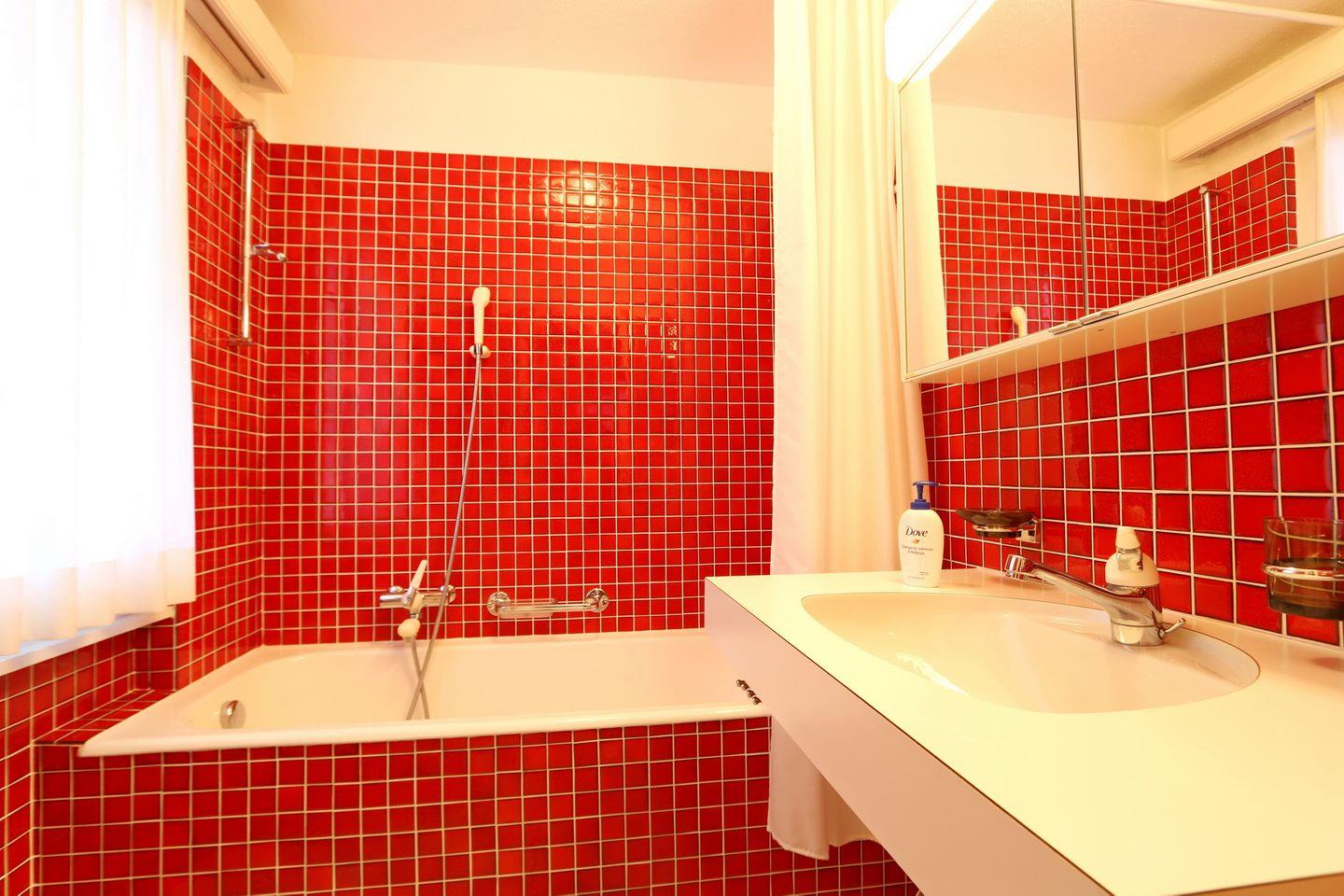 Die Wohnung verfügt über 2 Schlafzimmer mit je einem en-suite Badezimmer (Badewanne/Dusche). Das Elternschlafzimmer ist mit einem grossen Doppelbett ausgestattet. Das Schlafzimmer verfügt über viel Stauraum und einem wunderschönen Blick in die Engadiner Bergwelt. Das zweite Schlafzimmer verfügt über 2 Einzelbetten, welche auch als Doppelbett benützt werden können. Auf Anfrage stehen in diesem Schlafzimmer 2 weitere ausklappbare Einzelbetten zur Verfügung. Die Wohnung verfügt weiter über ein Gäste-WC. Die Küche ist komplett eingerichtet und in einem separatem Raum. Das Wohnzimmer ist sehr grosszügig gestaltet und ist mit einem grossen Chemineé ausgestattet. WLAN und TV stehen zur freien Verfügung.