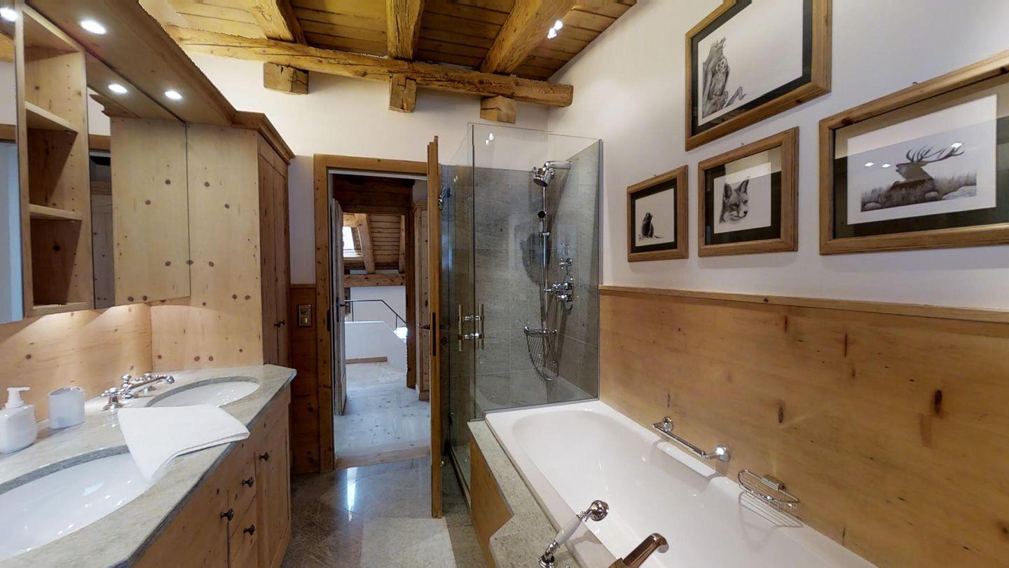 Im Dachgeschoss befinden sich das Hauptschlafzimmer mit eigenem Badezimmer mit Badewanne/separate Dusche/WC/Doppelwaschbecken sowie einer offenen Galerie mit kleiner Büroecke und Sicht auf den Wohnzimmer- und Kaminbereich.