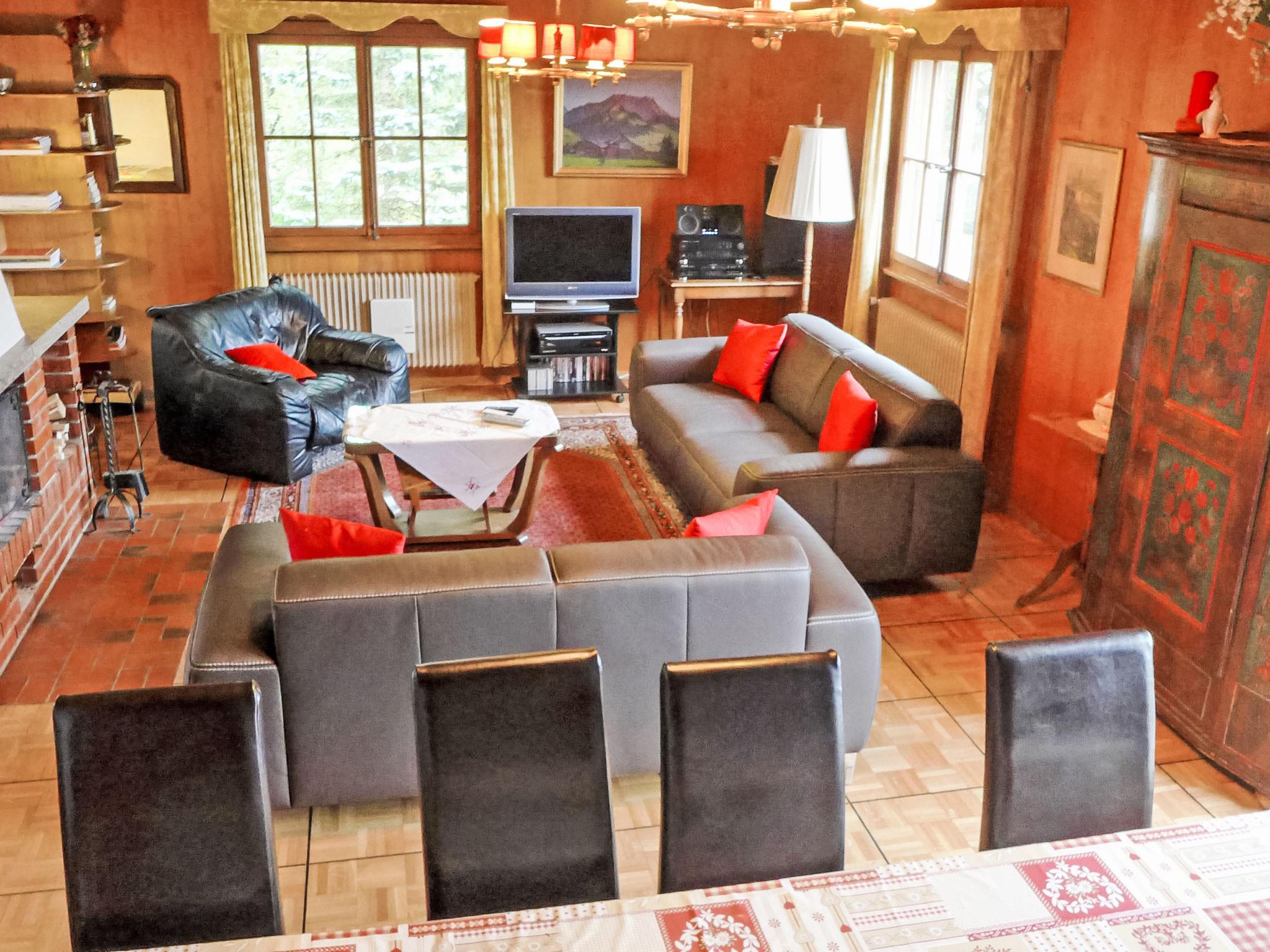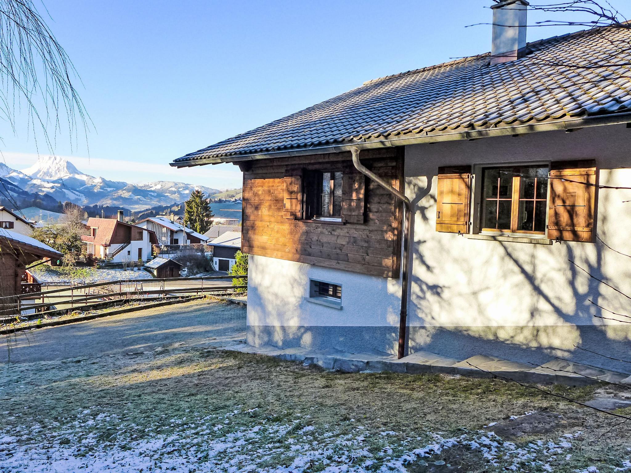 Charmey: Beautiful, rustic chalet "Clairval", 887 m a.s.l., 3 storeys, surrounded by trees and meadows. In the resort. Private: large garden (fenced). In the house: storage room for bicycles, storage room for skis. Parking (for 5 cars), single garage. Parking space or garage only for small to medium-sized cars. Supermarket 700 m, restaurant 500 m, bus stop "Corbettaz" 700 m, outdoor swimming pool, indoor swimming pool 650 m, thermal baths "Les Bains de la Gruyère" 350 m. Tennis, minigolf 600 m, sports centre 650 m, walking paths from the house 1 m, cable car 1 km, ski rental 900 m, cross country ski track 1.5 km, ice rink 1.5 km. Nearby attractions: Château de Gruyère 12 km, Maison Cailler 6.6 km, Bulle 11 km, Les Gorges de la Jogne, Gstaad 48 km, Montreux 48 km. Well-known ski regions can easily be reached: Charmey 1 km, Moléson 16 km. Well-known lakes can easily be reached: Lac de Gruyère. Hiking paths: Charmey 1 km, Moleson 16 km. Please note: car recommended.