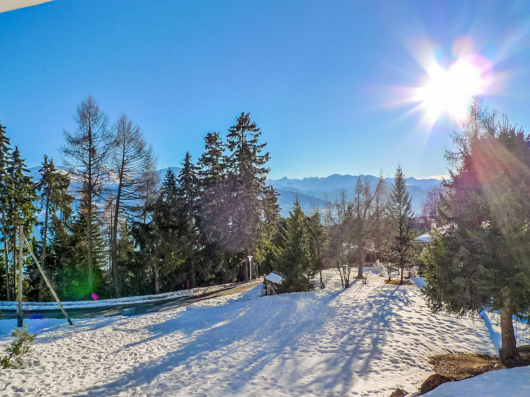 Apartment house "Vermala-Soleil A/B", 4 storeys. Above Montana, in the district of Vermala, 1.2 km from the centre of Montana, in a quiet, sunny position, 1.5 km from the lake, 650 m from the skiing area, south facing position. In the house: lift, storage room for skis, central heating system, washing machine, tumble dryer (for shared use, extra), drying room. Shop 1.3 km, supermarket 1.3 km, restaurant 1.3 km, bakery 1.4 km, bus stop "Vermala Soleil" 50 m, railway station "Funiculaire Montana Gare" 1.5 km, bathing lake "Moubra" 2.1 km, lake Grenon 1500 km. Golf course (18 hole) 2.2 km, skisport facilities 650 m, ice rink 1.3 km. Please note: ski bus (free of charge). Additional accommodations can be booked.