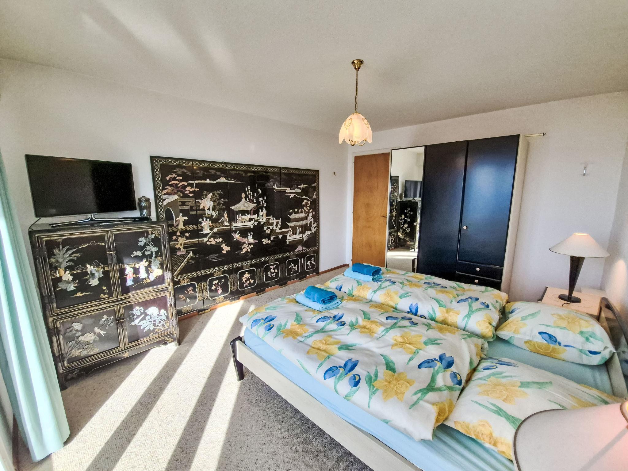 "Vermala Soleil B 13 COMBI", 4-room apartment 100 m2 on 4th floor. Spacious and bright, comfortable and beautiful furnishings: living/dining room with cable TV (flat screen), hi-fi system, DVD and DVD collection available. 1 room with 1 french bed (180 cm, length 200 cm). 1 room with 1 double bed (2 x 90 cm, length 200 cm). 1 room with 1 double bed (2 x 90 cm, length 200 cm), cable TV. Exit to the balcony. Large kitchen (oven, dishwasher, 4 ceramic glass hob hotplates, toaster, kettle, microwave, electric coffee machine, Capsules for coffee machine (Nespresso) extra, raclette grill, fondue Set (chinoise, cheese)). Bath/WC, shower/WC. Large balcony 15 m2, south facing position and west facing position. Balcony furniture, deck chairs (2). Very beautiful panoramic view of the mountains, the valley and the resort. Facilities: washing machine, dryer, iron, hair dryer. Internet (WiFi, free). Garage space n lettre O at 100 m, height 178 cm, width 240 cm. Please note: non-smokers only. Maximum 1 pet/ dog allowed.