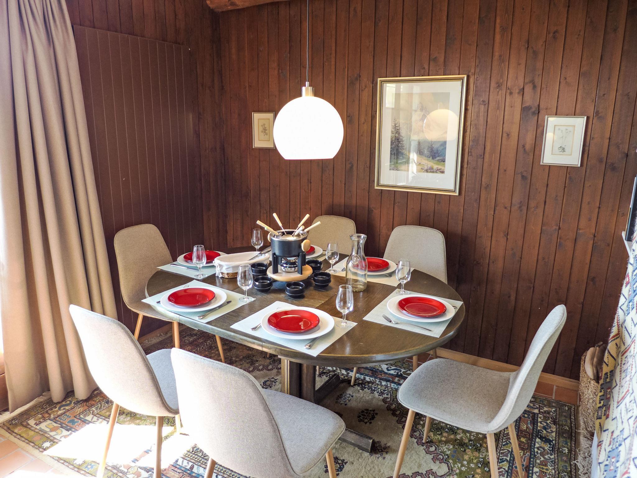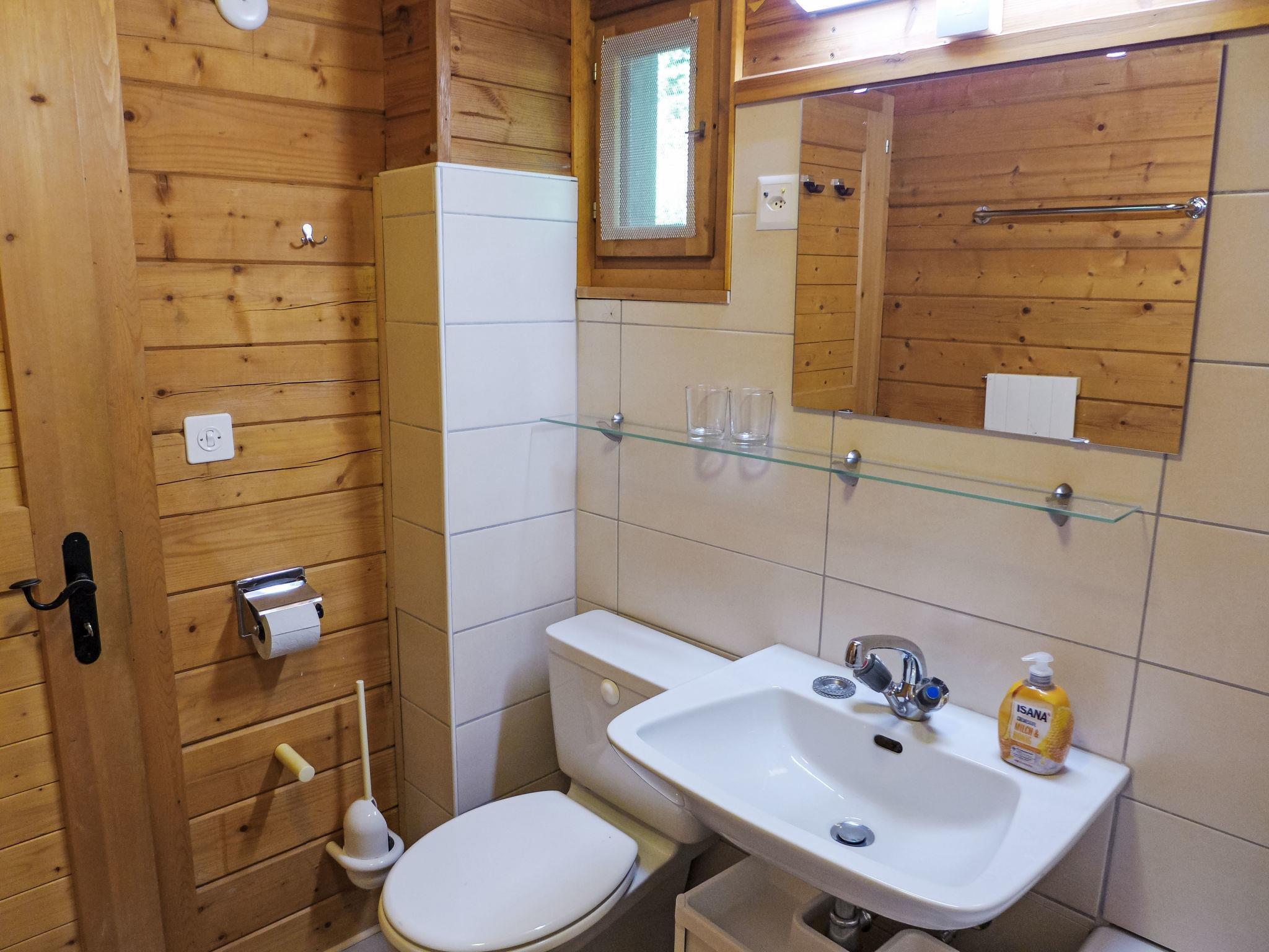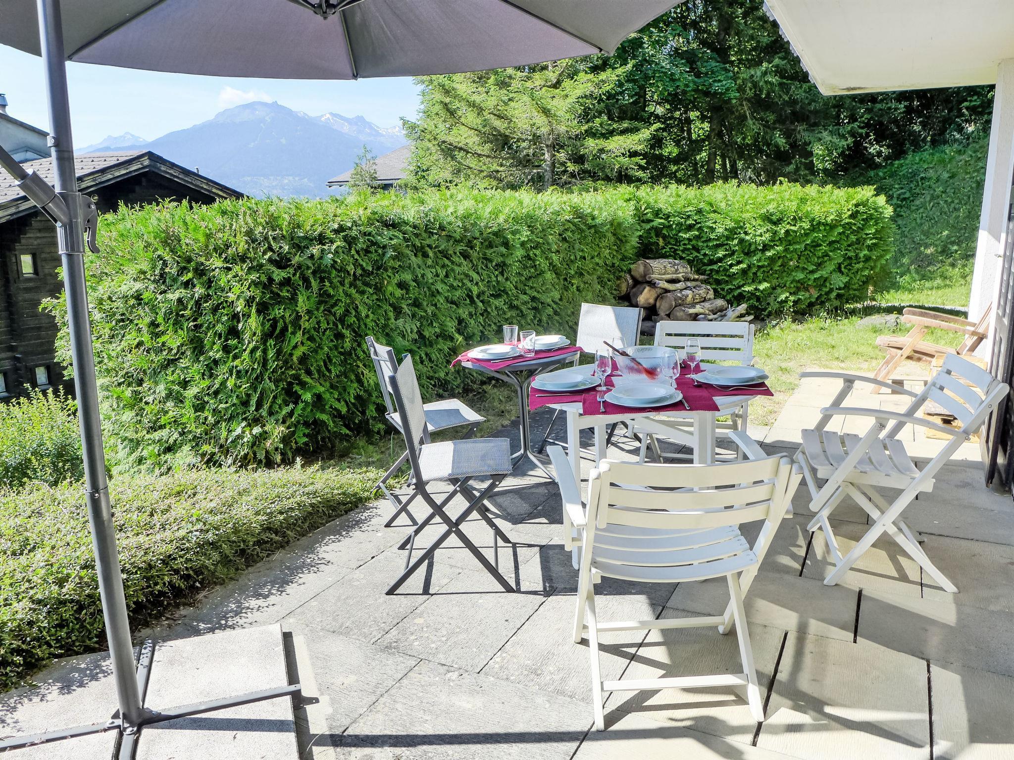Mollens 7 km from Crans-Montana: Comfortable chalet "Sans Nom", 3 storeys, terraced, surrounded by trees. Above Mollens, in a quiet, sunny, elevated position, traffic calmed area, 6 km from the lake, 5 km from the skiing area, 20 m from the stream, in the countryside, south facing position. Private: garden with lawn, natural garden 500 m2. In the house: central heating system, drying room. Steep motor access. In Winter: please take snow chains, 4x4 car recommended in winter. Stepped path (40 steps) to the house. Shop 5.2 km, grocery 950 m, supermarket 5.5 km, restaurant 1.1 km, bakery 4.7 km, bus stop "Randogne, La Côte" 350 m, railway station "Funiculaire Bluche" 1.9 km, bathing lake "Moubra" 6.4 km, lake Grenon 6 km. Golf course (18 hole) 7.3 km, skisport facilities 5 km. Well-known ski regions can easily be reached: Lac Moubra 6.4 km, Etang Long 7.2 km. Please note: car recommended. The owner does not accept any youth groups.