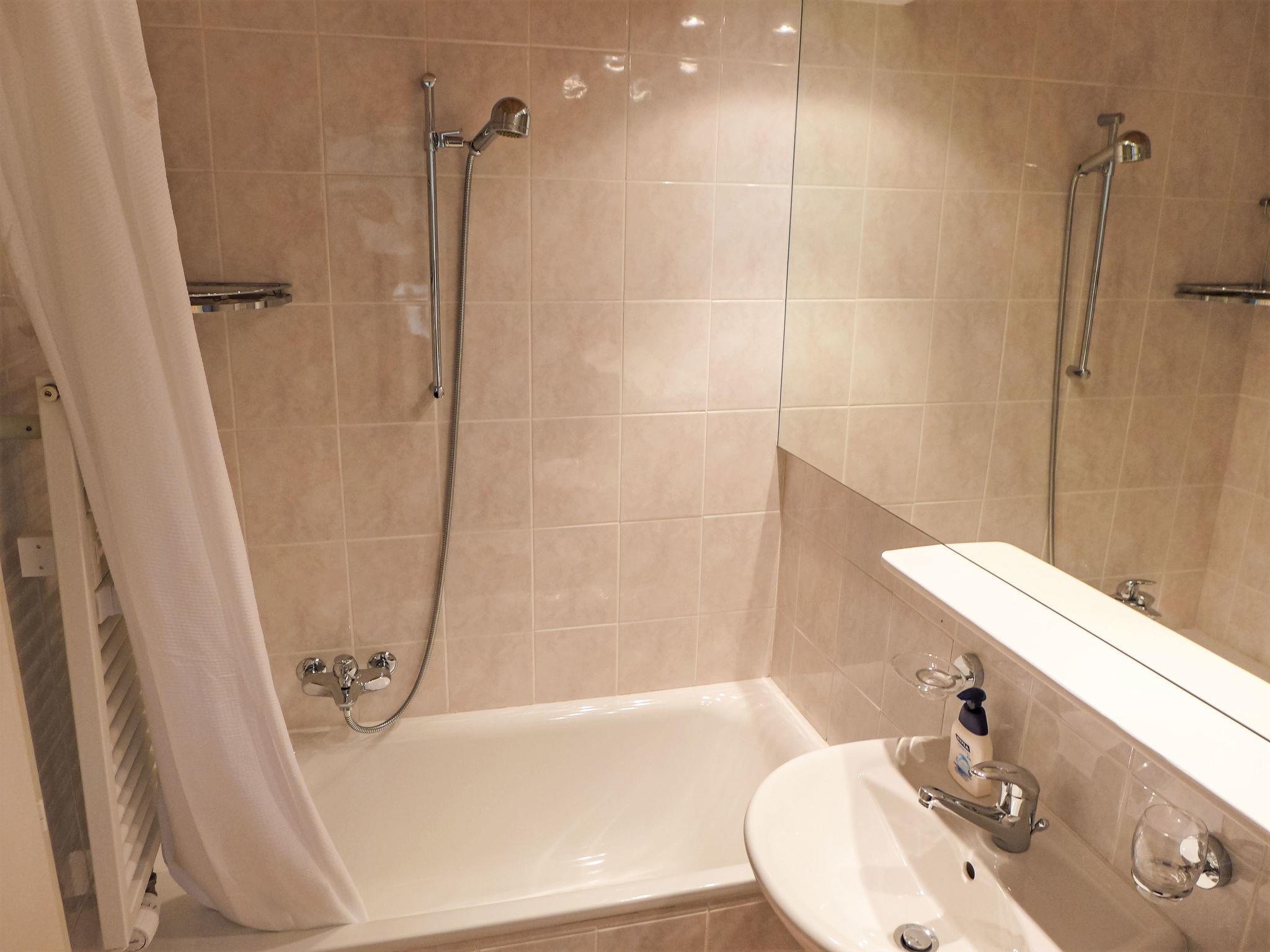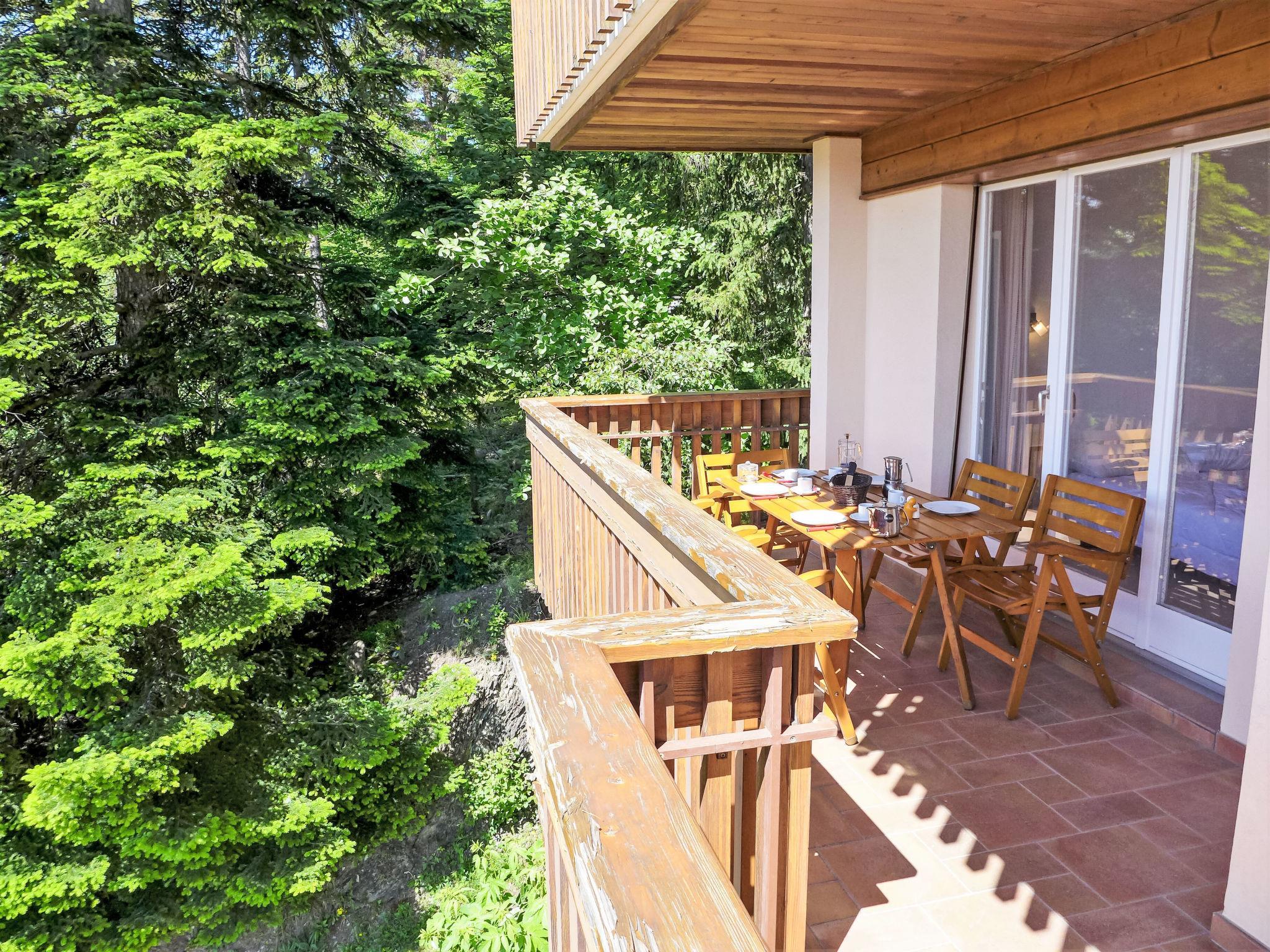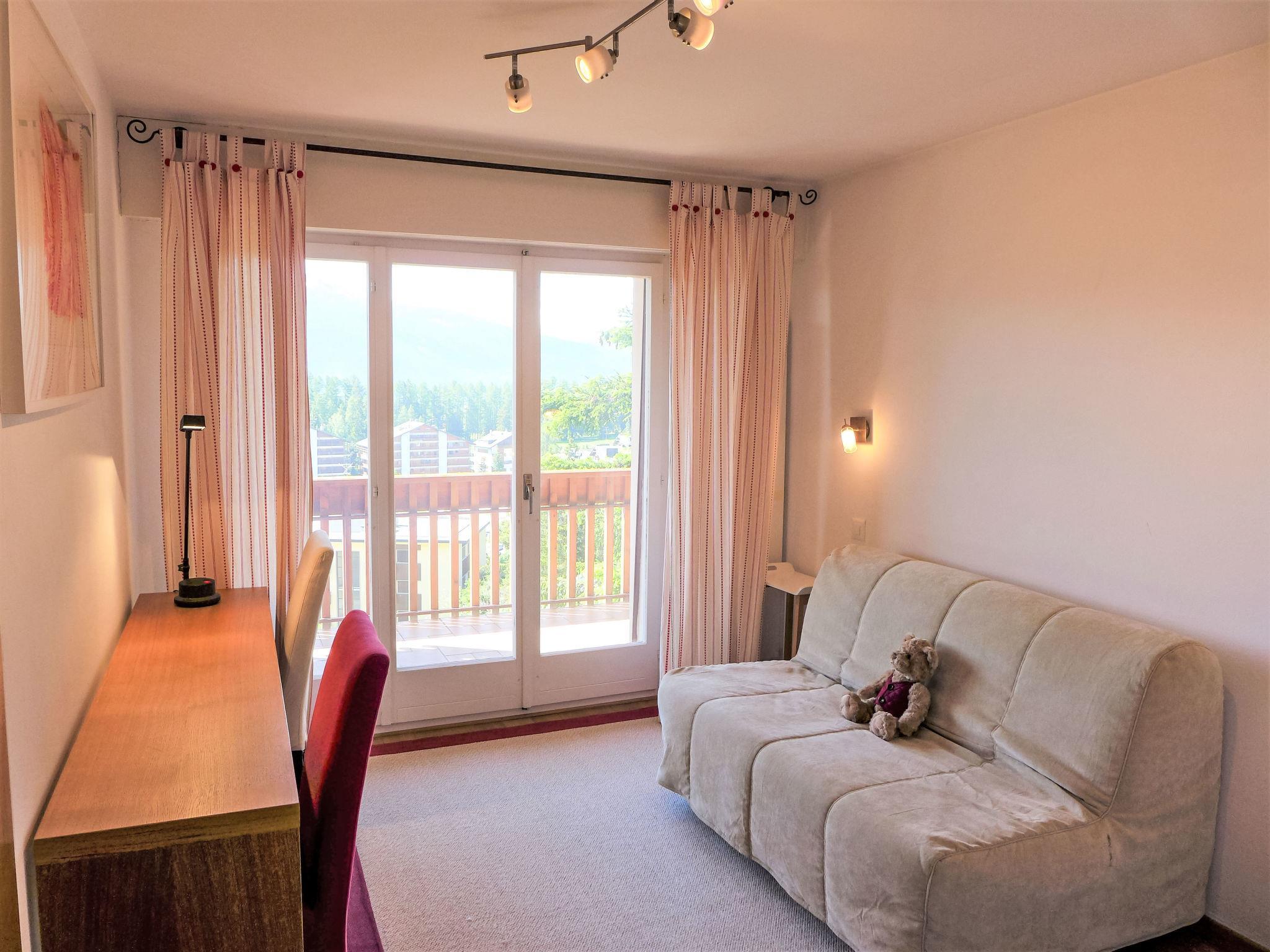 "Les Arolles B12", 3-room apartment 90 m2 on 2nd floor. Spacious, comfortable and beautiful furnishings: living/dining room with open-hearth fireplace, cable TV, flat screen, DVD and DVD collection available. Exit to the balcony, south facing position. 1 room with Dressing room with 1 double bed (160 cm, length 200 cm), hip bath/WC. 1 room with 1 bed (80 cm, length 190 cm), 1 sofabed (140 cm, length 190 cm). Exit to the balcony, south facing position. Kitchen (oven, dishwasher, 4 ceramic glass hob hotplates, kettle, freezer, electric coffee machine, Capsules for coffee machine (Nespresso) extra, raclette grill, combination microwave, fondue Set (chinoise)). Exit to the balcony, north facing position. Shower/WC. Balcony 20 m2, south facing position. Balcony furniture. Very beautiful view of the mountains and the countryside. Facilities: iron, hair dryer. Internet (WiFi, free). Garage (1 car), height 193 cm, width 220 cm. Please note: non-smokers only.