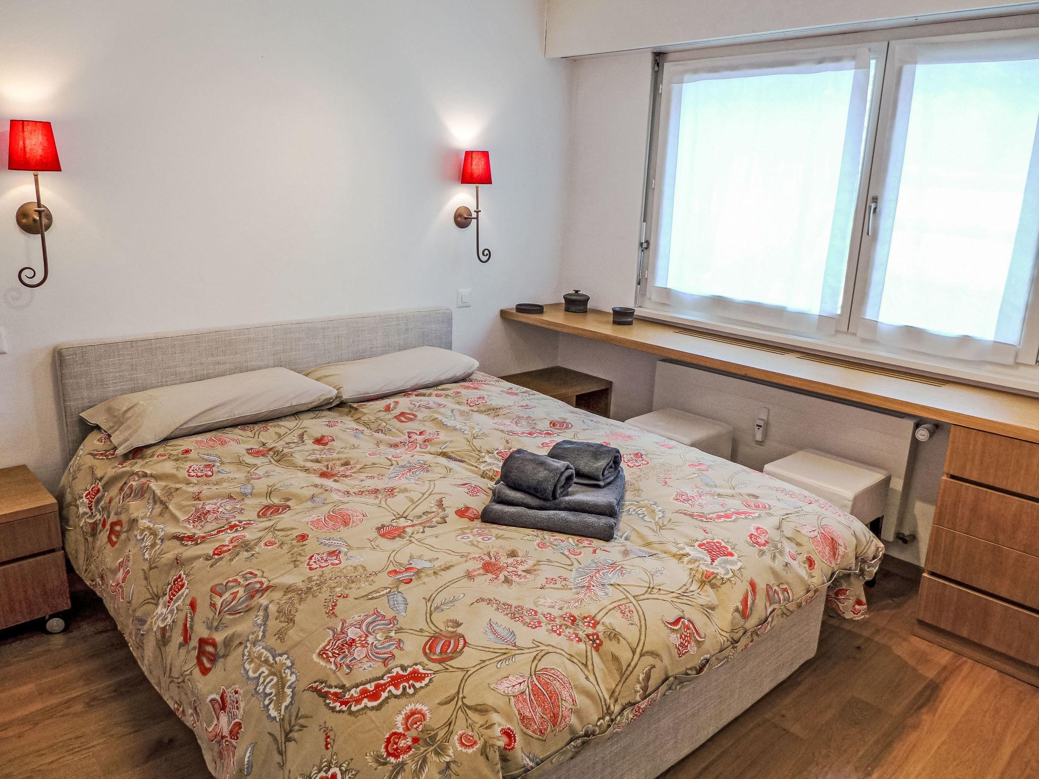 Floors are counted as levels (calculated from the bottom of the building). Apartment house "Les Arolles". In the resort 650 m from the centre of Crans, in a sunny position, 1.2 km from the lake, 900 m from the skiing area, south facing position. In the house: lift, storage room for skis, central heating system, washing machine, tumble dryer (for shared use, extra), drying room. Single garage. Shop, supermarket 700 m, restaurant 550 m, bakery 800 m, 8 minute walk to the centre, bus stop "Crans-Montana, Pas de l'Ours" 180 m, railway station "Funiculaire Montana Gare" 2.6 km, bathing lake "Moubra" 1.8 km. Golf course (18 hole) 1.1 km, tennis 1.8 km, indoor tennis centre 1.8 km, skisport facilities 900 m, ski bus stop 180 m, cross country ski track 1.1 km, ice rink 1.8 km. Well-known lakes can easily be reached: Etang Long 1.2 km, Etang Grenon 1.3 km. Hiking paths: Bisse du Ro 1.4 km. Please note: ski bus (free of charge).