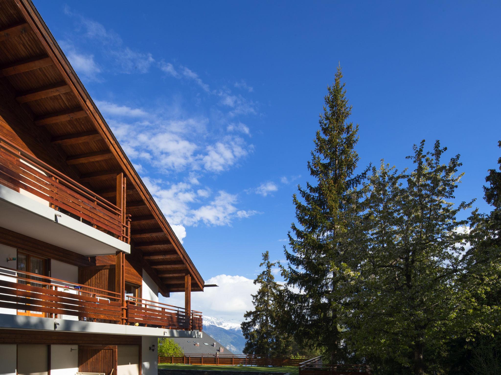 Comfortable residence "Tsaumiau A". Above Montana, in the district of Violettes, 1.5 km from the centre of Montana, 2.1 km from the lake, 100 m from the skiing area, east facing position. In the complex: lift, storage room for skis, central heating system, washing machine, tumble dryer (for shared use, extra). Roofed, parking at the house at 150 m communal covered parking. Shop 1.5 km, supermarket 1.6 km, restaurant 1.5 km, bakery 250 m, bus stop "télé Violettes" 200 m, railway station "Funiculaire Montana Gare" 1.1 km, bathing lake "Moubra" 2.8 km, lake Grenon 2.1 km. Golf course (18 hole) 3.9 km, skisport facilities, slopes, ski rental 100 m, ski bus stop 200 m. Well-known lakes can easily be reached: Lac de la Moubra 2.8 km, Etang Long 3.7 km. Please note: ski bus (free of charge). Additional accommodations can be booked.