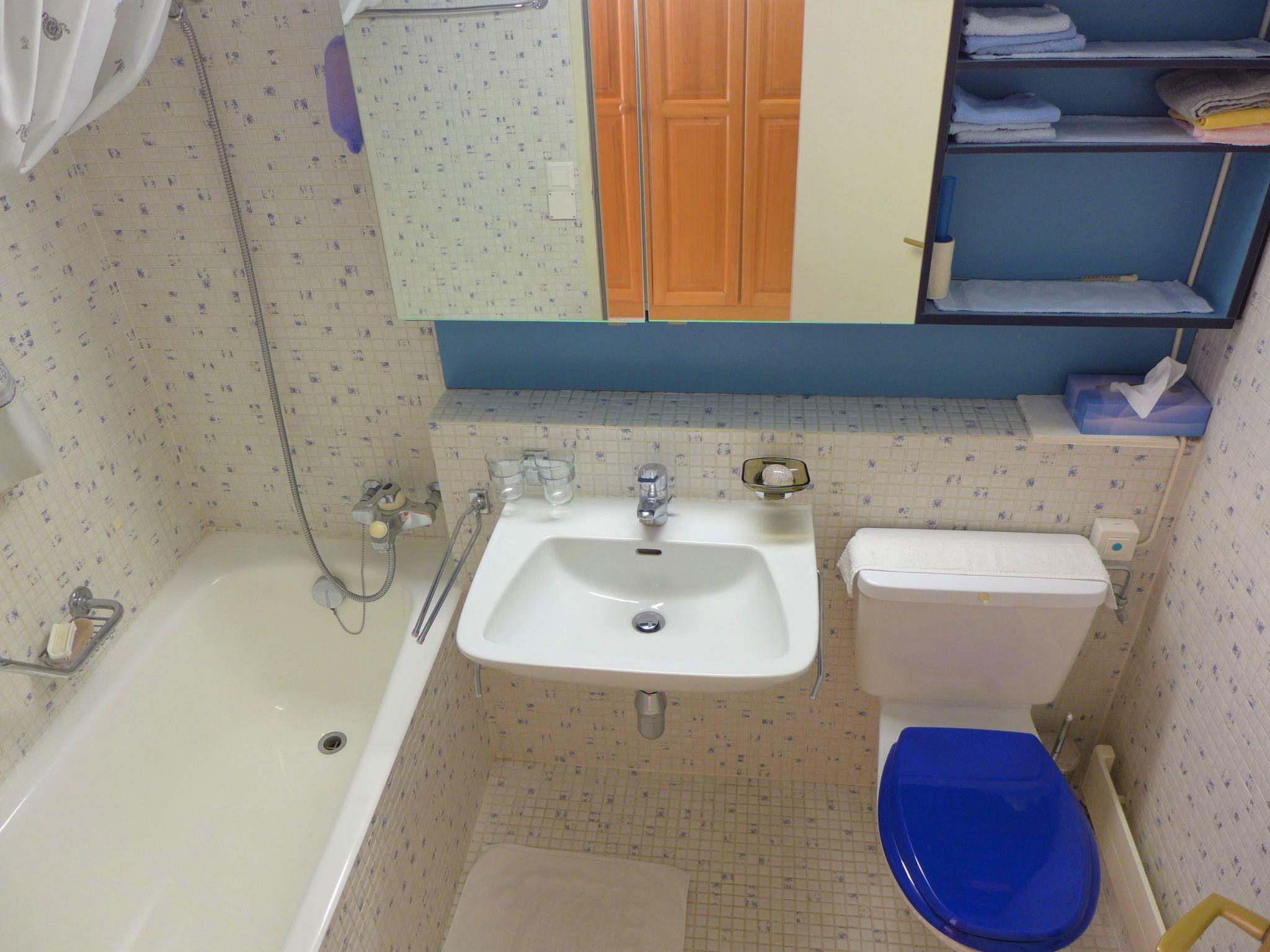 "Jeanne D'Arc Apt. B-11", 1-room studio 30 m2 on 1st floor. Comfortable and cosy furnishings: living/sleeping room with 1 double sofabed (2 x 80 cm, length 200 cm), cable TV, flat screen, radio and CD-player. Exit to the balcony. Kitchenette (oven, 4 ceramic glass hob hotplates, toaster, kettle, electric coffee machine, Capsules for coffee machine (Nespresso) extra, raclette grill, fondue Set (cheese)). Bath/WC. Balcony 8 m2, south facing position. Balcony furniture. Beautiful view of the mountains. Facilities: hair dryer. Internet (WiFi, free). Please note: non-smokers only. Washing machine and dryer available in the building / sector B.