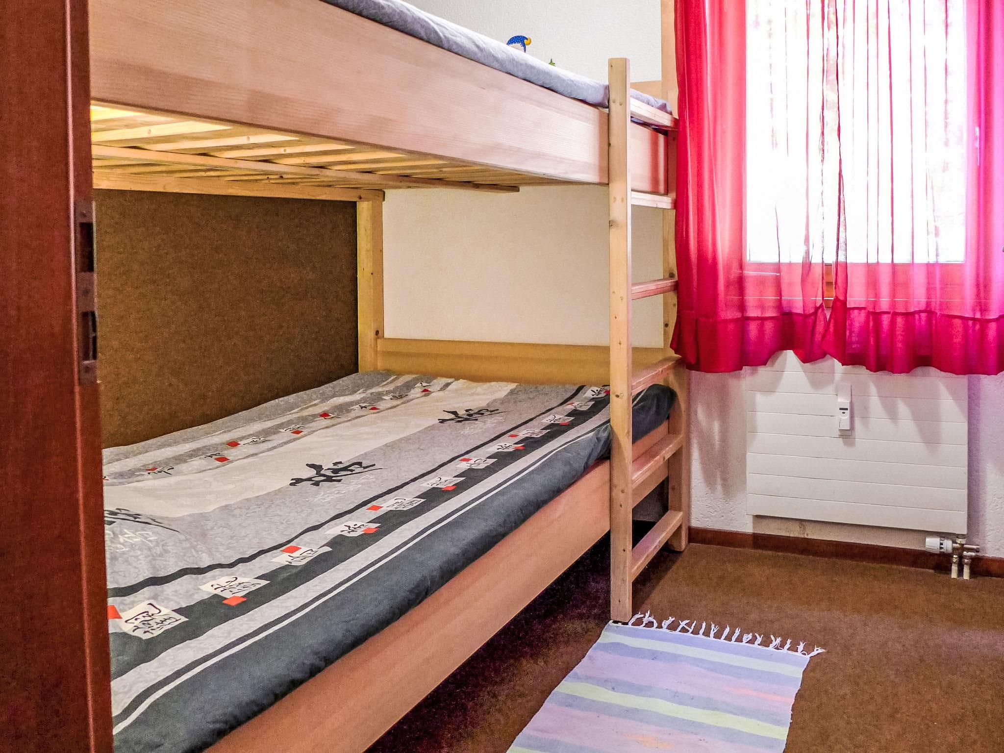 "Yuca B Apt. 28", 3-room apartment 70 m2, on the upper ground floor. Comfortable furnishings: living/dining room with cable TV, flat screen and hi-fi system. Exit to the balcony, south facing position and west facing position. 1 room with 1 french bed (180 cm, length 200 cm). Exit to the balcony, south facing position and west facing position. 1 small room with 1 x 2 bunk beds (120 cm, length 200 cm). Kitchenette (3 hot plates, oven, dishwasher, toaster, kettle, microwave, electric coffee machine, Capsules for coffee machine (Nespresso) extra, raclette grill, fondue Set (cheese)). Bath/bidet/WC, shower/WC. Large balcony, south facing position and west facing position. Balcony furniture. View of the forest. Facilities: baby cot, hair dryer. Internet (WiFi, free). Please note: non-smokers only. Maximum 1 pet/ dog allowed. West facing door from balcony: direct access to the forest. Foldable baby bed, without bed linen and without duvet.
