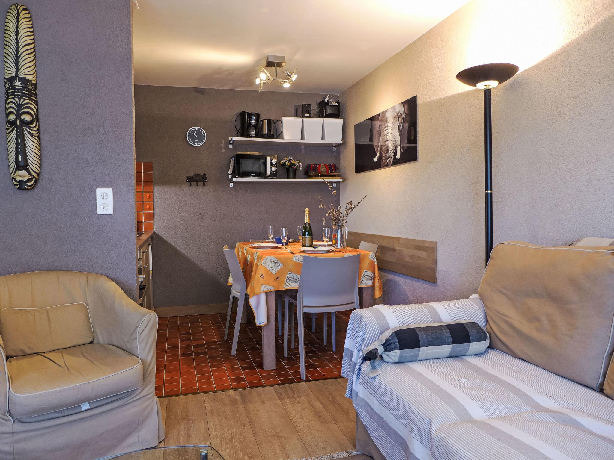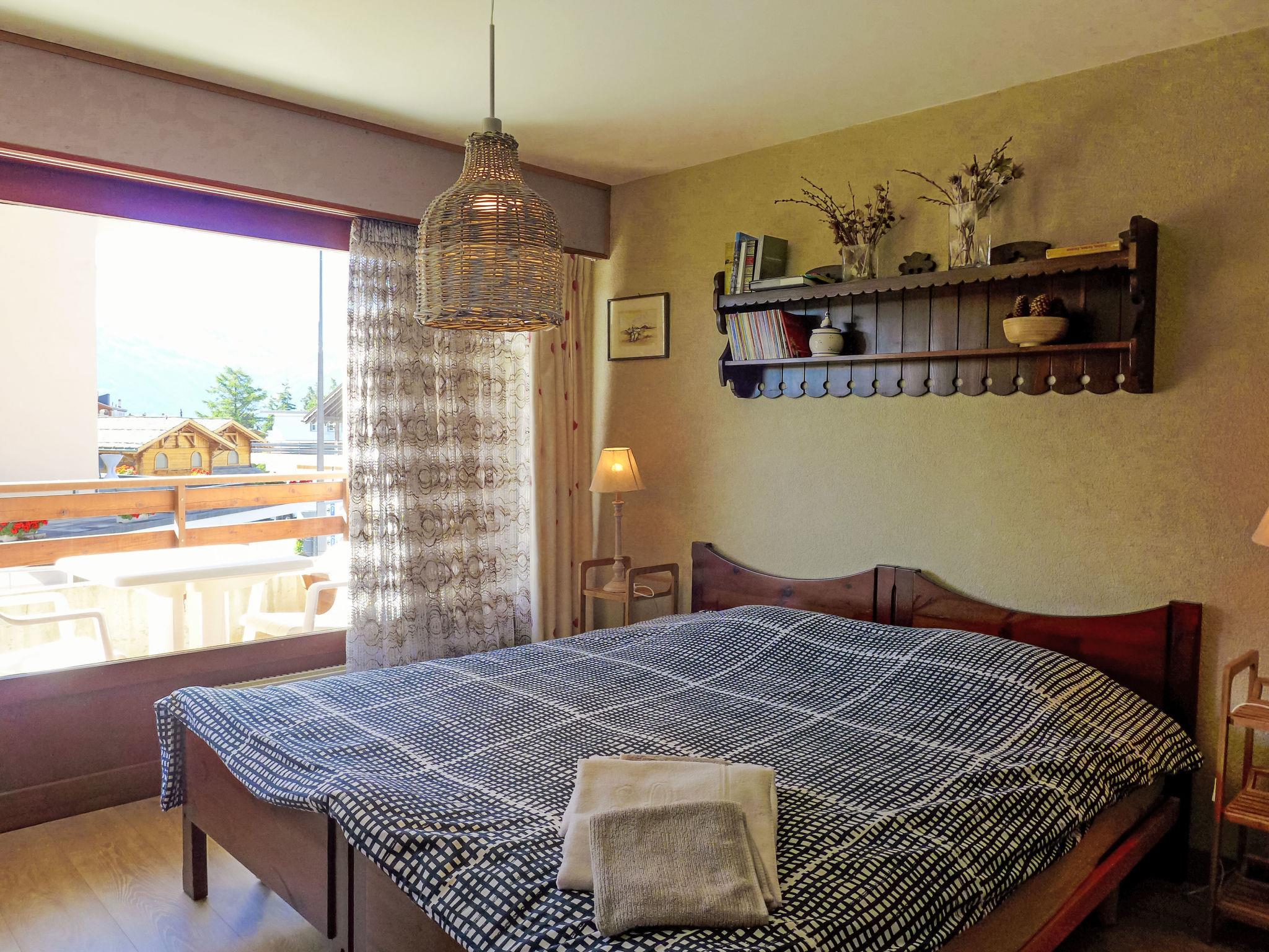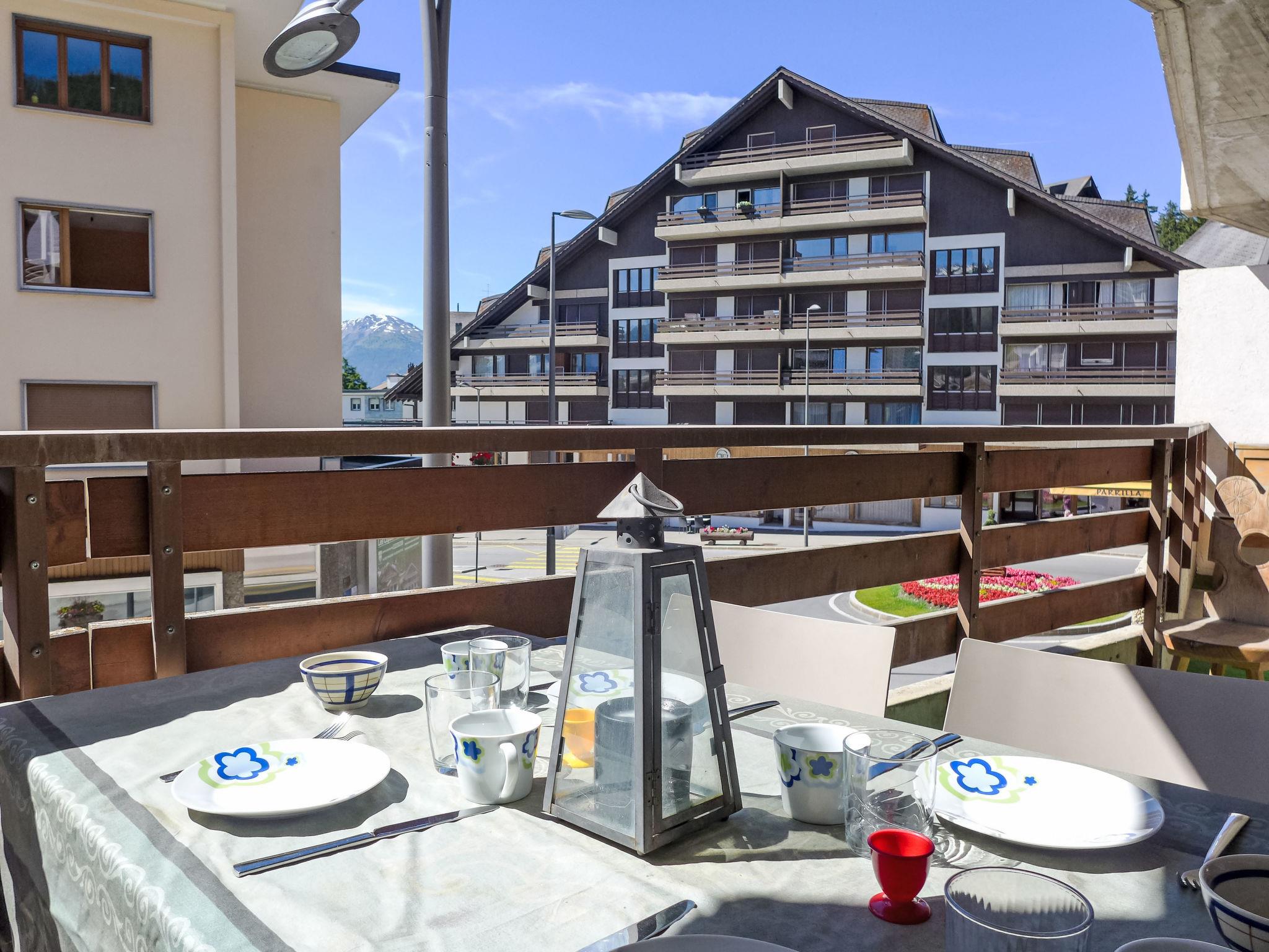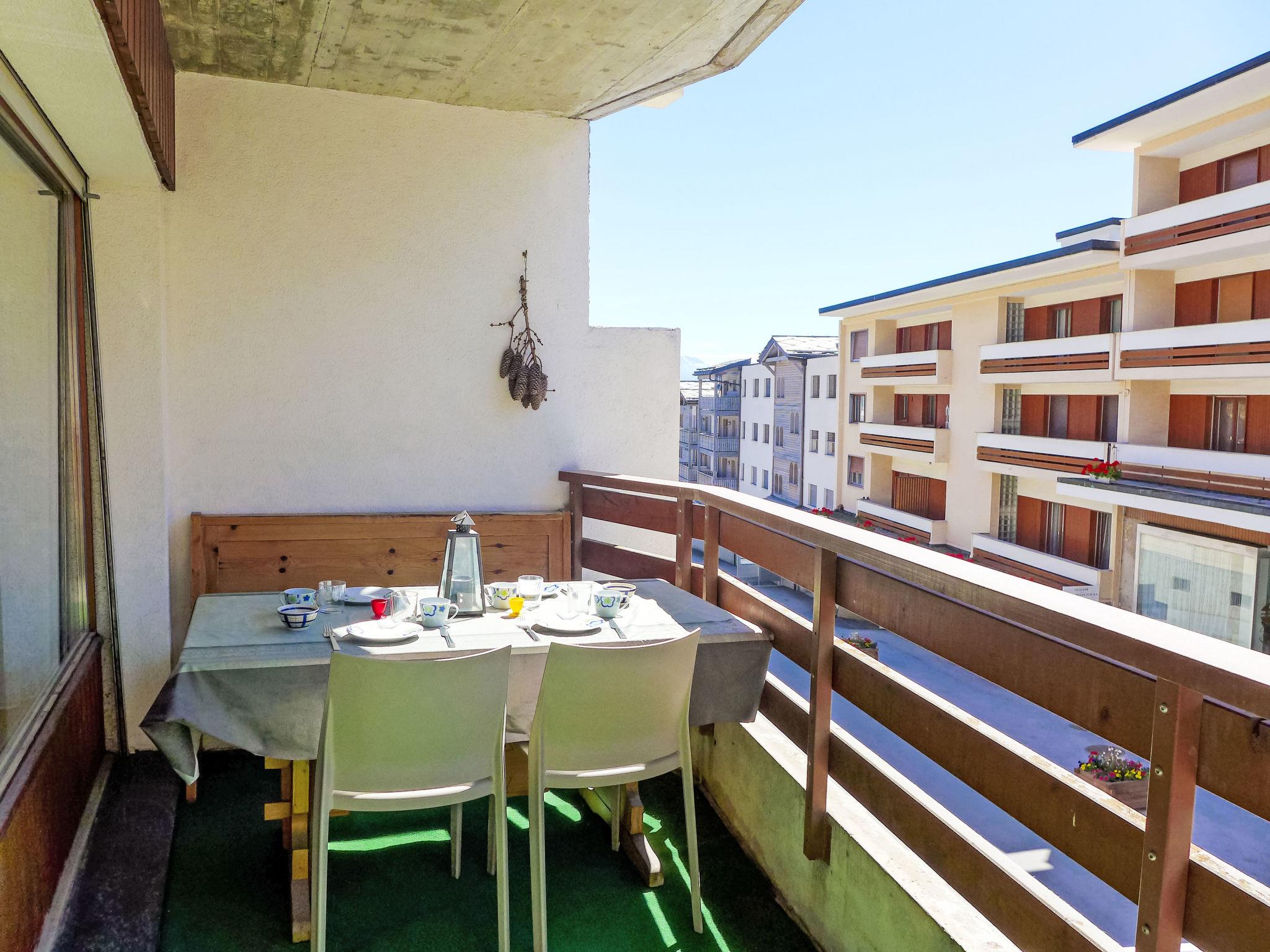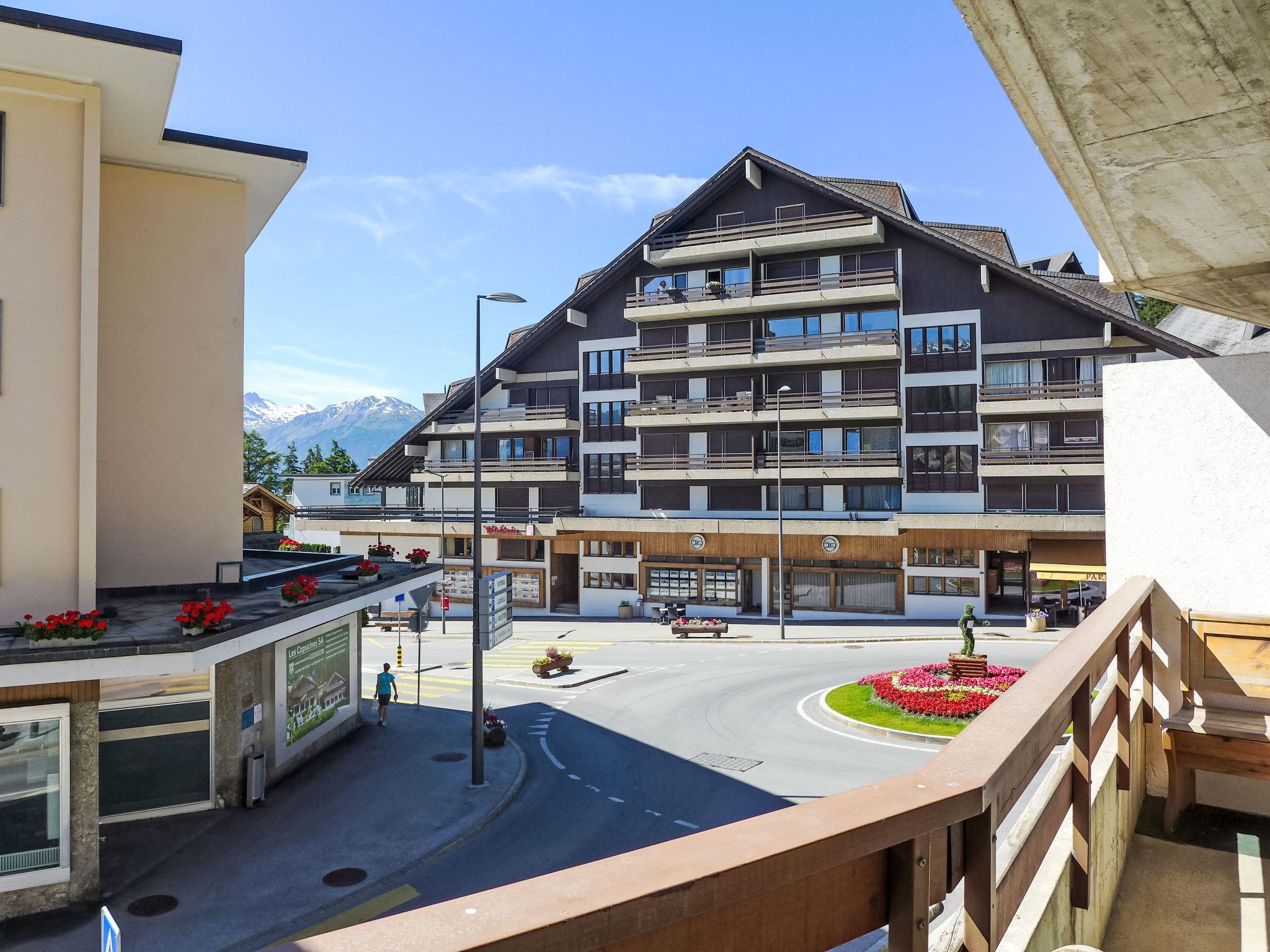 "Immeuble Rond-Point Apt. 11", 2-room apartment 46 m2 on 1st floor, south facing position. Living/dining room, south facing position with 1 double sofabed (160 cm, length 190 cm), dining nook and cable TV. Exit to the balcony. 1 room, south facing position with 2 beds (90 cm, length 200 cm). Exit to the balcony. Open kitchen (3 hot plates, oven, microwave, electric coffee machine, raclette grill, fondue Set (cheese)) with dining table. Bath/bidet/WC. Oil heating. Balcony 8 m2, south facing position. Balcony furniture. Side view of the mountains and the resort. Facilities: Internet (WiFi). Garage space n 11. Please note: non-smokers only.