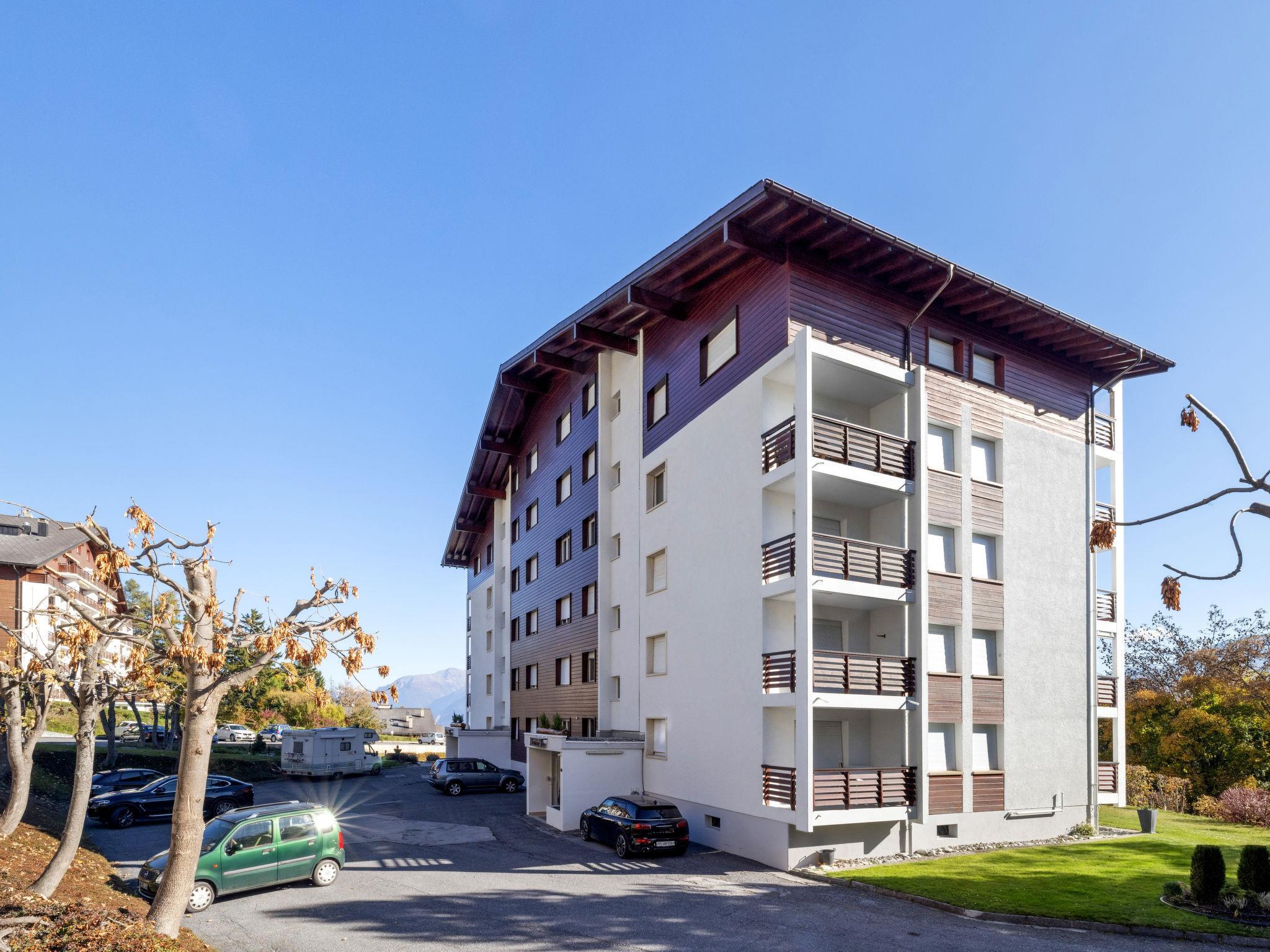 Residence "Armorial Est / Ouest", 5 storeys. In the district of Combaz, 1.5 km from the centre of Montana, in a quiet, sunny position, traffic calmed area, 2.1 km from the lake, 1.2 km from the skiing area, south facing position. In the complex: table tennis, lift, storage room for skis, central heating system, washing machine, tumble dryer (for shared use, extra). Parking (limited number of spaces) at the house. Shop 1.5 km, supermarket 1.5 km, restaurant 1.5 km, bakery 750 m, bus stop "Comba" 300 m, railway station "Funiculaire Montana Gare" 1.1 km, bathing lake "Moubra" 2.5 km. Golf course (18 hole) 3.5 km, tennis 2.5 km, sports centre 2.5 km, skisport facilities 1.2 km, cross country ski track 2.5 km, ice rink 1.9 km. Well-known lakes can easily be reached: Grenon 2.1 km, Etang Long 3.6 km. Please note: ski bus (free of charge). Additional accommodations can be booked.