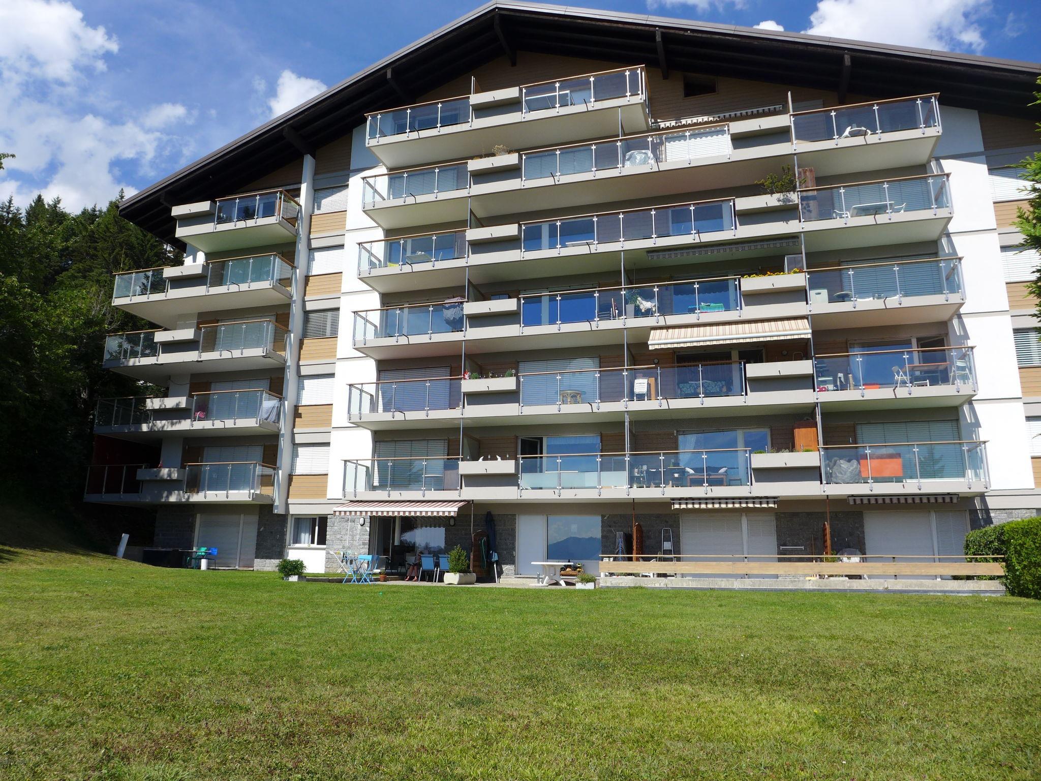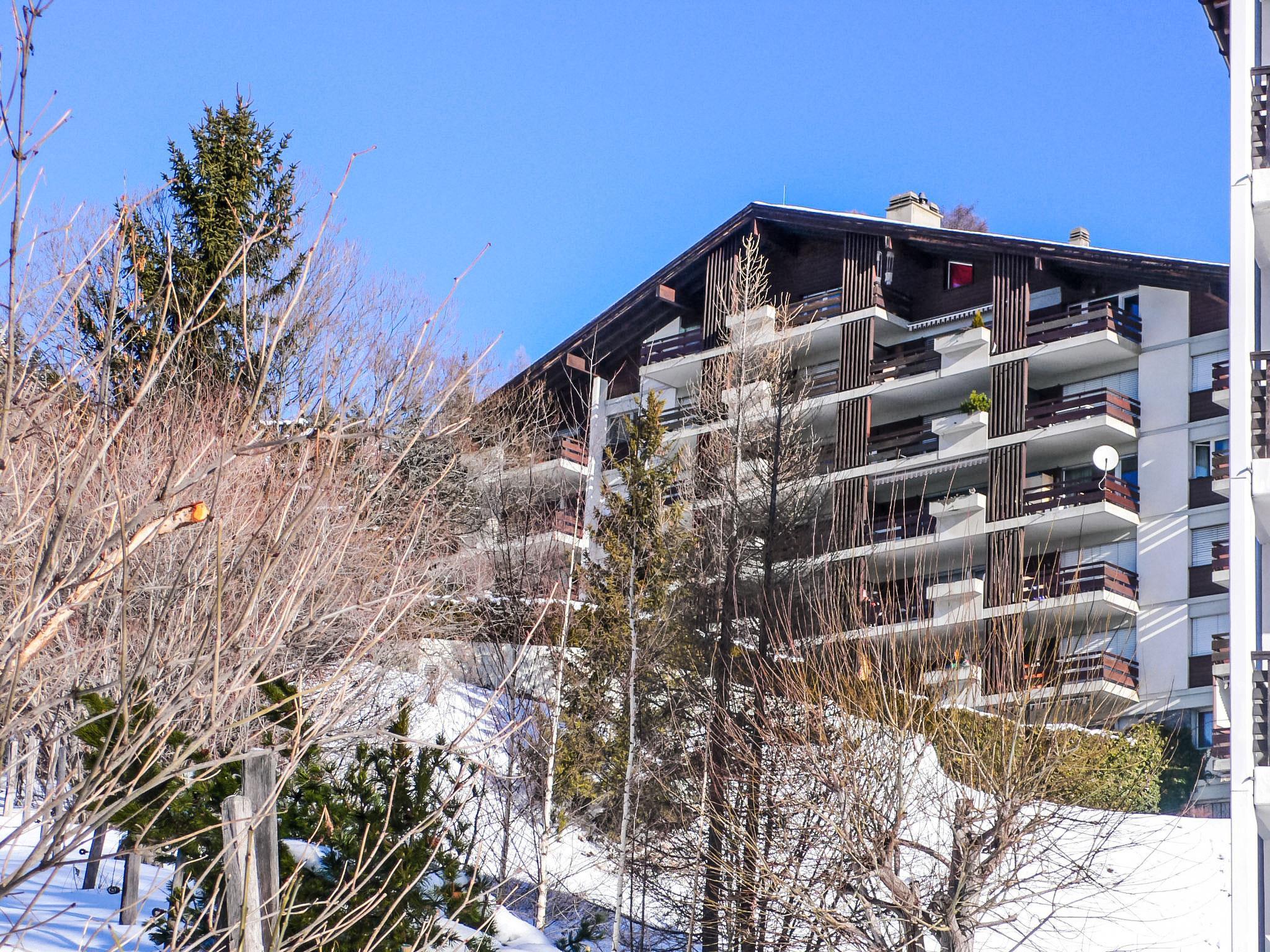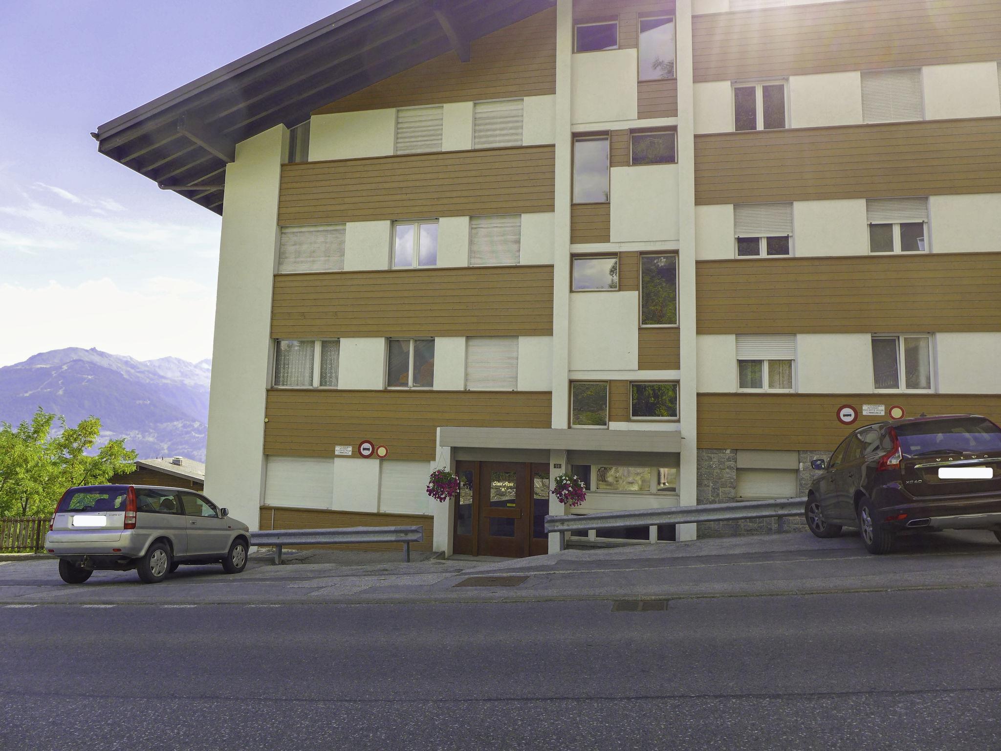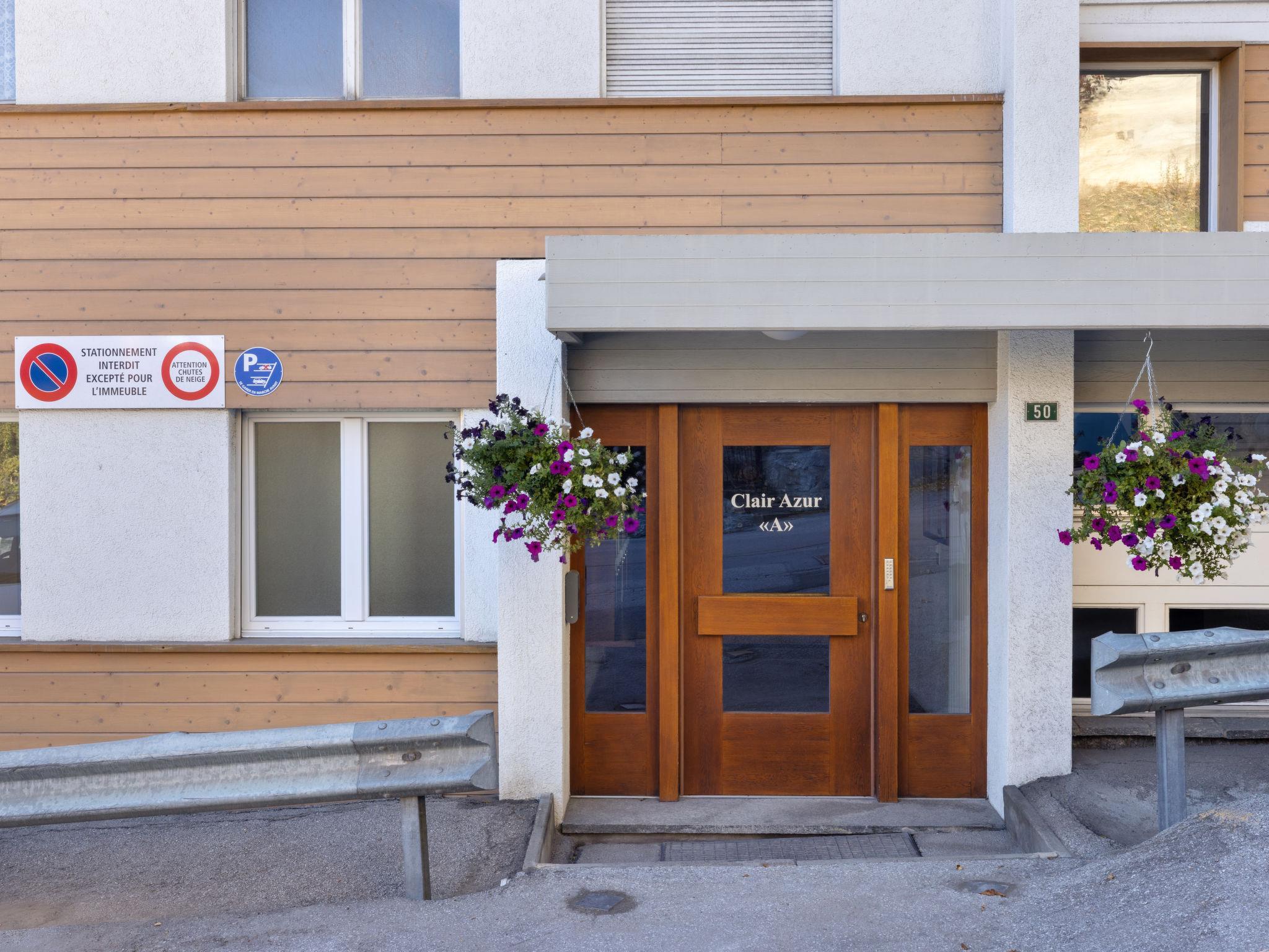 Apartment house "Clair-Azur A / B". Below Montana, in the district of la Combaz, 1.3 km from the centre of Montana, in a sunny position, 2 km from the lake, 1 km from the skiing area, south facing position. In the house: lift, storage room for skis, central heating system, washing machine, tumble dryer (for shared use, extra). Parking (limited number of spaces) at the house. Shop 1.2 km, supermarket 1.3 km, restaurant 1.2 km, bakery 500 m, bus stop "Comba" 200 m, railway station "Funiculaire Montana Gare" 850 m, bathing lake "Moubra" 2.2 km, lake Grenon 2 km. Golf course (18 hole) 3.3 km, skisport facilities 1 km, ice rink 1.6 km. Well-known lakes can easily be reached: Lac de la Moubra 2.2 km. Please note: ski bus (free of charge). Additional accommodations can be booked. The building is on a sloping site. The floors are considered as levels and are counted from the ground.