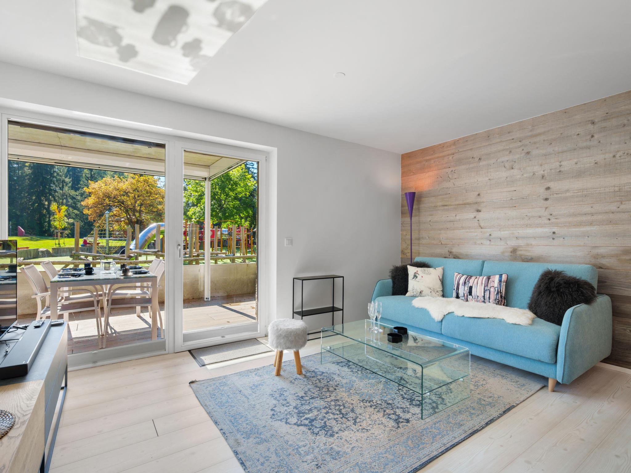 "Central Parc 2", 2-room apartment 69 m2, on the ground floor. Fully renovated in 2024, modern and tasteful furnishings: living/dining room with 1 double sofabed (160 cm, length 190 cm), cable TV. Exit to the terrace. 1 large room with 1 double bed (2 x 90 cm, length 200 cm), cable TV. Exit to the terrace. Open kitchen (oven, dishwasher, toaster, kettle, microwave, freezer, electric coffee machine, Capsules for coffee machine (Nespresso) extra, raclette grill, fondue Set (cheese)). Shower/WC. Large terrace, south facing position. Terrace furniture. View of the countryside. Facilities: washing machine, dryer, iron, hair dryer. Internet (WiFi, free). Garage space n 44 (1 car), height 200 cm, width 290 cm. Please note: suitable for families. Non-smokers only.