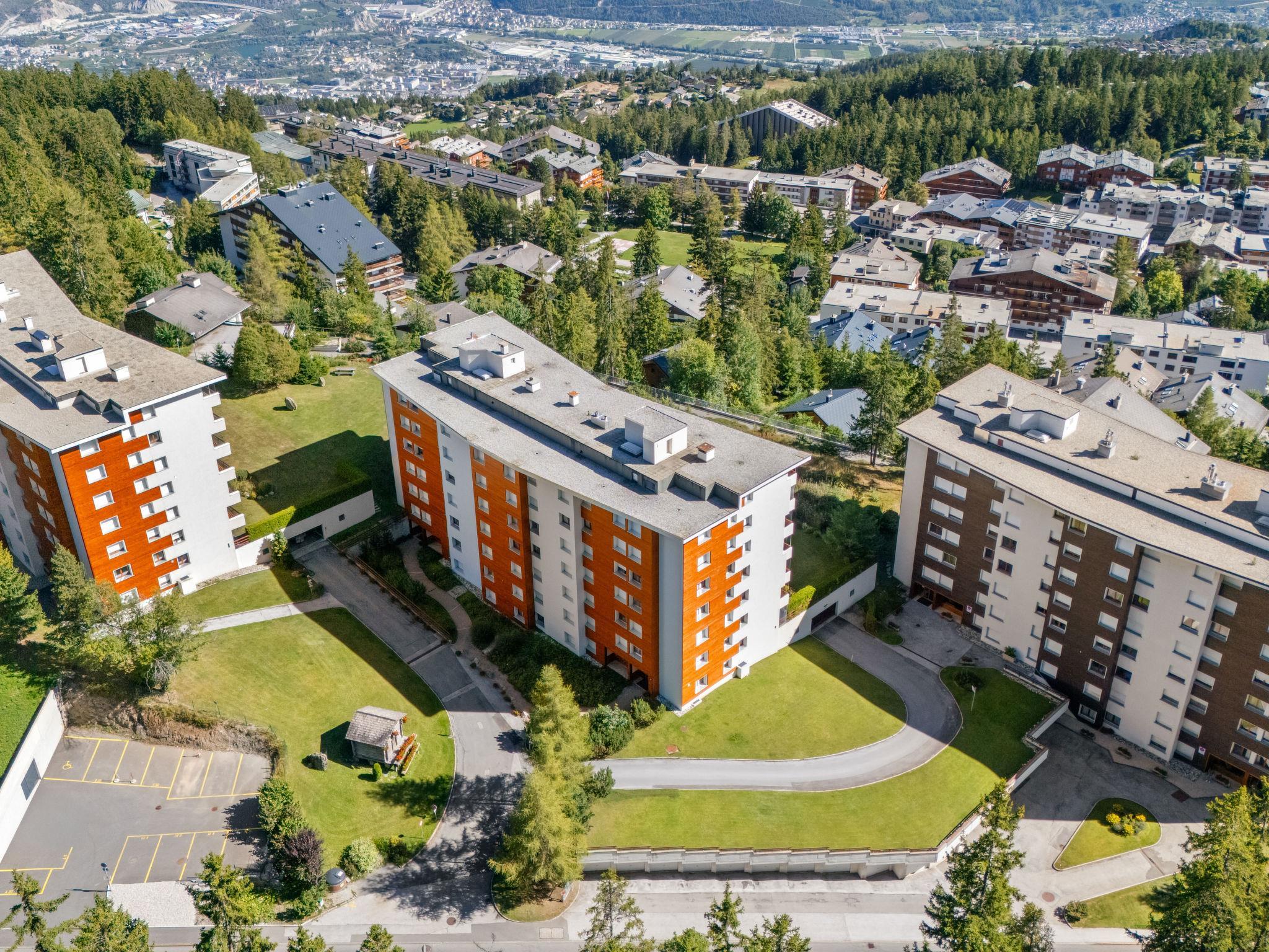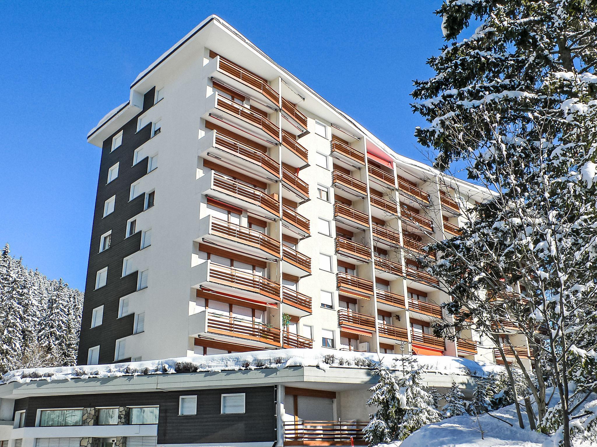 Residence "La Forêt ouest C". Above Montana, in a sunny position, 700 m from the lake, 500 m from the skiing area. In the house: lift, storage room for skis, central heating system, washing machine, tumble dryer (for shared use, extra). Parking (limited number of spaces), public car park at 500 m, extra. Shop 1 km, supermarket 1 km, restaurant 1 km, bakery 1.2 km, 8 minute walk to the centre, bus stop "Résidence Forêt" 10 m, railway station "Funiculaire Montana Gare" 1.3 km, lake Grenon 700 m. Golf course (18 hole) 1.9 km, skisport facilities 500 m, ice rink 1 km. Well-known lakes can easily be reached: Etang Long 2 km, Lac Moubra 2 km. Please note: ski bus (free of charge). In case of good snow conditions, the house is accessible on skis.
