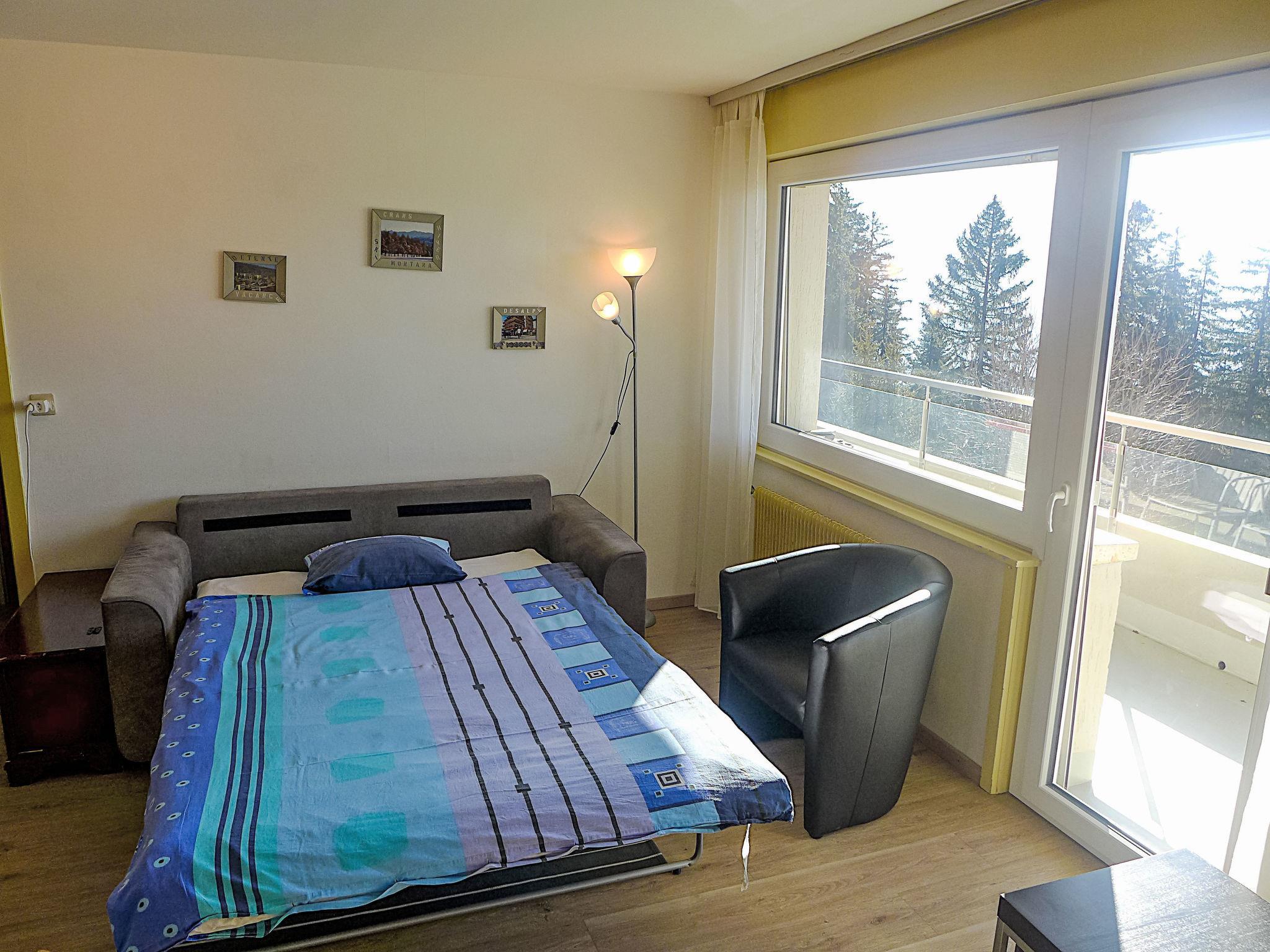 "Impéria 10", 3-room apartment 51 m2 on 2nd floor. Partly renovated in 2016, simple and comfortable furnishings: living/dining room with 1 sofabed (136 cm, length 193 cm), open-hearth fireplace, cable TV, hi-fi system and DVD. Exit to the balcony. 1 room with 2 beds (90 cm, length 200 cm). Exit to the balcony, south facing position. 1 small children's room 4 m2 with 1 x 2 bunk beds (90 cm, length 185 cm). Exit to the balcony, south facing position. Kitchen (oven, dishwasher, 4 ceramic glass hob hotplates, toaster, kettle, microwave, electric coffee machine, Capsules for coffee machine (Nespresso) extra, raclette grill, fondue Set (chinoise, cheese)). Bath/WC, shower/WC. Large balcony 14 m2, south facing position. Terrace furniture. Beautiful view of the lake and the mountains. Facilities: iron, hair dryer. Internet (WiFi, free). Please note: non-smokers only.