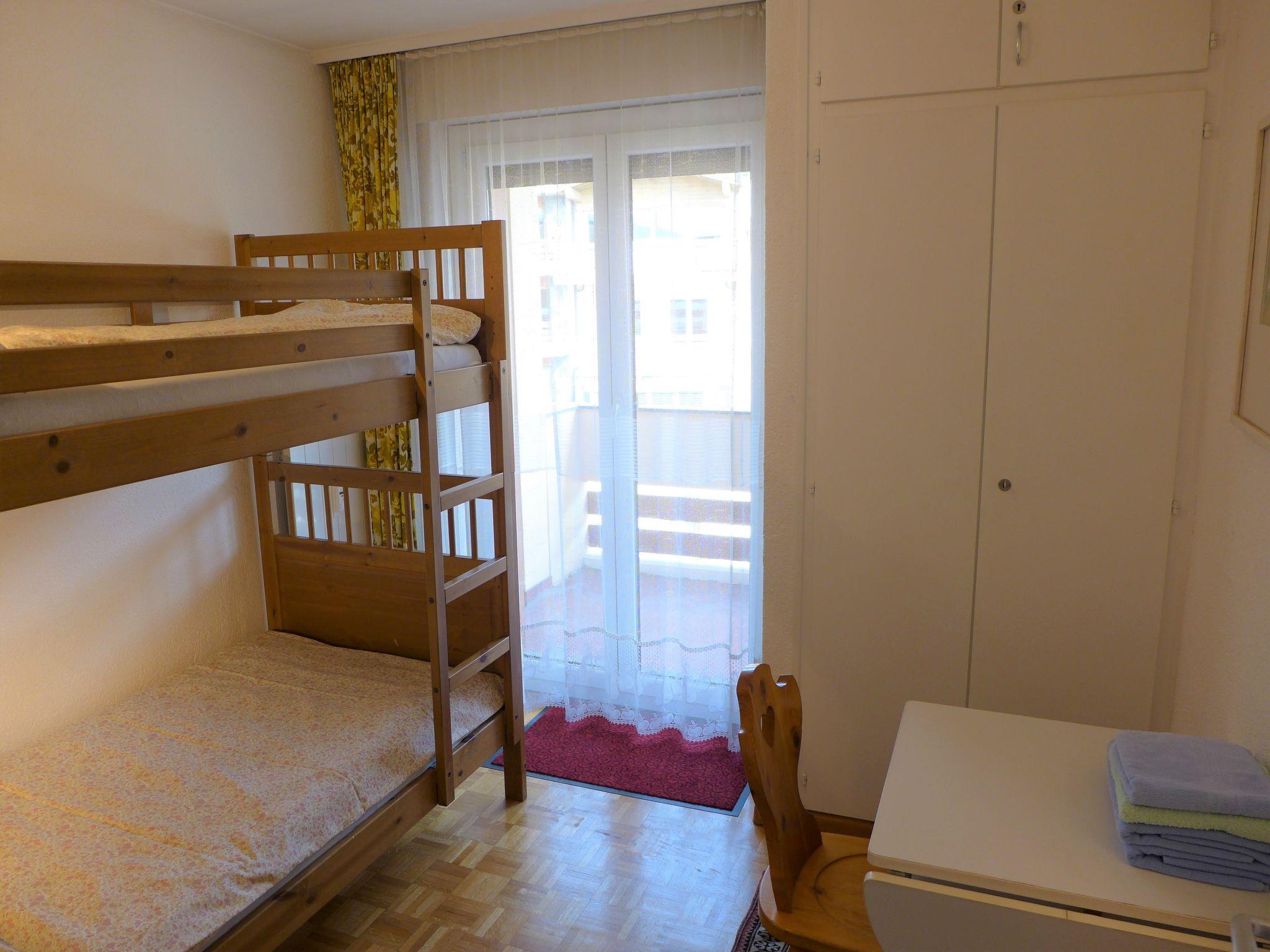 "Genziana B 20", 4-room apartment 80 m2 on 3rd floor. Living/dining room with cable TV, flat screen, DVD and DVD collection available. Exit to the balcony, south facing position. 1 room with 1 double bed (2 x 80 cm, length 200 cm). 1 room with 1 x 2 bunk beds (90 cm, length 200 cm). Exit to the balcony, north facing position. 1 room with 1 bed (90 cm, length 190 cm). Exit to the balcony, north facing position. Kitchen (3 hot plates, oven, dishwasher, toaster, kettle, electric coffee machine, Capsules for coffee machine (Nespresso) extra, raclette grill, fondue Set (cheese)) with hatch. Bath/WC. Balcony, south facing position. Balcony furniture. Marvellous, of the mountains and the valley. Facilities: iron, hair dryer. Internet (WiFi, free). Garage space n 20, height 210 cm, width 240 cm. Please note: non-smokers only.
