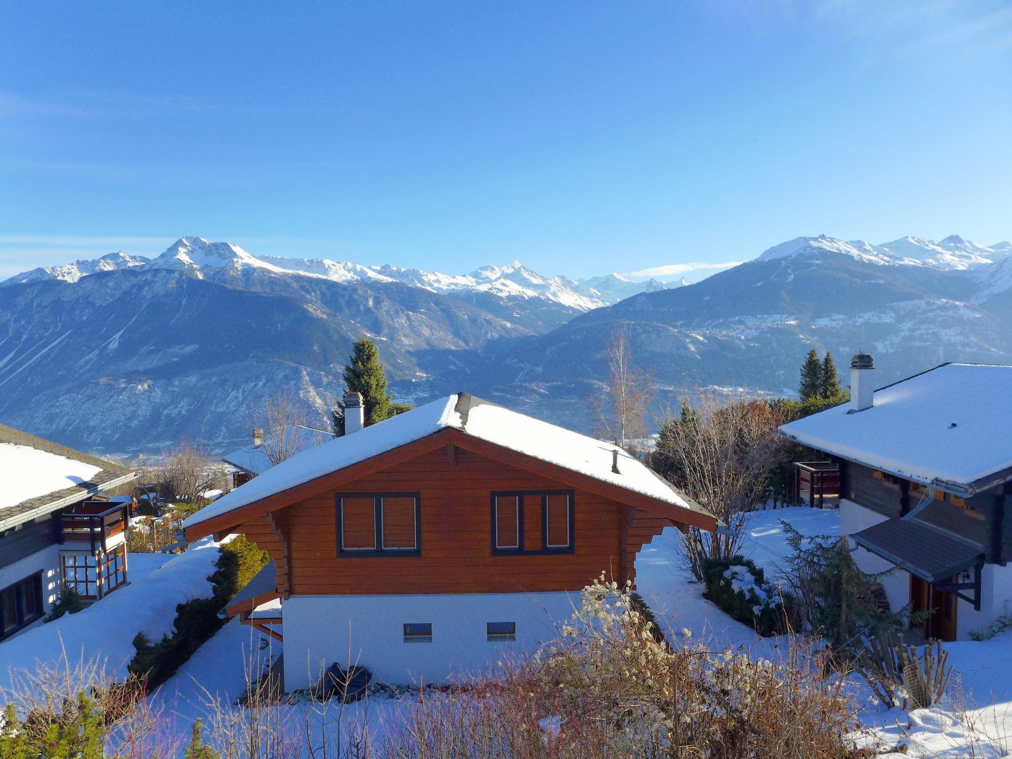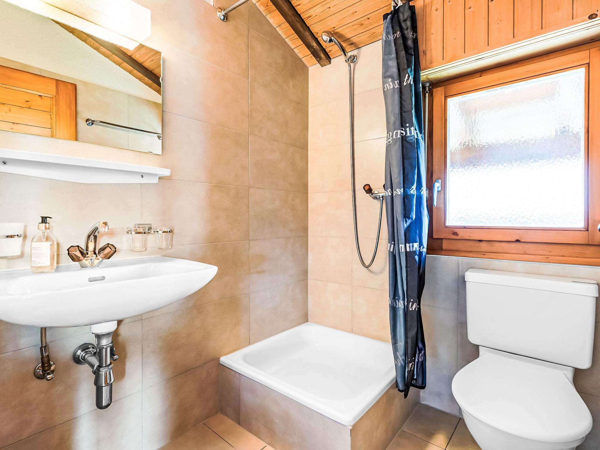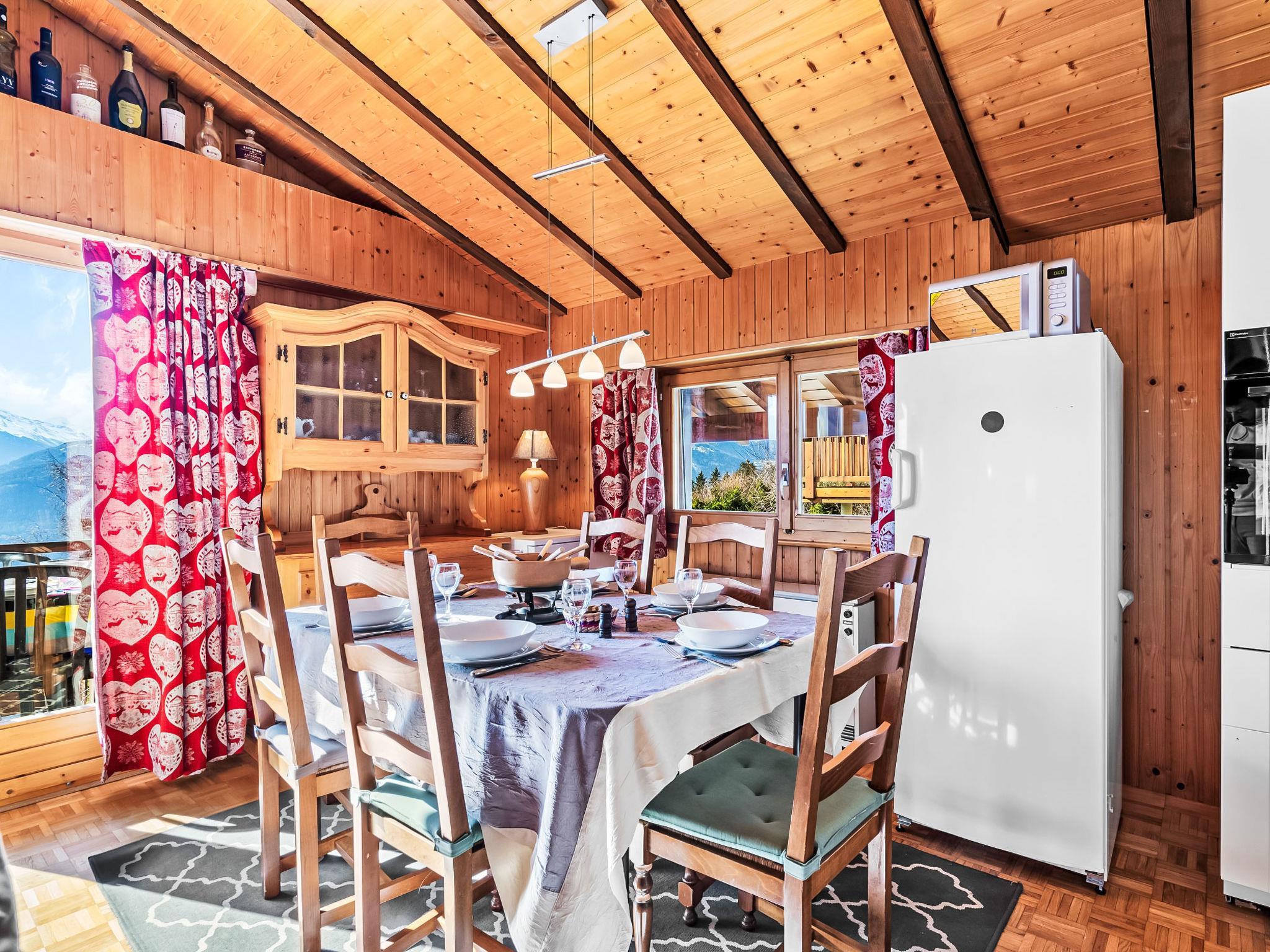 "Moulinettes 8", 4-room chalet 87 m2 on 2 levels. Living/dining room with sloping ceilings with open-hearth fireplace and cable TV (flat screen). Exit to the balcony, south facing position. Kitchenette (oven, dishwasher, 4 ceramic glass hob hotplates, toaster, kettle, microwave, freezer, electric coffee machine, Capsules for coffee machine (NESPRESSO) extra, fondue Set (cheese)). Shower/WC. On the lower ground floor: 1 room with 2 beds (90 cm, length 190 cm). Exit to the garden, south facing position. 1 room with 1 french bed (160 cm, length 200 cm). Exit to the garden, south facing position. 1 room with 2 beds (90 cm, length 190 cm). Bath/WC. Lawn. Terrace furniture, deck chairs (2). Beautiful view of the mountains and the valley. Facilities: washing machine, iron, hair dryer. Internet (WiFi, free). Please note: non-smokers only.