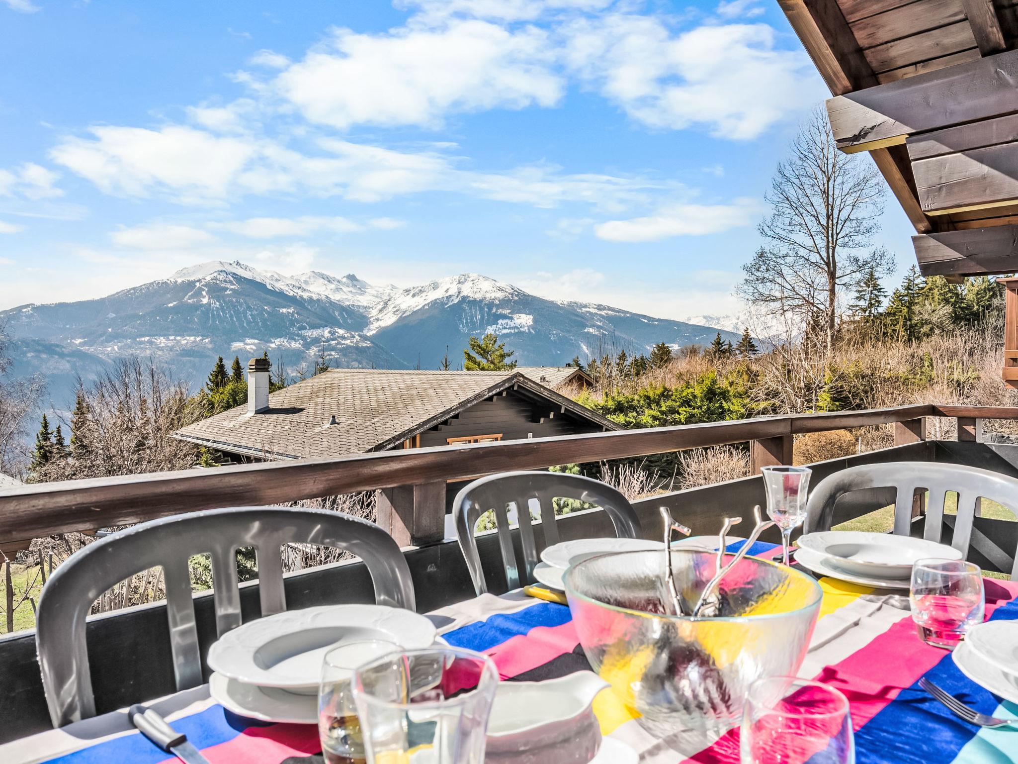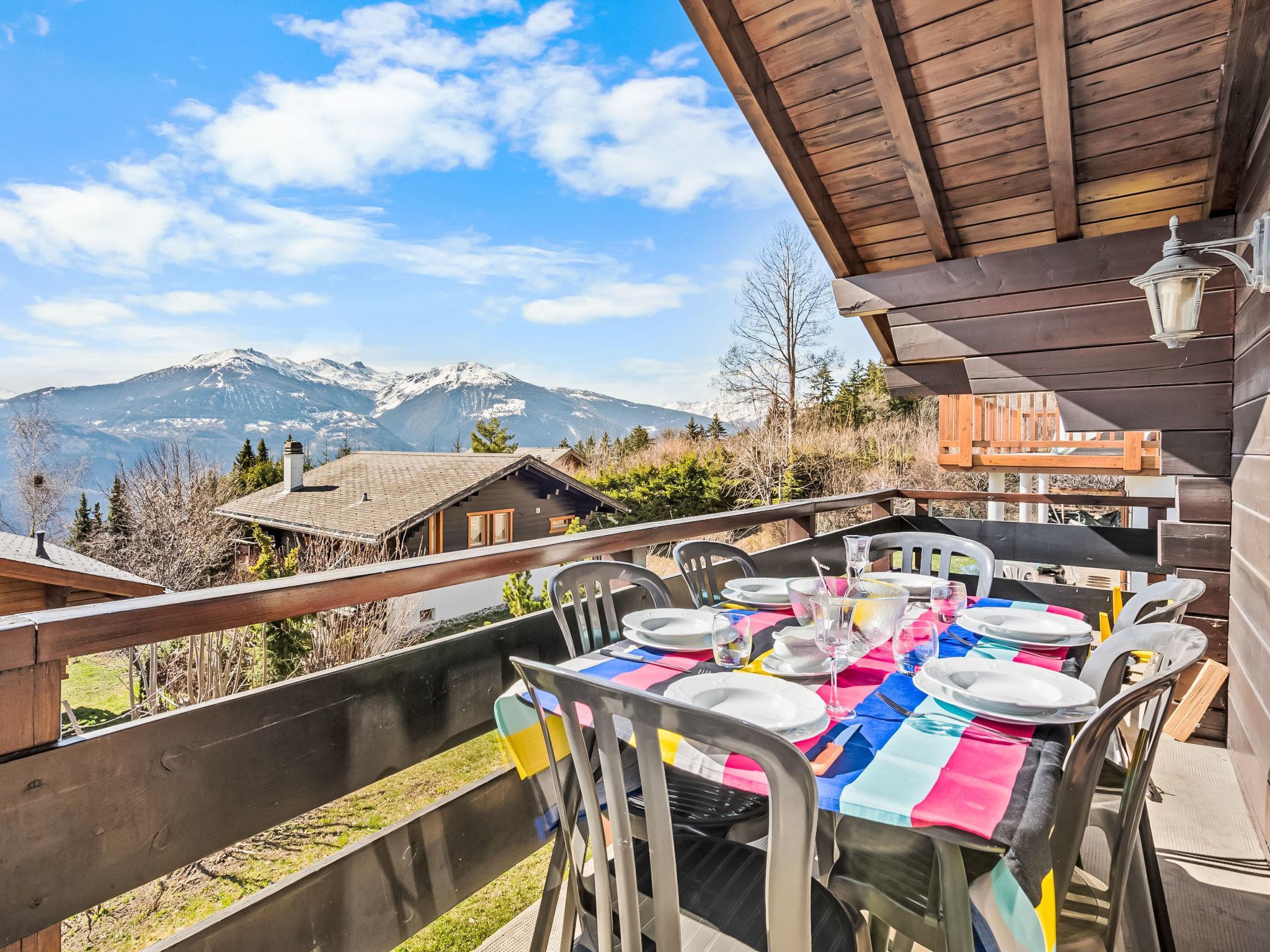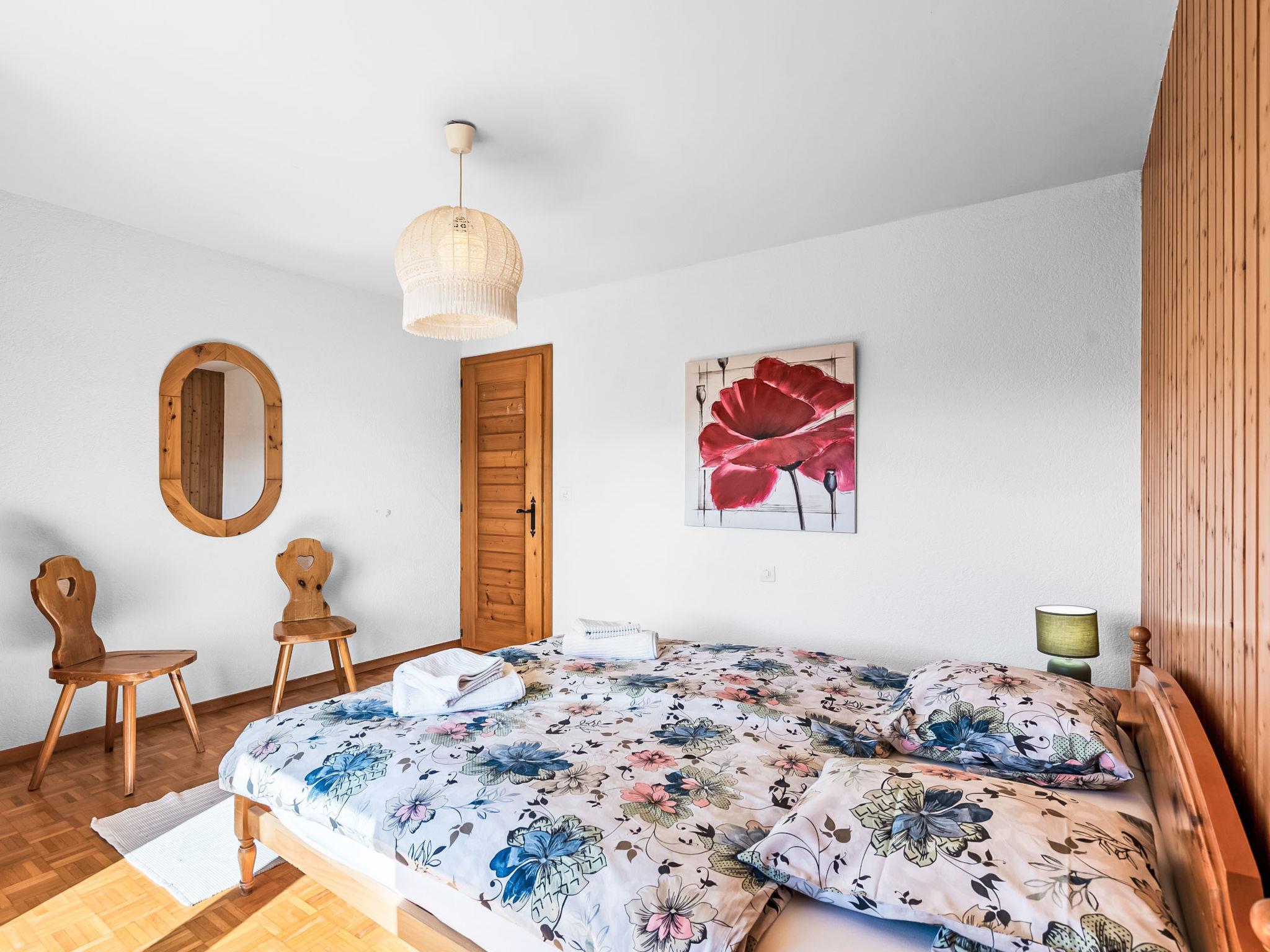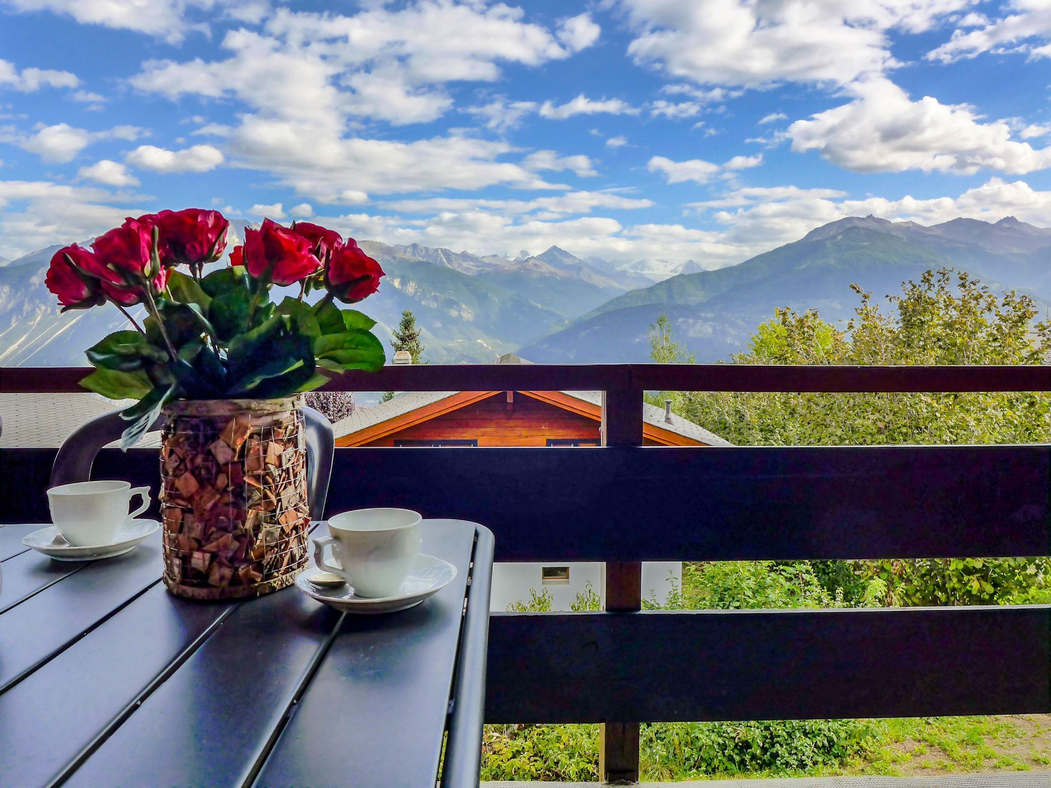 "Moulinettes 8", 4-room chalet 87 m2 on 2 levels. Living/dining room with sloping ceilings with open-hearth fireplace and cable TV (flat screen). Exit to the balcony, south facing position. Kitchenette (oven, dishwasher, 4 ceramic glass hob hotplates, toaster, kettle, microwave, freezer, electric coffee machine, Capsules for coffee machine (NESPRESSO) extra, fondue Set (cheese)). Shower/WC. On the lower ground floor: 1 room with 2 beds (90 cm, length 190 cm). Exit to the garden, south facing position. 1 room with 1 french bed (160 cm, length 200 cm). Exit to the garden, south facing position. 1 room with 2 beds (90 cm, length 190 cm). Bath/WC. Lawn. Terrace furniture, deck chairs (2). Beautiful view of the mountains and the valley. Facilities: washing machine, iron, hair dryer. Internet (WiFi, free). Please note: non-smokers only.