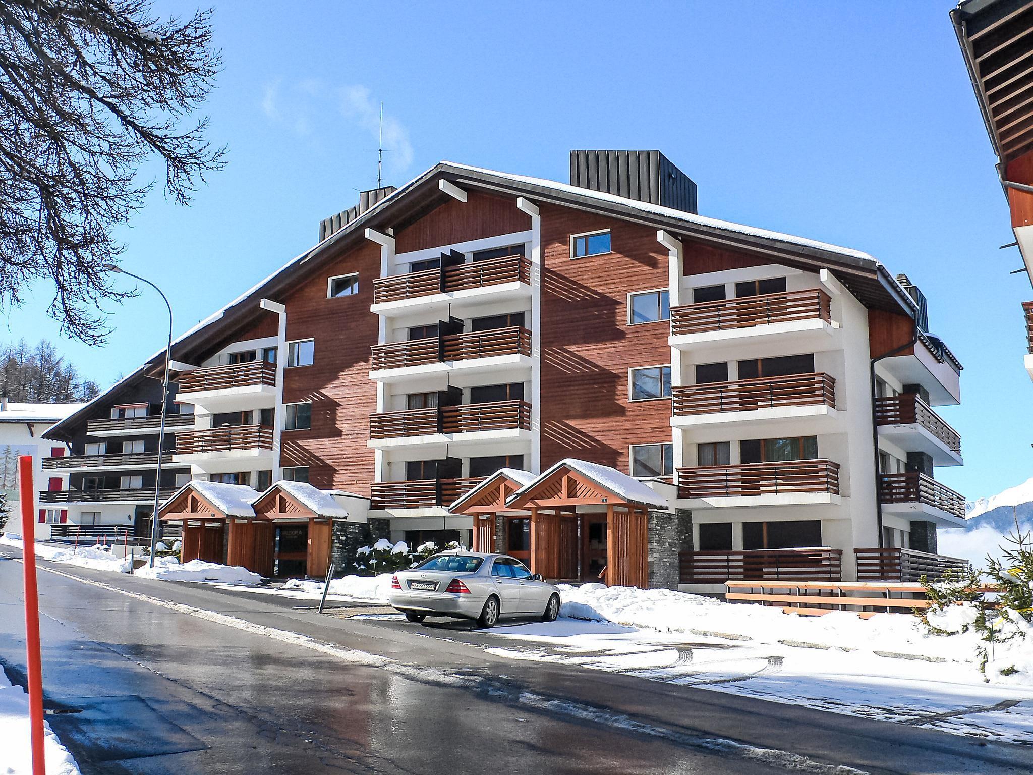 Large residence "Valdor". 1 km from the centre of Crans, 1 km from the lake, south-west facing position. For shared use: garden (not fenced) with lawn, swimming pool heated (seasonal availability: 01.Jul. - 15.Sep.) with internal staircase. Tennis (17.Jun. - 15.Sep.), table tennis. Private: lawn 130 m2. Terrace, garden furniture. In the complex: fitness room, lift, storage room for skis, central heating system, washing machine, tumble dryer (for shared use, extra). Parking (limited number of spaces) at the house. Shop 850 m, supermarket 1.3 km, restaurant 500 m, bakery 1.5 km, bus stop "Zier-Régent" 400 m, railway station "Funiculaire Montana Gare" 3 km, bathing lake "Moubra" 2.4 km, lake Etang Long 1 km. Golf course (18 hole) 900 m, skisport facilities 1 km, ski-kindergarten 600 m, cross country ski track 400 m. Well-known lakes can easily be reached: Lac Grenon 2.2 km. Please note: ski bus (free of charge). The keys‘ handover takes place by the agency Interhome in Montana, 3 km.