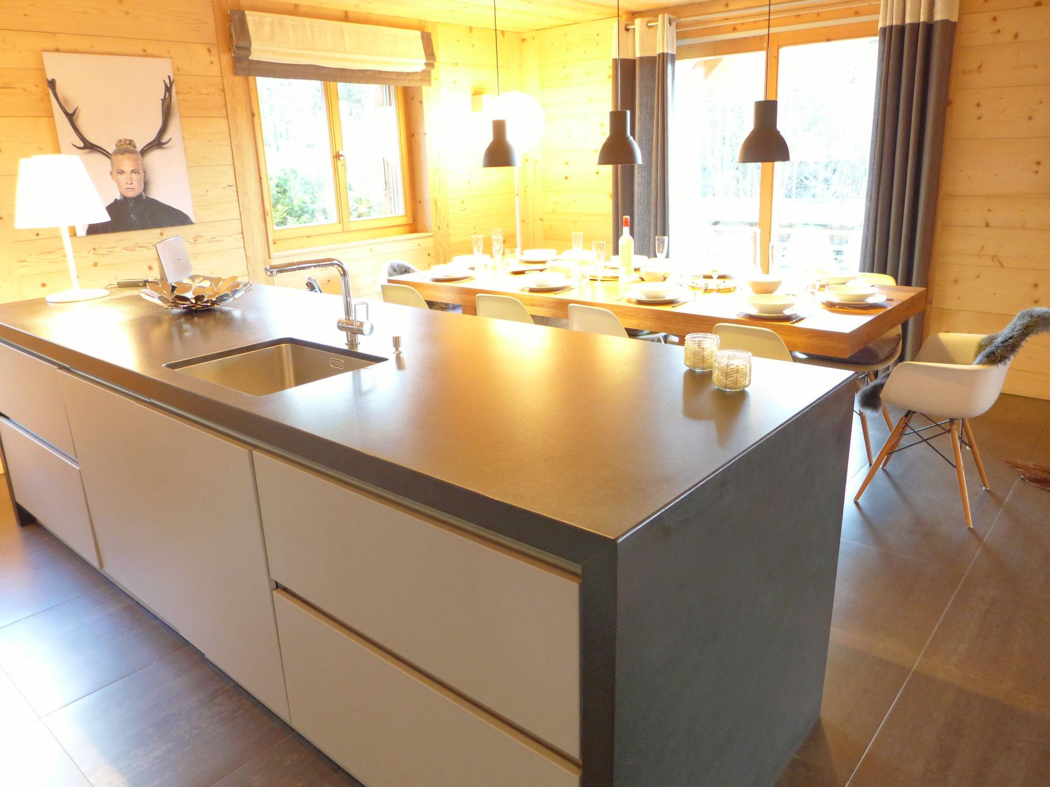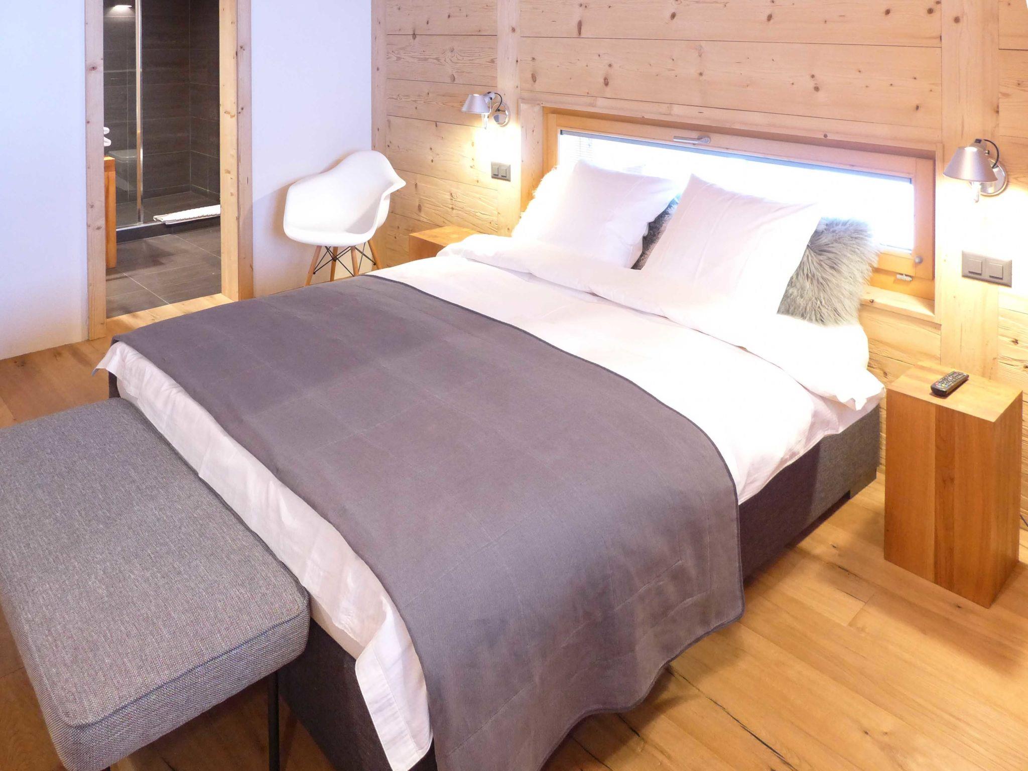 "Chalet Astoria", 6-room chalet 230 m2. Spacious, very comfortable and wooden furniture furnishings: living/dining room with open-hearth fireplace, separate WC, cable TV and electric shutters. Exit to the garden, south facing position. 1 room with Dressing room with 1 french bed (160 cm, length 200 cm), bath/WC and cable TV. Exit to the garden, west facing position. Large, open kitchen (oven, dishwasher, 4 induction hot plates, toaster, kettle, electric coffee machine, raclette grill, combination microwave, fondue Set (chinoise, cheese)). Gas heating, floor heating. Upper floor: 1 room with 1 french bed (160 cm, length 200 cm), shower/WC and cable TV. 2 rooms, each room with 1 double bed (180 cm, length 200 cm), bath/WC and cable TV. Exit to the balcony, south facing position. 1 room with 2 beds (80 cm, length 200 cm), shower/WC and cable TV. Terrace furniture, barbecue, deck chairs (2), box-room. Partial view of the mountains and the countryside. Facilities: iron, children's high chair, baby cot for up to 2 year olds, hair dryer. Internet (WiFi, free). Parking (1 car), garage (3 cars), height 210 cm, width 255 cm. Please note: non-smoking house. Delonghi automatic coffee machine: with coffee beans to grind. 2 baby cots and 2 high chairs. Travel cots without duvets, sheets and mattresses.