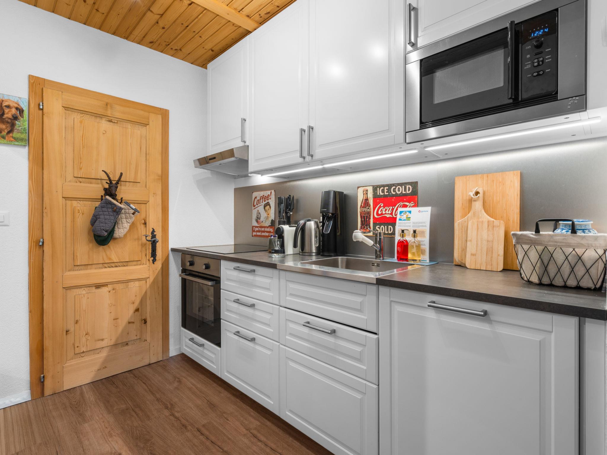 "Faucon 1B", 2-room apartment 65 m2, on the top floor, south-west facing position. Bright, with sloping ceilings, fully renovated, beautiful and tasteful furnishings: living/dining room with 1 double sofabed (2 x 80 cm, length 200 cm), open-hearth fireplace and dining table. Exit to the balcony. 1 large room with sloping ceilings with 1 french bed (160 cm, length 200 cm), cable TV and flat screen. Open kitchen (oven, dishwasher, 4 ceramic glass hob hotplates, kettle, microwave, electric coffee machine, Capsules for coffee machine (Nespresso) extra, raclette grill, fondue Set (chinoise, cheese)). Shower/WC. Balcony 10 m2, west facing position. Balcony furniture, deck chairs (1). Distant view of the mountains, the countryside and the forest. Facilities: iron, hair dryer. Internet (WiFi, free). Garage (1 car), height 190 cm, width 230 cm. Please note: non-smokers only.
