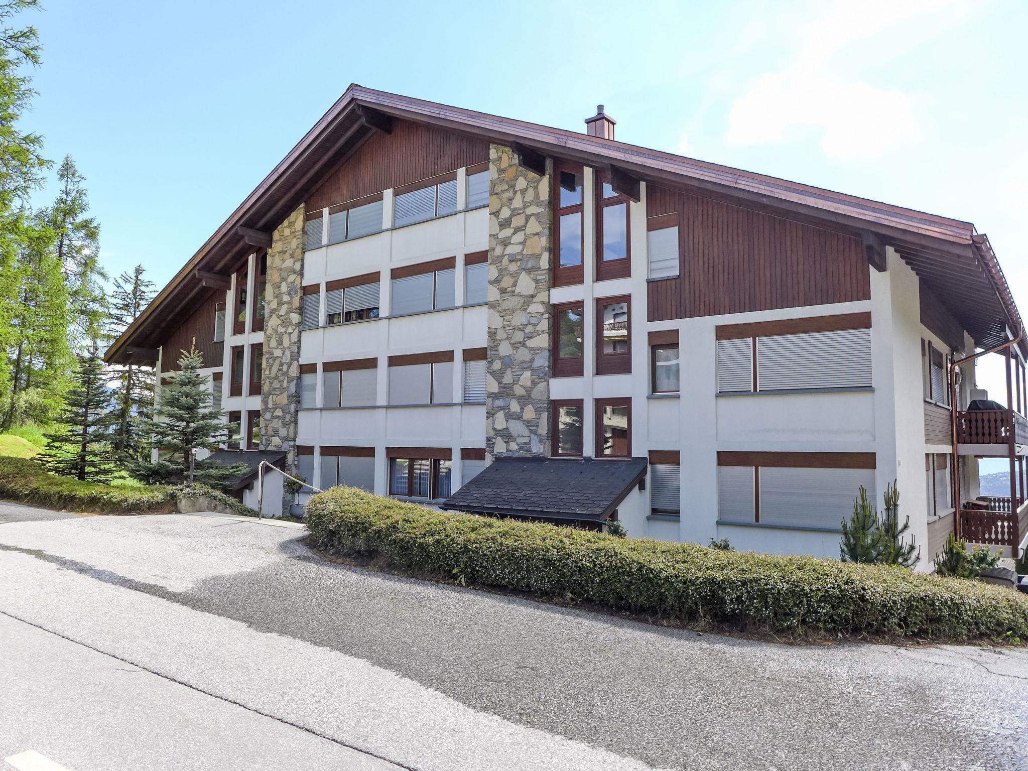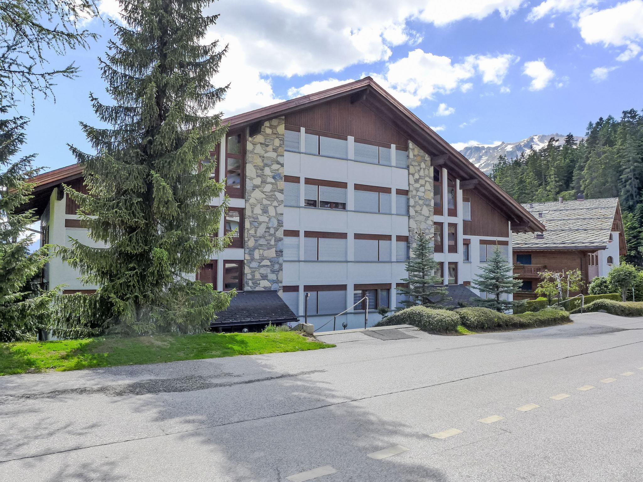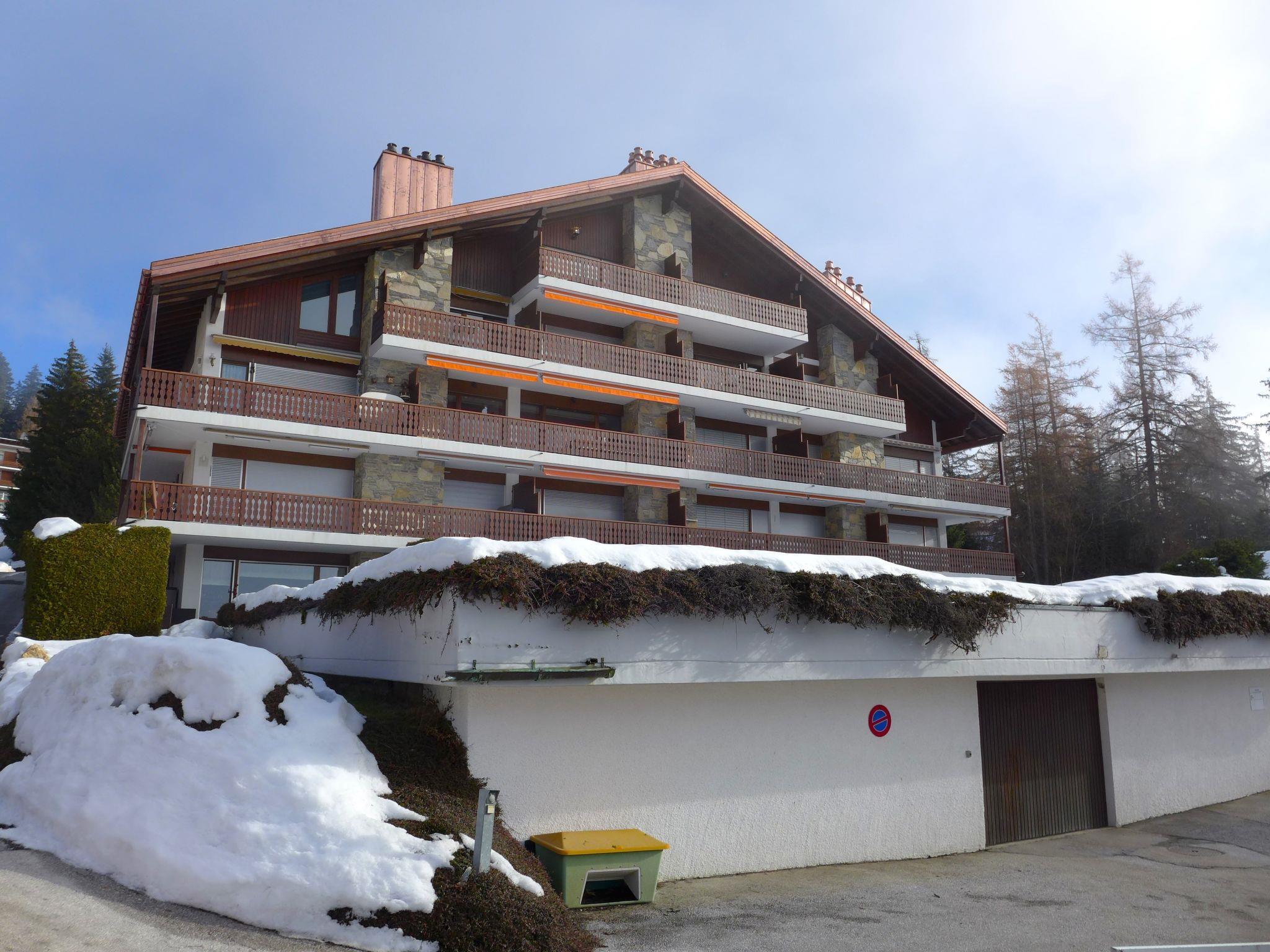 Residence "Robin des Bois". Below Crans, 1.5 km from the centre of Crans, in a quiet, sunny position, traffic calmed area, 2 km from the lake, south-west facing position. In the complex: lift, storage room for bicycles, storage room for skis, central heating system, washing machine (extra), tumble dryer (for shared use), drying room. Parking (limited number of spaces). Shop 1.6 km, supermarket 1.6 km, restaurant 750 m, bakery 1.6 km, bus stop "Essampilles" 150 m, railway station "Funiculaire Montana Gare" 3.5 km, bathing lake "Moubra" 3.1 km, lake Etang Long 2 km. Golf course (18 hole) 2 km, skisport facilities 1.6 km. Well-known lakes can easily be reached: Lac d'Icogne 300 m, Lac Grenon 2.1 km, Etang Long 2 km. Please note: ski bus (free of charge). The keys‘ handover takes place by the agency Interhome in Montana.