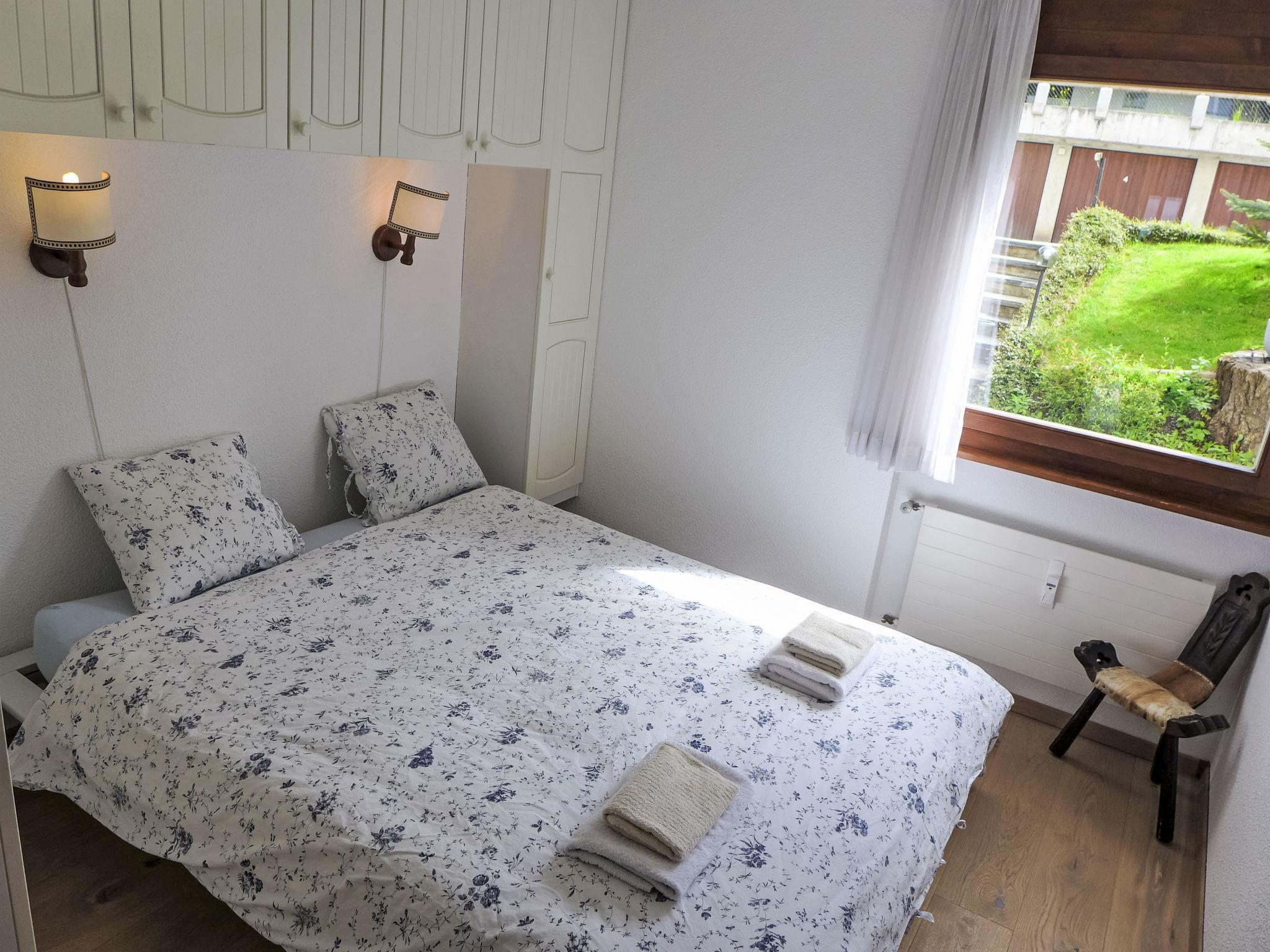 "Robin des Bois B 15", 3-room apartment 75 m2 on 1st floor. Beautiful and cosy furnishings: living/dining room with 1 sofabed (140 cm, length 190 cm), cable TV, flat screen and DVD. Exit to the balcony, south-west facing position. 1 room with 1 french bed (160 cm, length 200 cm). 1 room with 2 beds (90 cm, length 200 cm). Open kitchen (3 hot plates, oven, dishwasher, toaster, kettle, electric coffee machine, Capsules for coffee machine (Nespresso) extra, raclette grill, fondue Set (chinoise, cheese)) with bar. Bath/bidet/WC, shower/WC. Balcony 8 m2. Balcony furniture. Very beautiful view of the mountains, the countryside and the forest. Facilities: hair dryer. Internet (WiFi, free). Garage space n 15, height 198 cm, width 235 cm. Please note: non-smokers only.