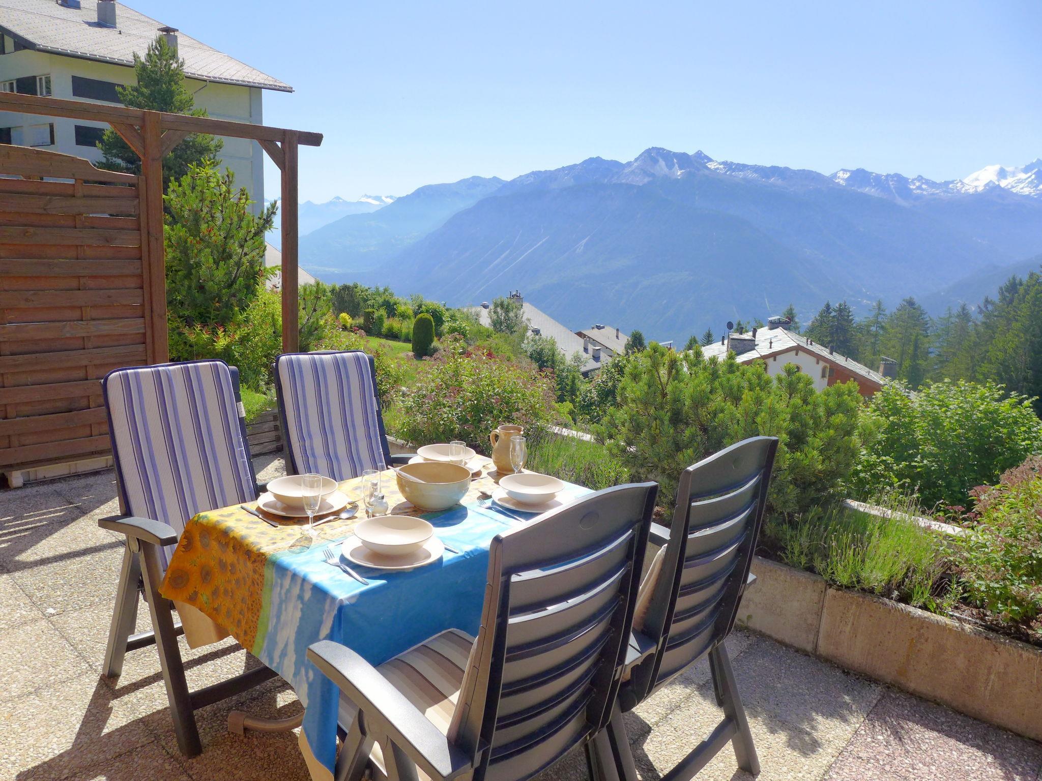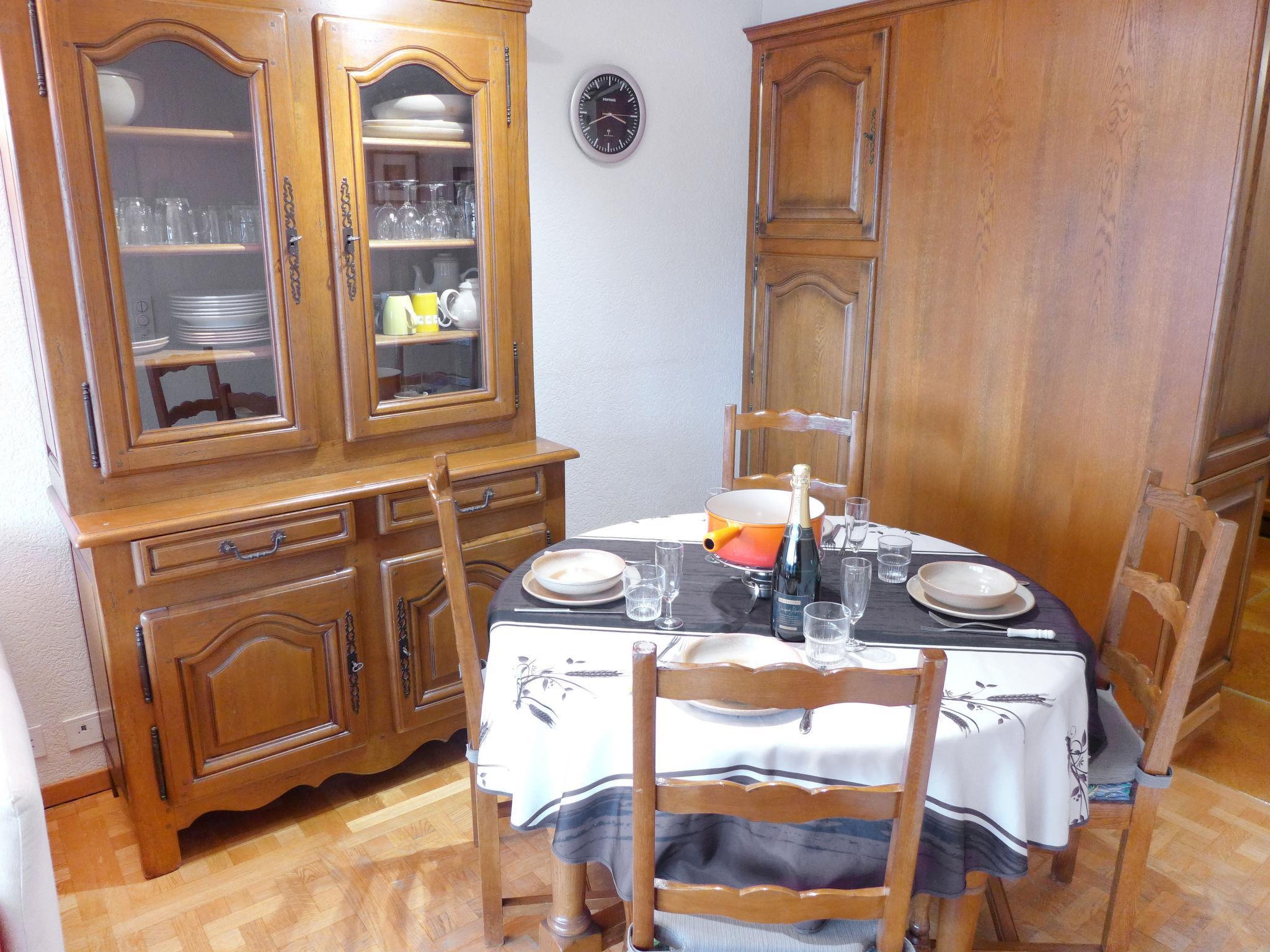"Terrasse Des Alpes 708", 2-room apartment 54 m2 on 2nd floor. Living/dining room with 1 double sofabed (160 cm, length 190 cm), cable TV (flat screen). 1 room, without window with 2 beds (85 cm, length 190 cm). Kitchenette (oven, dishwasher, 4 ceramic glass hob hotplates, toaster, kettle, microwave, freezer, electric coffee machine, Capsules for coffee machine (nespresso) extra, raclette grill, fondue Set (cheese)). Bath/WC, sep. WC, hydro massage bath. Terrace 16 m2, south facing position. Terrace furniture. Beautiful view of the mountains. Facilities: iron, hair dryer. Internet (WiFi, free). Garage space n 84, height 200 cm, width 220 cm. Please note: non-smokers only.