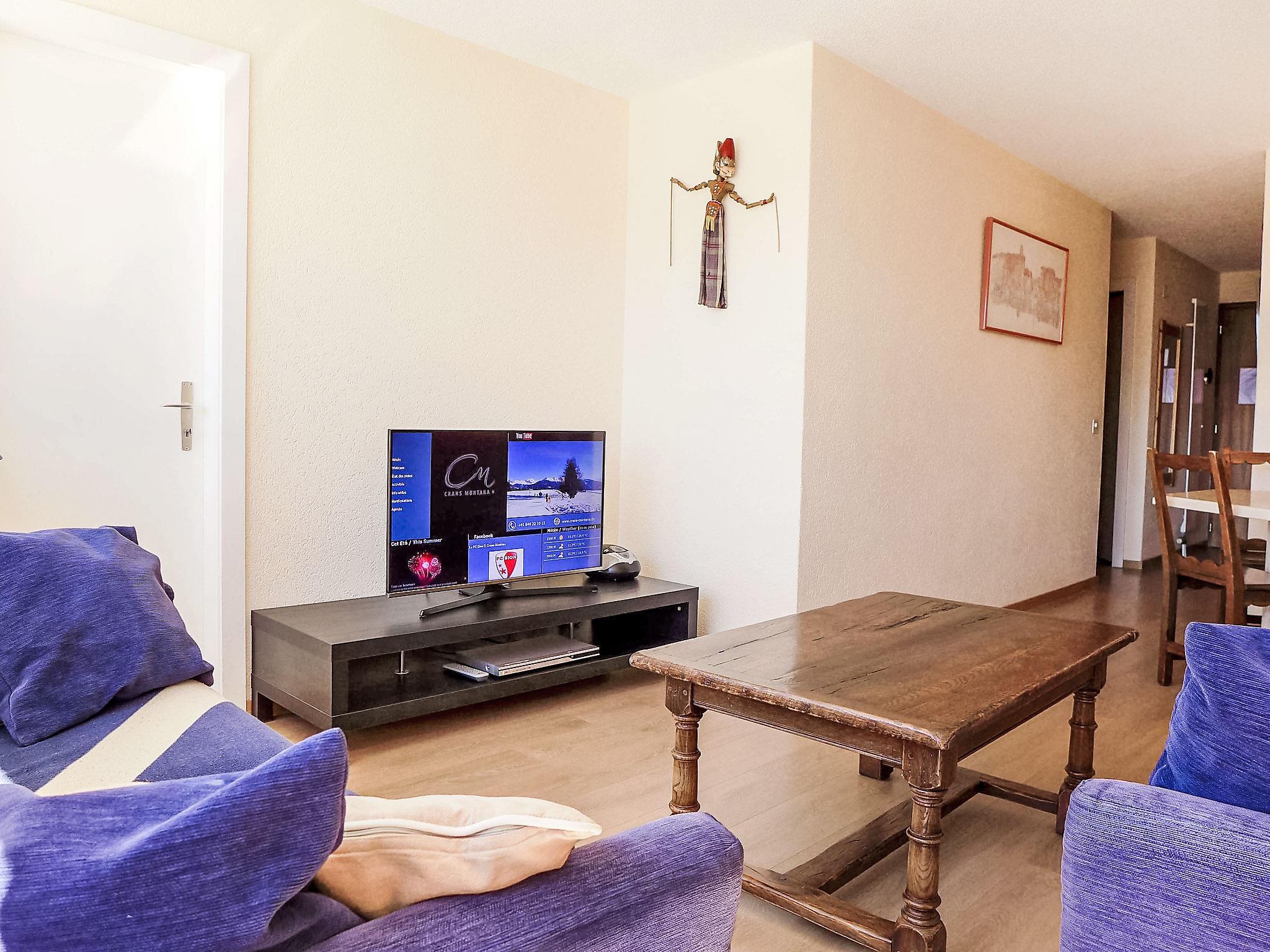 "Terrasse Des Alpes 814", 2-room apartment 53 m2 on 3rd floor. Living/dining room with 1 double sofabed (140 cm, length 190 cm), cable TV (flat screen), radio, CD-player and DVD. Exit to the terrace. 1 room with 1 double bed (2 x 80 cm, length 200 cm). Exit to the terrace. Kitchen (4 hot plates, oven, dishwasher, toaster, kettle, microwave, electric coffee machine, Capsules for coffee machine (Nespresso) extra, raclette grill, fondue Set (cheese)) with hatch. Bath/WC. Terrace 17 m2, south facing position. Terrace furniture, deck chairs (1). Beautiful view of the mountains and the valley. Facilities: iron, hair dryer. Internet (WiFi, free). Garage space n 72, height 200 cm, width 230 cm. Please note: non-smokers only. Maximum 1 pet/ dog allowed.