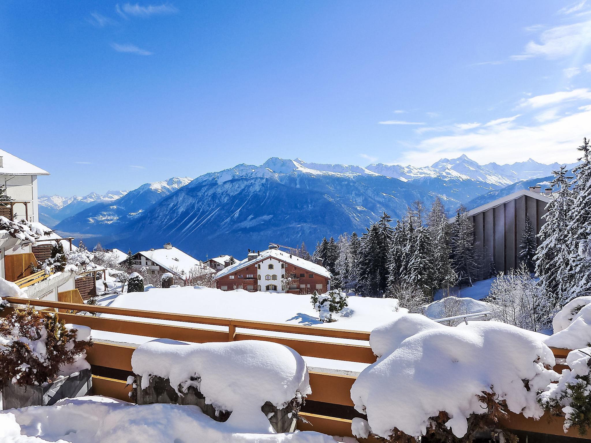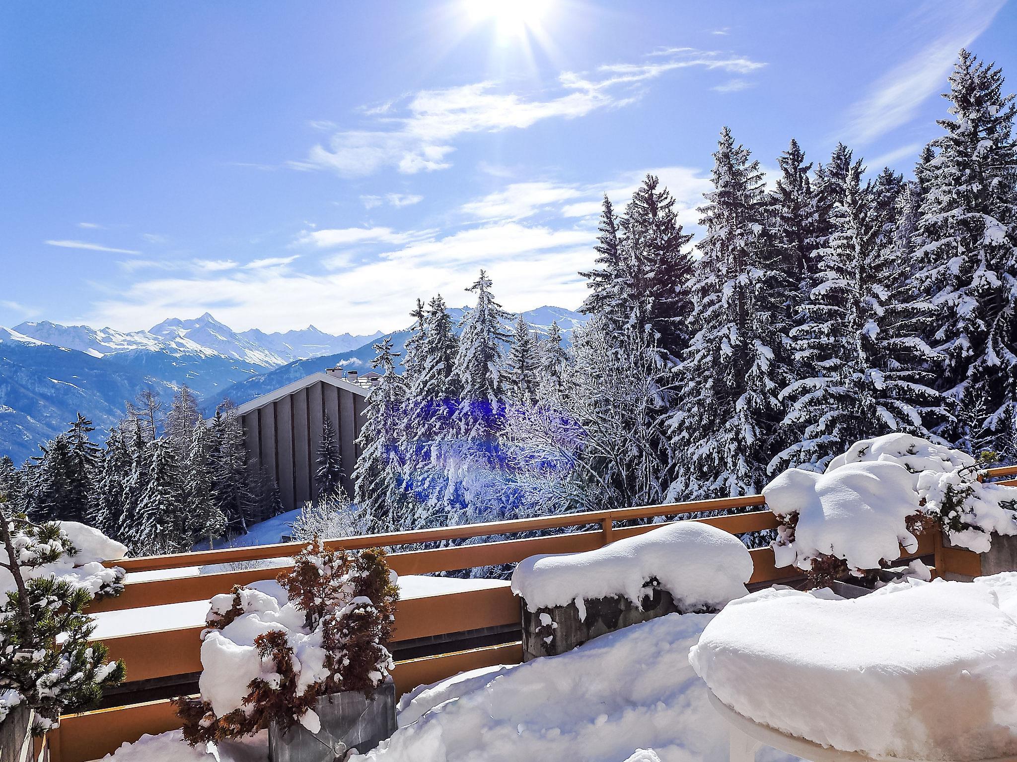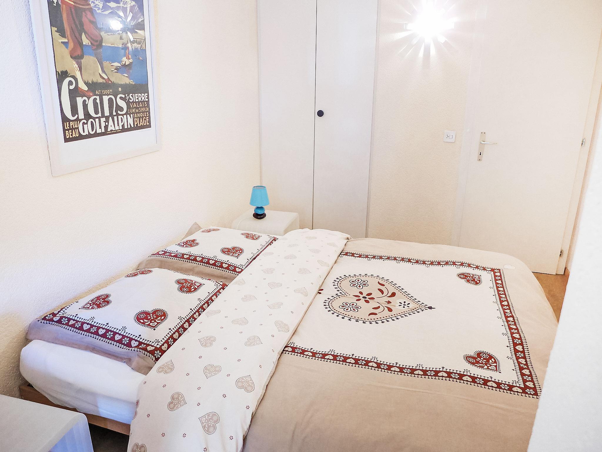 Swimming pool (approx. 26°) and hot tub (from 16 years old) closed in November. The building was built on a sloping plot. The floors are considered as levels numbered from the residence floor. In case of heavy snowfall, it is forbidden to clear snow from the terraces, according to the administrator's instructions. Hillside complex "Terrasse des Alpes". In the district of Marigny 400 m from the centre of Montana, in a sunny position, 1.5 km from the lake, 1.5 km from the skiing area, south-west facing position. For shared use: indoor pool heated (12 x 5 m, seasonal availability: 01.Jan. - 31.Oct. and 16.Dec. - 31.Dec. pool opening hours: 08:00-20:00). Hot tub, terrace. In the house: lounge, lift, storage room for skis, central heating system, washing machine, tumble dryer (for shared use, extra). Shop, supermarket, restaurant, bar, café 400 m, 5 minute walk to the centre, bus stop "Montana Poste" 300 m, railway station "Funiculaire Montana Gare" 450 m, bathing lake "Moubra" 1.5 km. Golf course (18 hole) 3.8 km, skisport facilities 1.5 km. Please note: ski bus (free of charge).