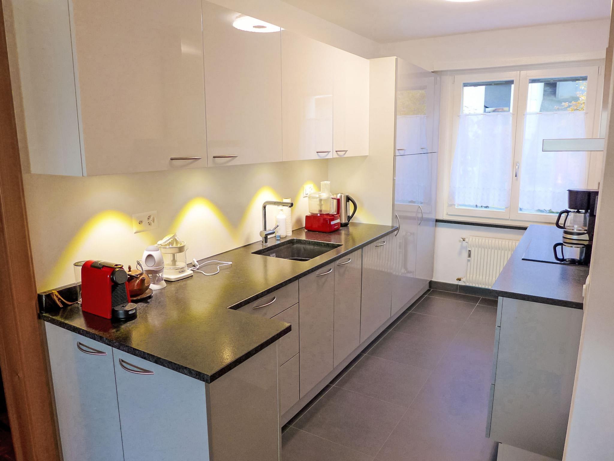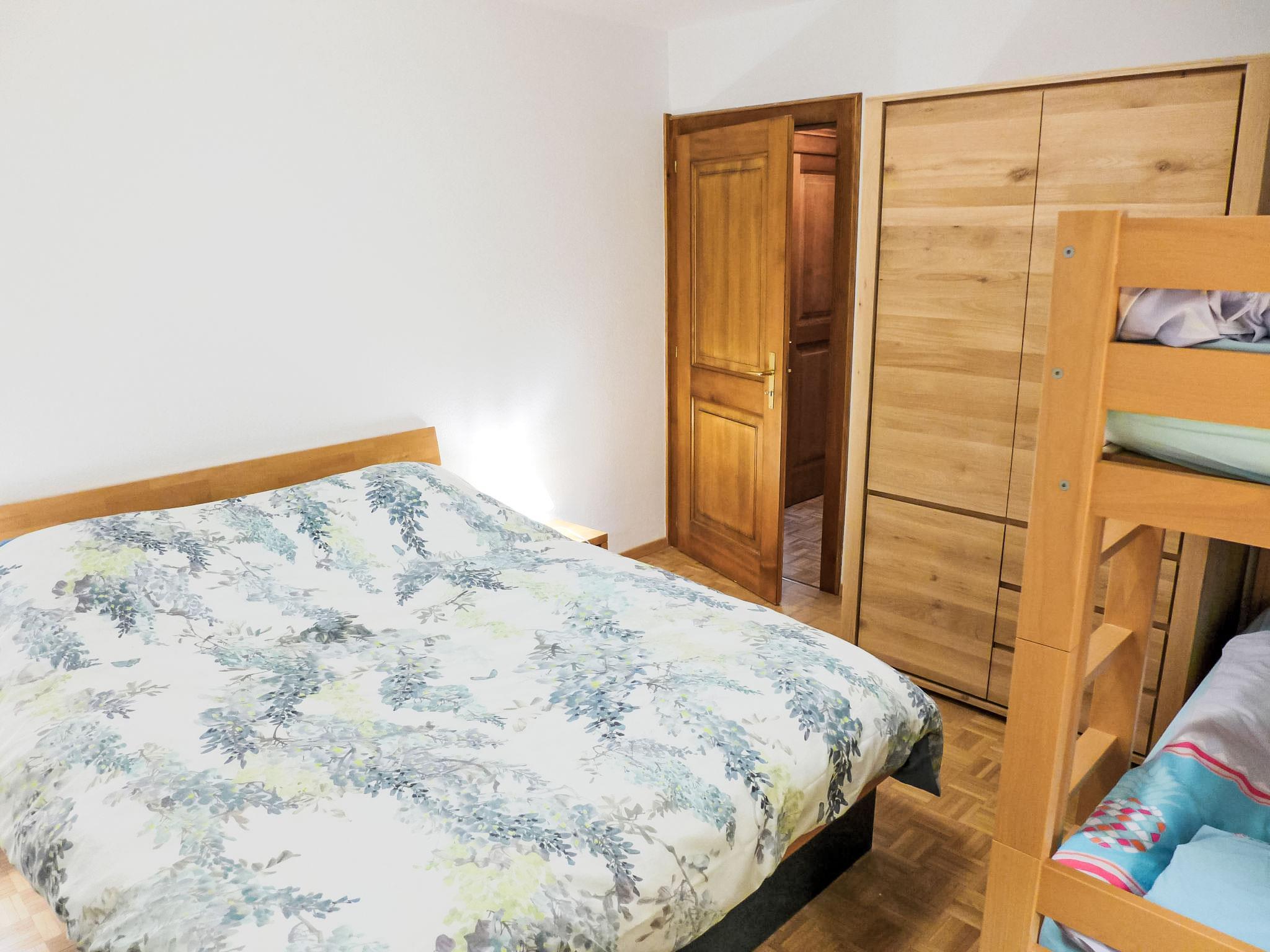 "Grand-Large A 22", 3-room apartment 74 m2 on 4th floor. Object suitable for 4 adults + 2 children. Renovated in 2017, beautiful furnishings: living/dining room with cable TV. Exit to the balcony. 1 room, south facing position with 1 double bed (2 x 90 cm, length 200 cm), shower/WC. Exit to the balcony. 1 room, north facing position with 1 x 2 bunk beds (90 cm, length 200 cm), 1 double bed (2 x 80 cm, length 200 cm). Open kitchen (oven, dishwasher, 3 induction hot plates, toaster, kettle, microwave, electric coffee machine, Capsules for coffee machine (NESPRESSO), raclette grill, fondue Set (cheese)). Bath/WC. Balcony, south facing position. Balcony furniture. Very beautiful view of the mountains. Facilities: iron, children's high chair, hair dryer. Internet (WiFi, free). Garage space n 18 at 15 m, height 175 cm, width 240 cm. Please note: non-smokers only.