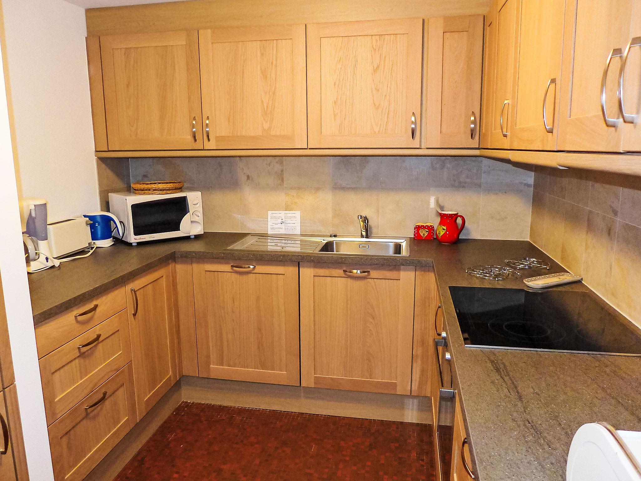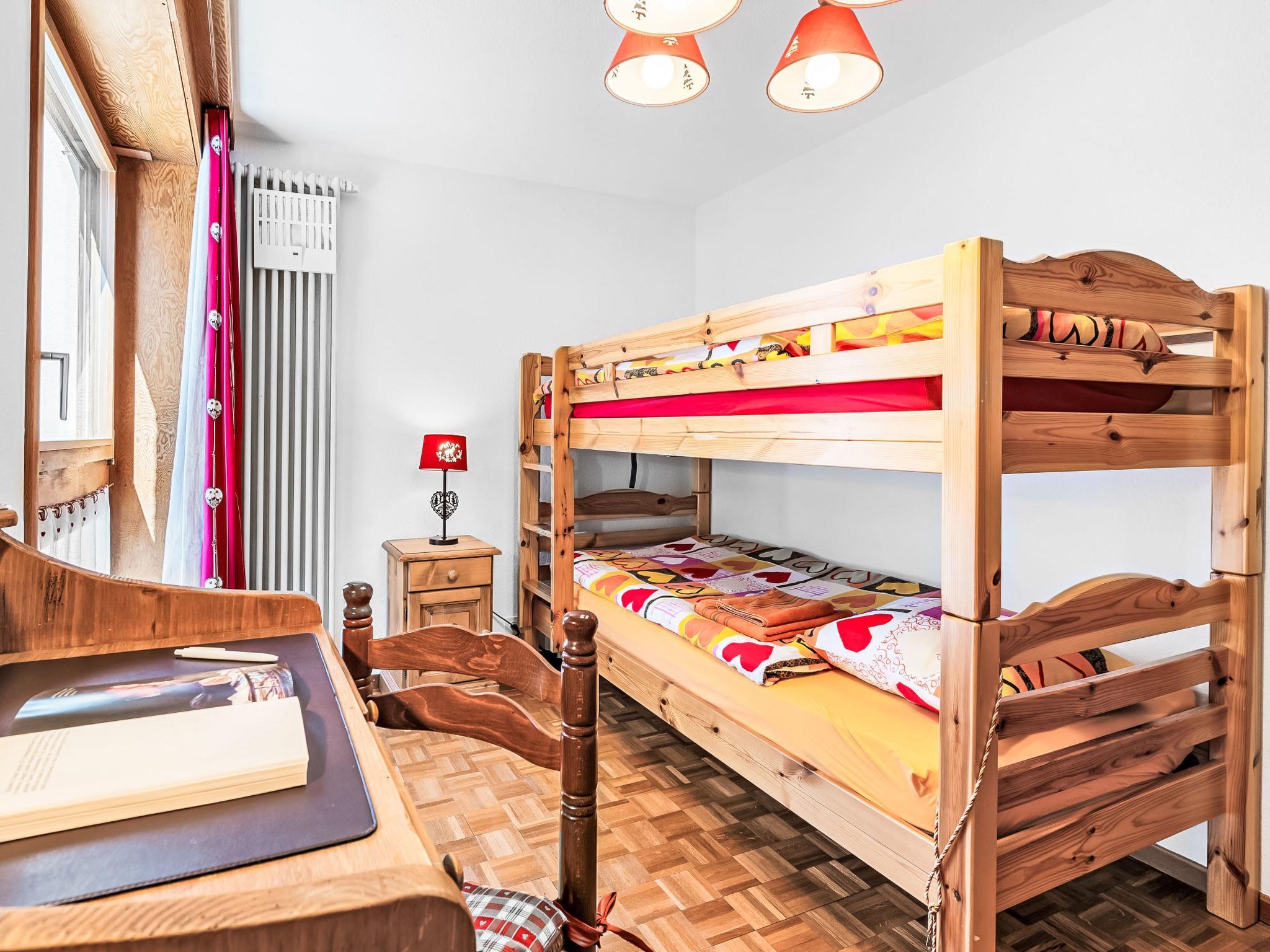 "Mischabels 1", 3-room apartment 110 m2 on 1st floor. Comfortable and beautiful furnishings: living/dining room with open-hearth fireplace and cable TV (flat screen), DVD and electric shutters. 1 room with 1 double bed (2 x 90 cm, length 200 cm). 1 room with 2 x 2 bunk beds (90 cm, length 190 cm). Kitchen (oven, dishwasher, 4 ceramic glass hob hotplates, toaster, kettle, microwave, freezer, electric coffee machine, Capsules for coffee machine (Nespresso), raclette grill, fondue Set (chinoise, cheese)). Bathroom, sep. WC. Balcony, south-west facing position. Deck chairs (1). Beautiful view of the mountains and the valley. Facilities: hair dryer. Internet (WiFi, free). Garage space n 3 at 260 m, height 176 cm, width 252 cm. Please note: non-smokers only. Garage not available for 3 weeks at the end of July/August.