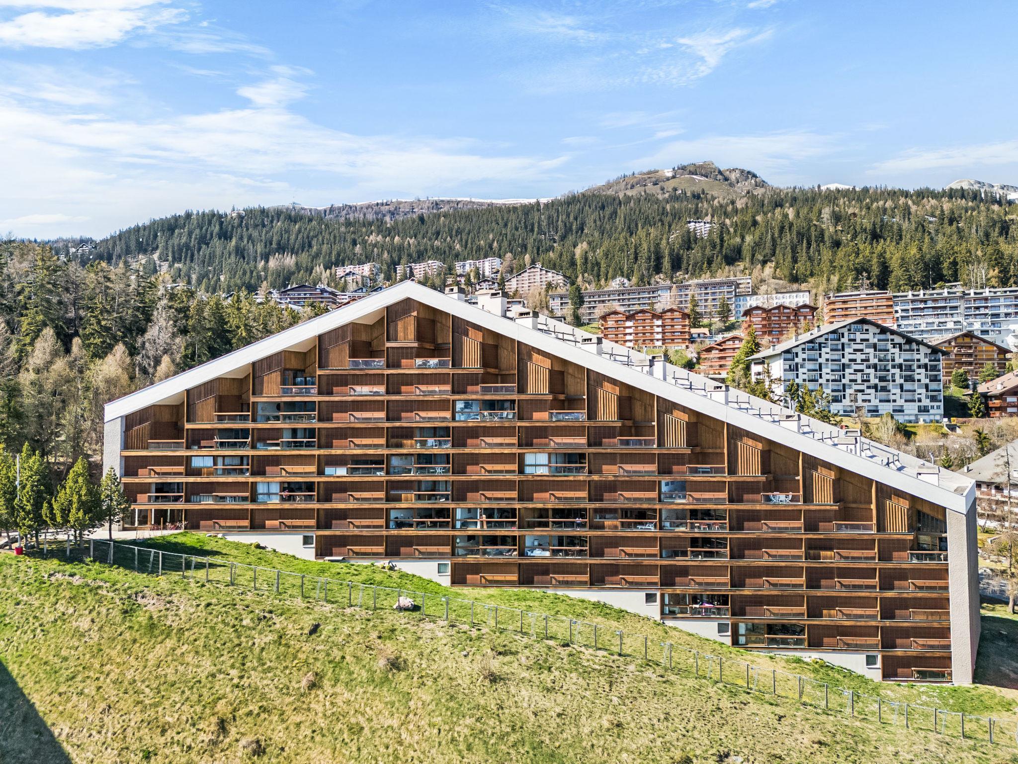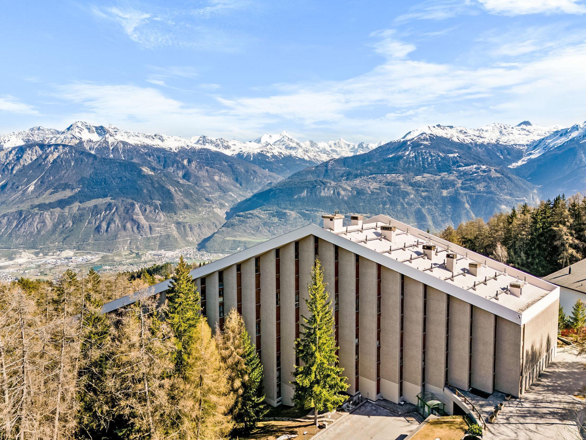 Apartment house "Les Mischabels". Below Montana, 1.8 km from the centre, in a quiet, sunny position, 100 m from the edge of the forest, 900 m from the lake, south-west facing position. In the house: lift, storage room for skis, central heating system. Parking (limited number of spaces) at the house. Shop 1.8 km, supermarket 2 km, restaurant 1.8 km, bakery 2 km, bus stop "Crans-Montana, Montagnette" 50 m, railway station "Funiculaire Montana Gare" 950 m, grass beach "Moubra" 900 m, bathing lake "Moubra" 900 m. Golf course (18 hole) 3 km, tennis 1 km, indoor tennis centre 1 km, riding stable 240 m, skisport facilities 1.6 km, cross country ski track 900 m. Well-known lakes can easily be reached: Etang Long 2.5 km, Lac Grenon 2.3 km. Please note: ski bus (free of charge). Additional accommodations can be booked. The building was built on a sloping lot. Floors are handled as levels counted from the residence floor.