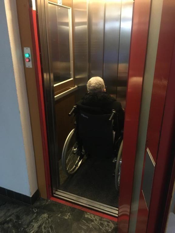 - The 70 cm wide lift is wheelchair accessible (see photo).