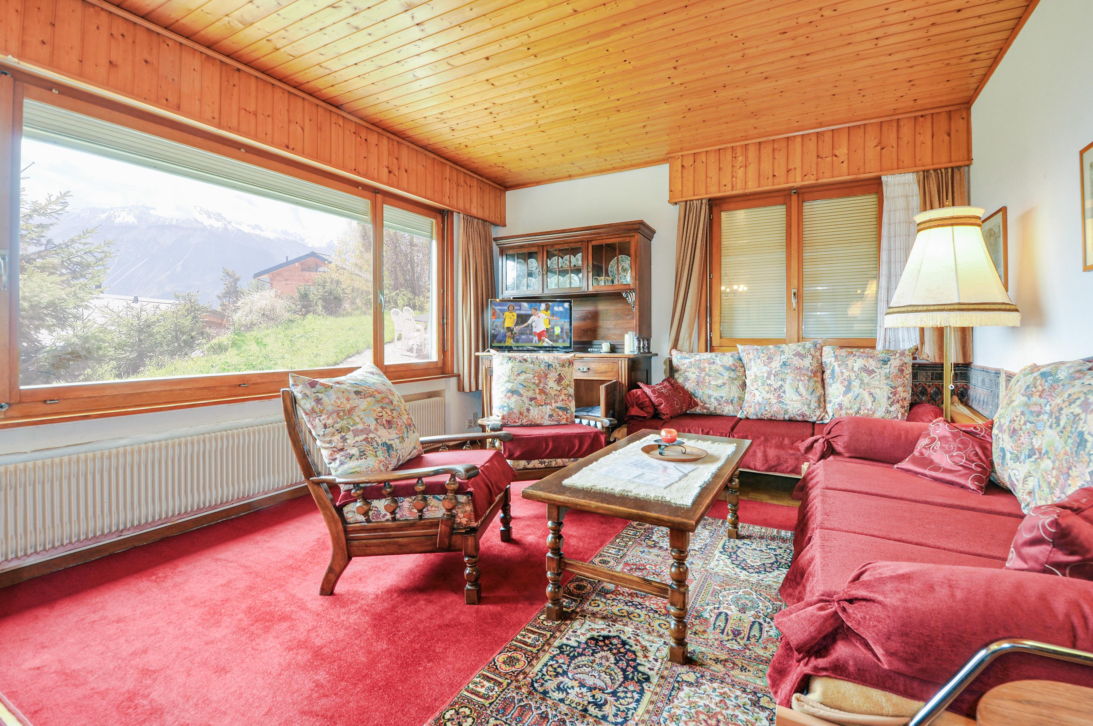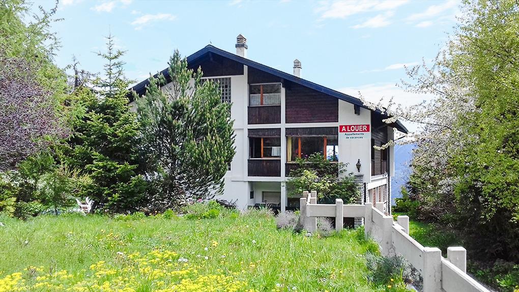 Ort: Crans-Montana. Ruhige Lage mit herrlichem Blick auf die imposanten Viertausender des Wallis. Schöne Wanderwege, zum Beispiel entlang der Suonen, verlaufen in unmittelbarer Nähe des Hauses (ca. 100 m). Gondel mit Sommerbetrieb nur 150 m. Bahnhof Standseilbahn Crans-Montana 1 km. Ortsmitte Montana ca. 2 km. Bus nach Crans, Sierre nur 100 m.