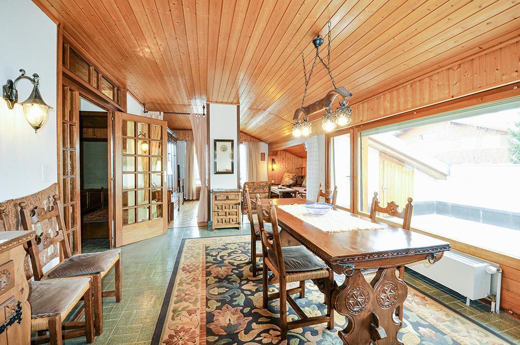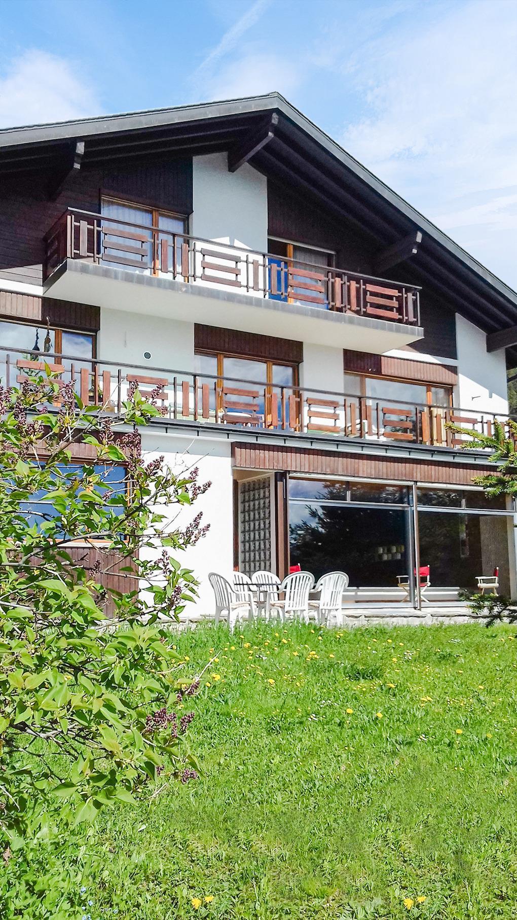 Haus: Großes regionaltypisches Chalet mit Schwimmbad und Sauna. Schönes Wohnhaus mit 2 Ferienwohnungen und der fest bewohnten Wohnung des Vermieters. Gemütliche Chalet-Atmosphäre durch Holzvertäfelungen in vielen Räumen. Im Haus: großes Schwimmbad (10 x 4,50 Meter, 28°C, kostenfrei nutzbar) mit Ruheliegen vor großen Panoramafenstern, Sauna (Gebühr), Duschen, WC. Internetzugang über W-Lan. Waschmaschine. Zentralheizung. Nichtraucherhaus. Balkon oder Terrasse (Sitzmöbel). Tiefgarage mit 2 Pkw-Stellplätzen pro Fewo (max. 1,95 m Höhe), weitere Außenplätze je nach Verfügbarkeit. Hinweis: Betriebszeiten Schwimmbad nur von Weihnachten bis Ostern. Gemeinschaftsnutzung mit zwei weiteren Fewos im Nachbarchalet.