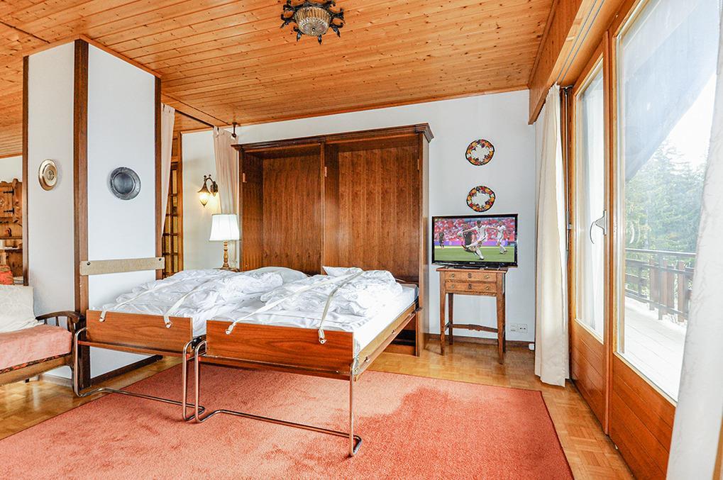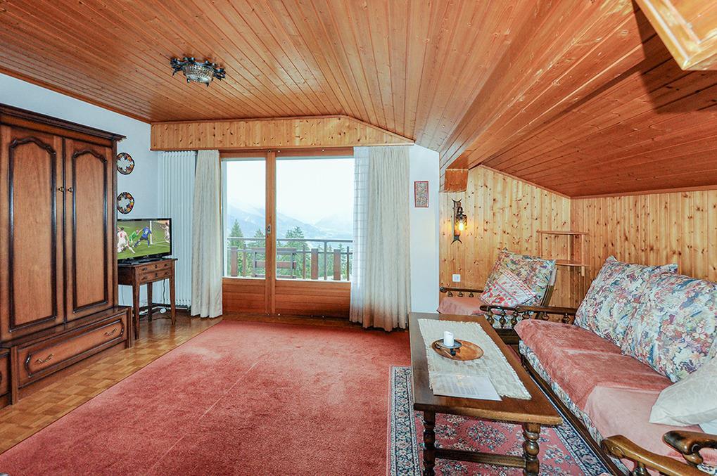Ch 361.19 Wohnung 1-7 Pers.: 3-Zimmerwohnung mit 95 qm Wohnfläche, 2. Etage (leichte Dachschrägen). Flur mit Garderobe. Gemütlicher Wohnraum (40 qm) mit Wohn-/Schlafbereich (Sofa-Sitzgruppe, Kabel-TV, 2 komfortablen Schrankbetten, Balkon, herrlichem Blick ins Rhônetal). Freundlicher Essbereich mit Esstisch, Dachterrasse (Sitzmöbel). Küche mit Backofen, Mikrowelle, Spülmaschine. Doppelzimmer mit Balkon. 3-Bettzimmer mit 2 Einzelbetten, kleinem Zustellbett für Kinder (75 x 170 cm). Bad: Bw/Du, Wb, WC, Bidet. Separates WC. Hinweis: Wir empfehlen eine Belegung mit 4-6 Personen. Aufgrund der Bettengrößen ist eine Belegung mit maximal 6 Erwachsenen möglich.